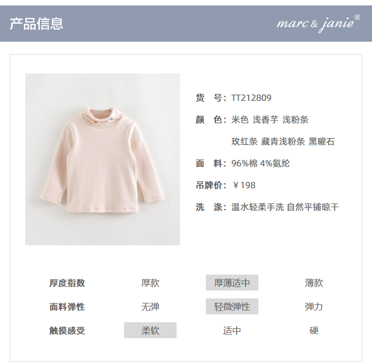 马克珍妮新款宝宝秋冬装 女童半高领打底衫 儿童t恤212809