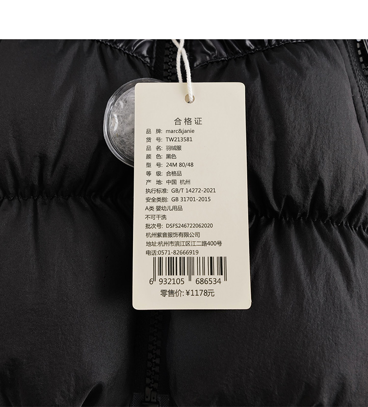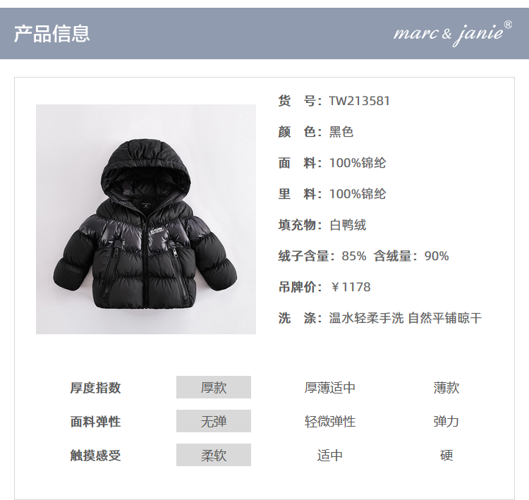 马克珍妮冬装新款 男童字母印花加厚保暖羽绒服213581