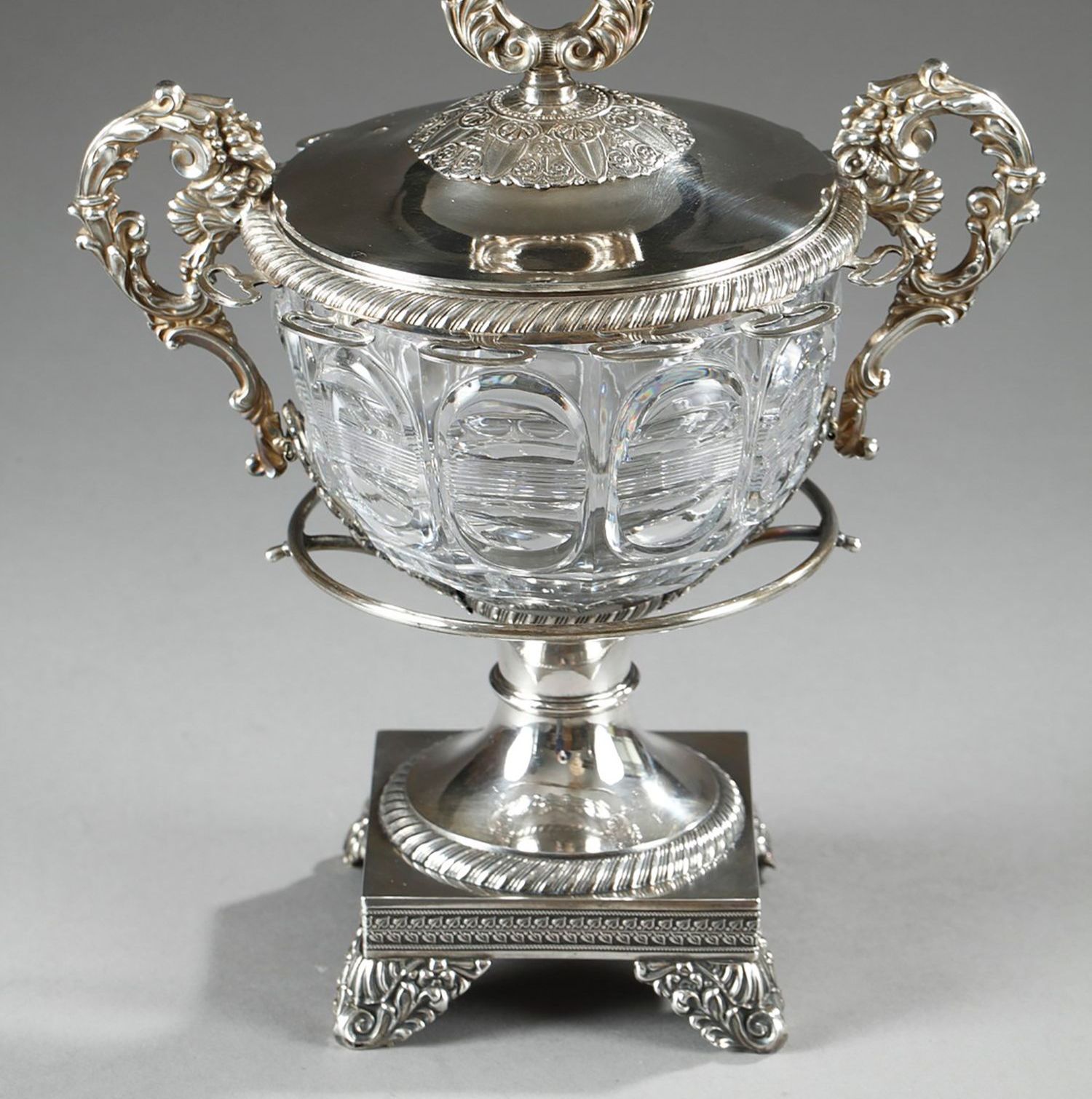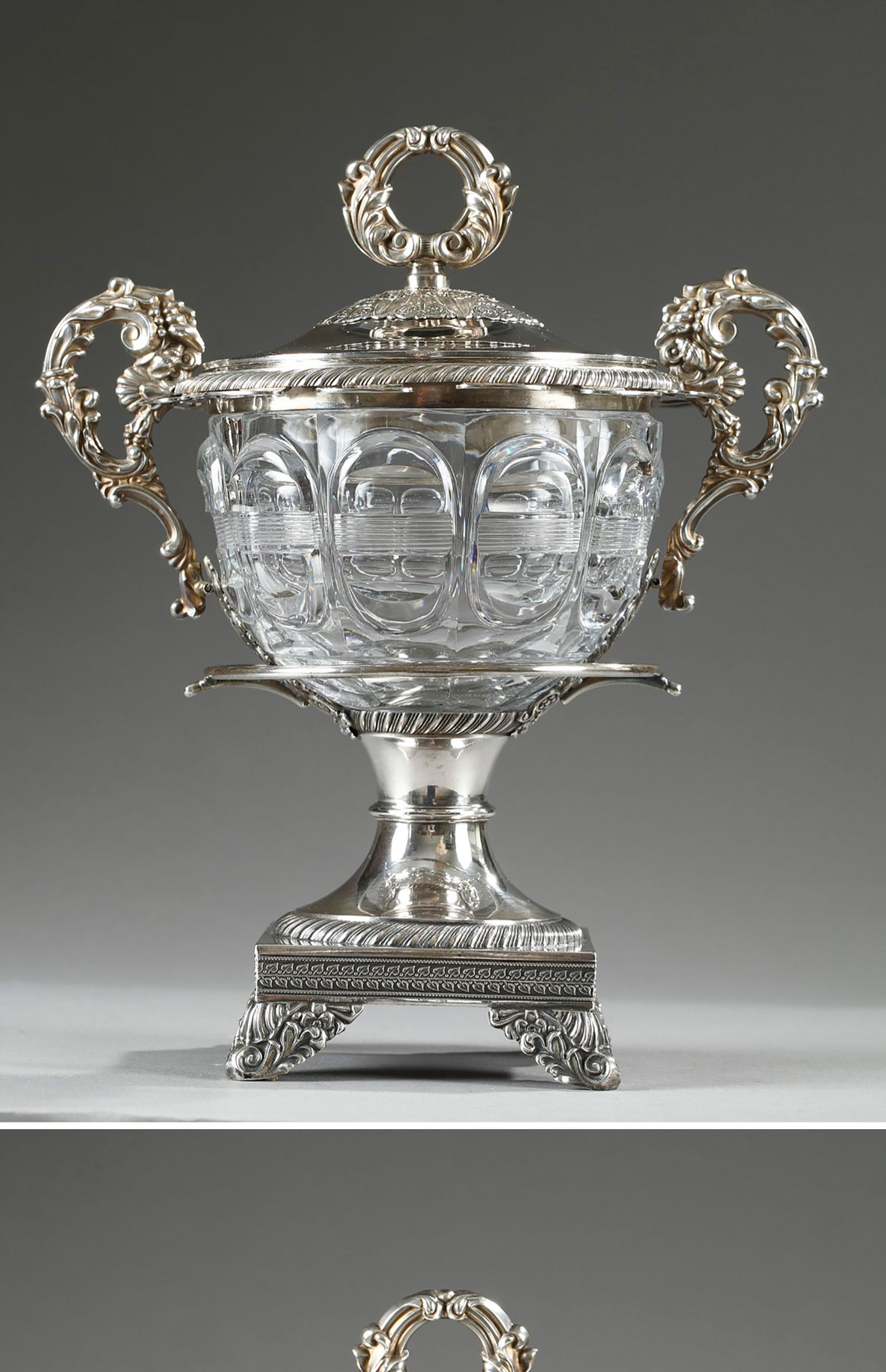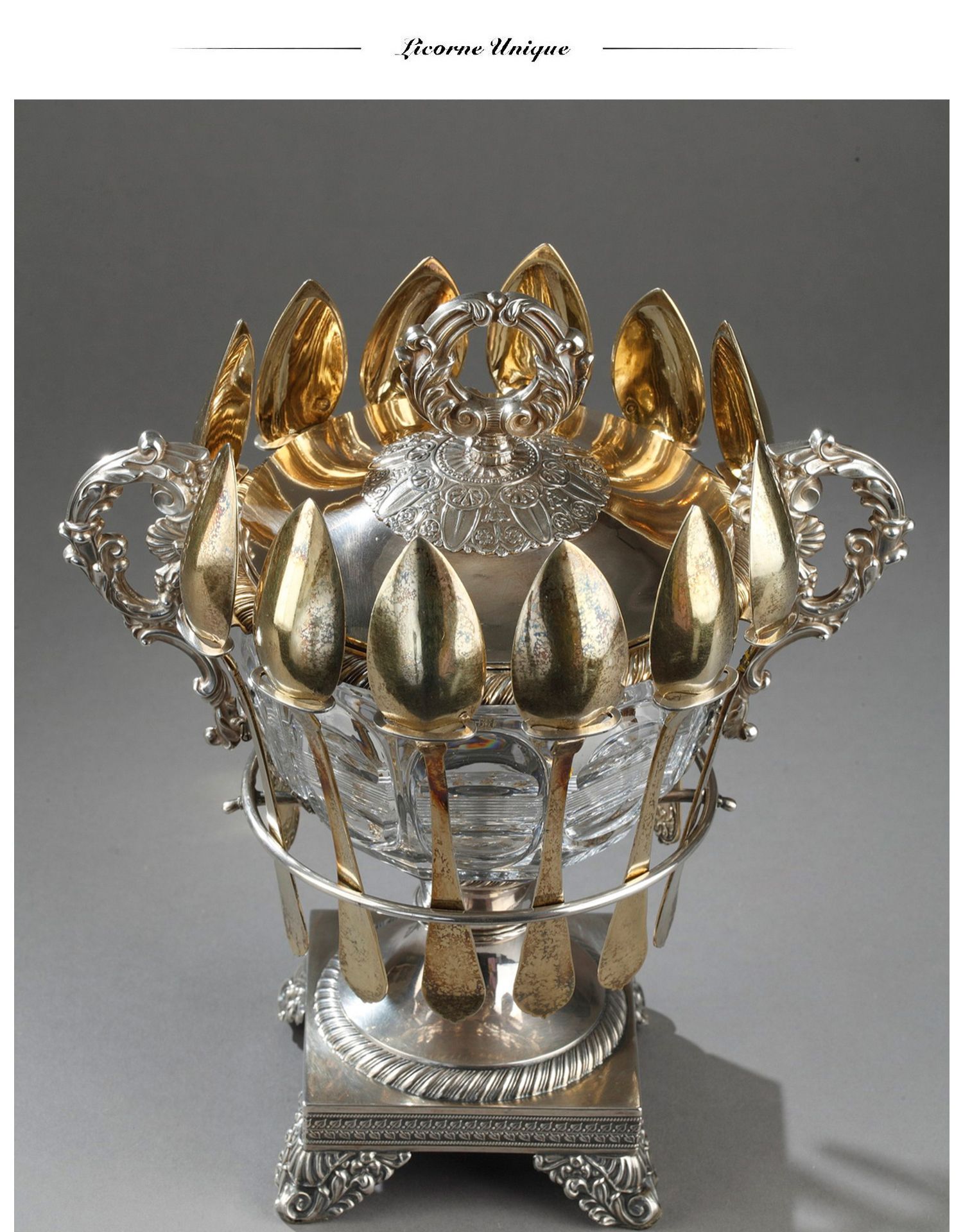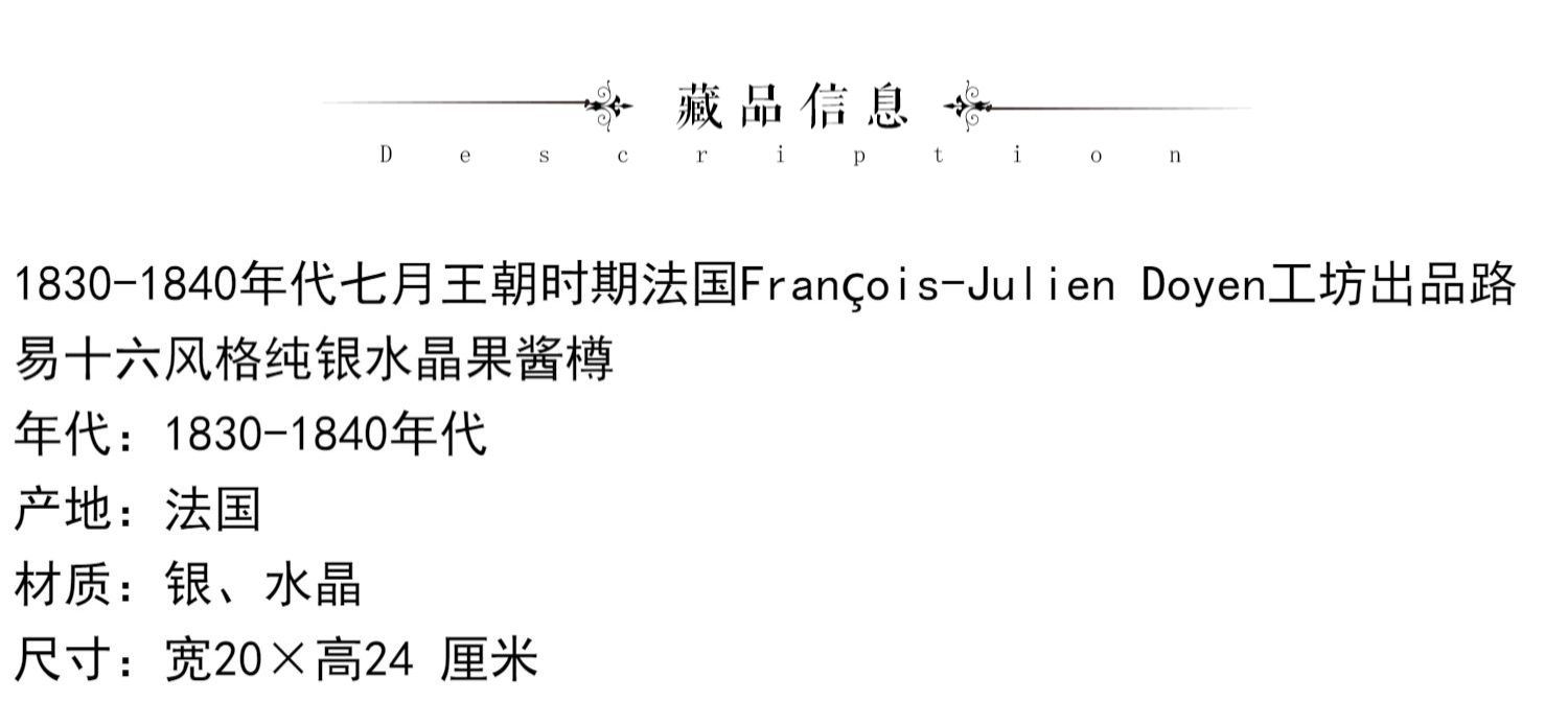 独角鹿西洋古董François-Julien Doyen路易十六风纯银水晶果酱樽