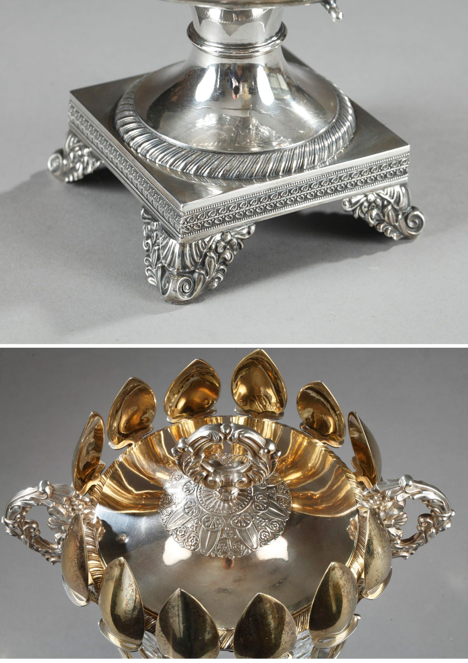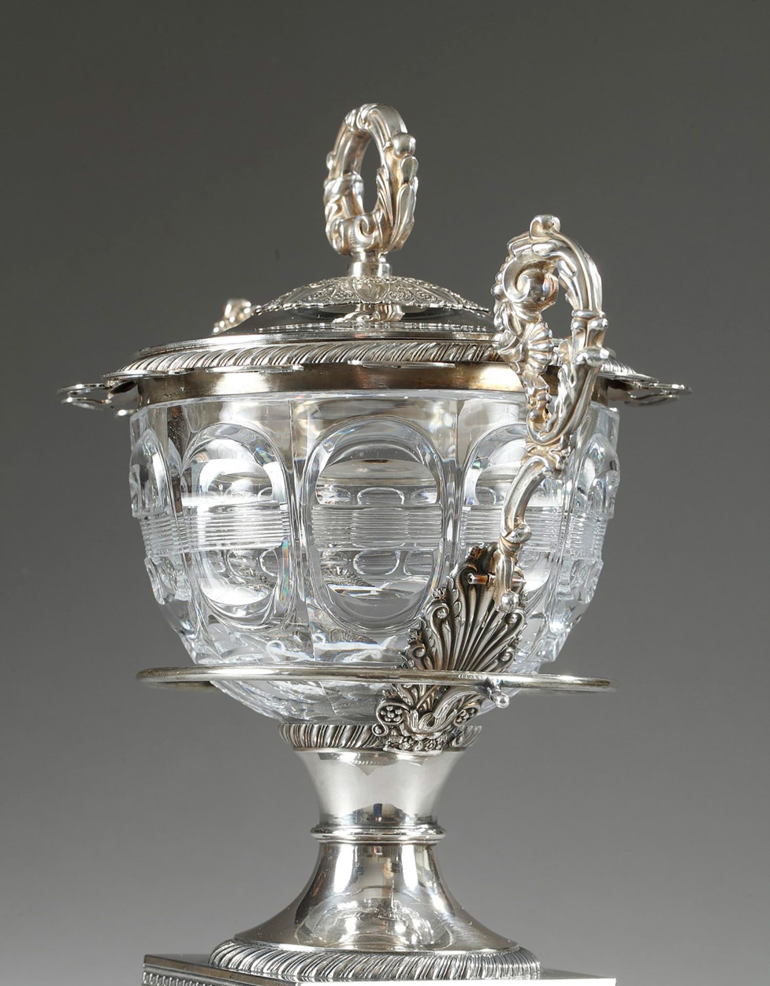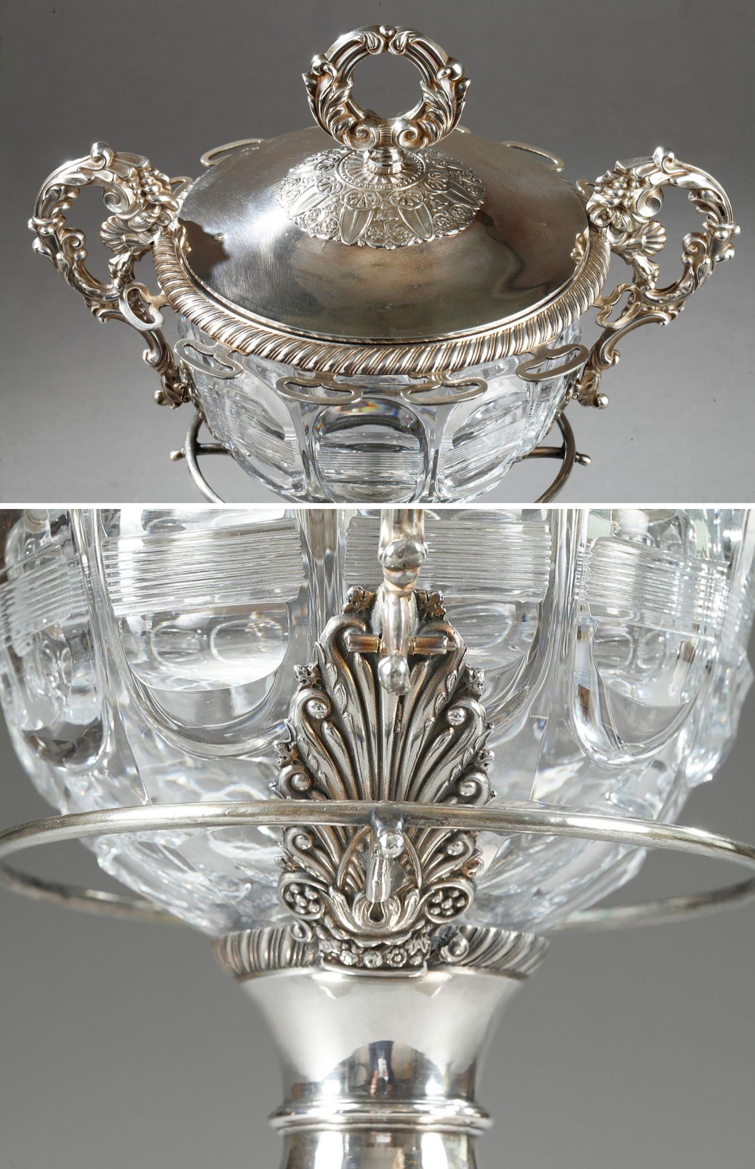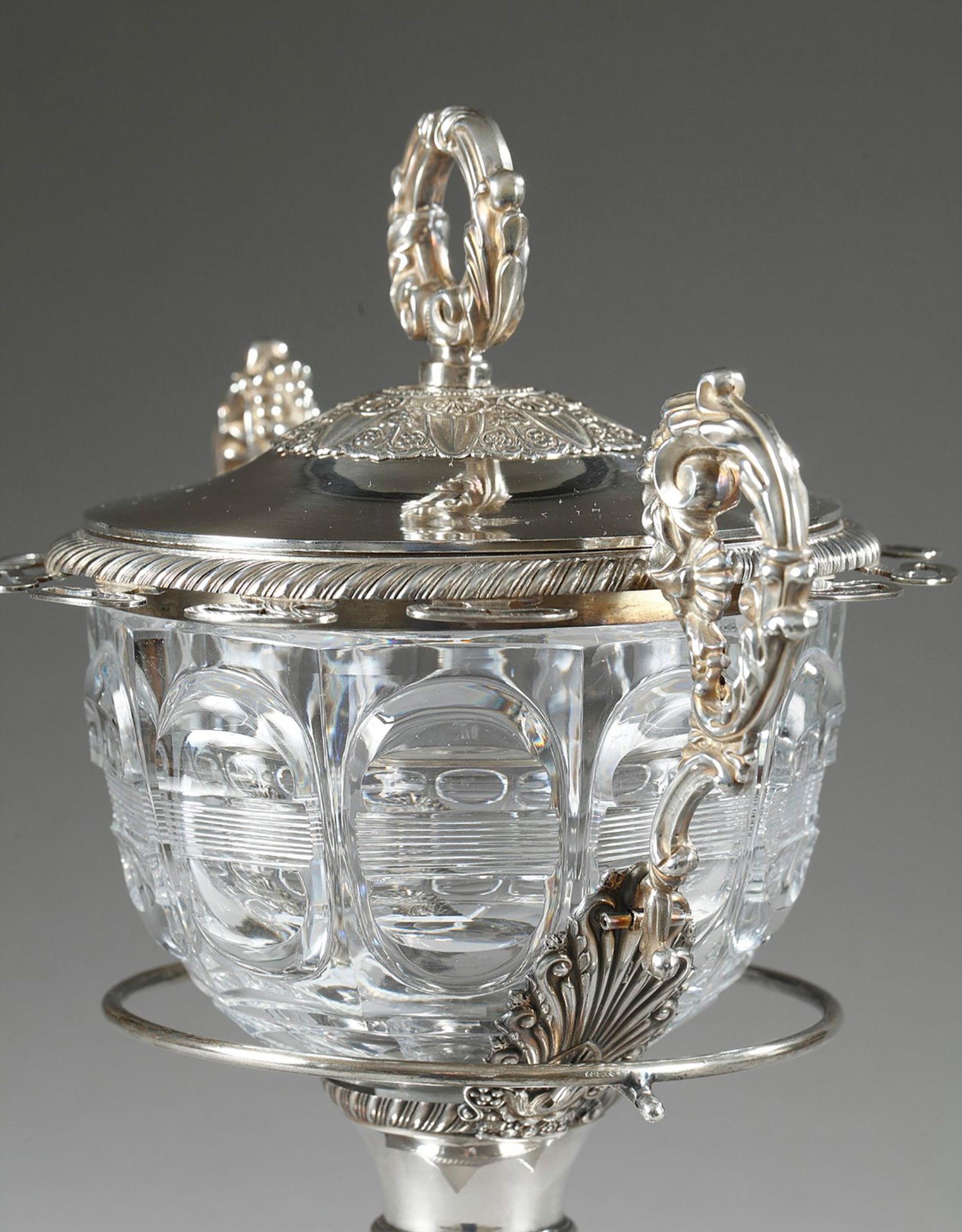 独角鹿西洋古董François-Julien Doyen路易十六风纯银水晶果酱樽