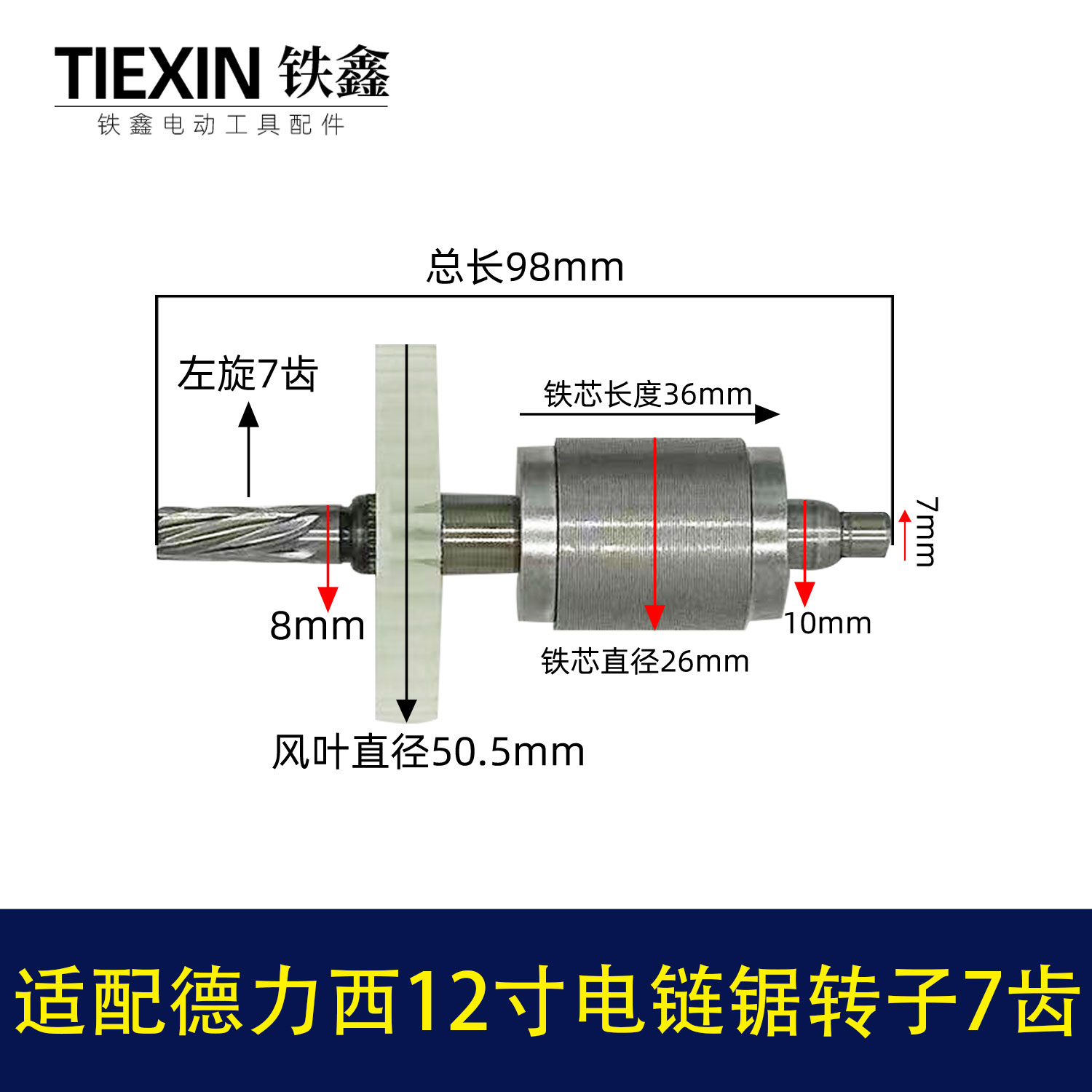 【货号04259】适配德力西12寸电链锯转子7齿无刷锂电电链锯电机