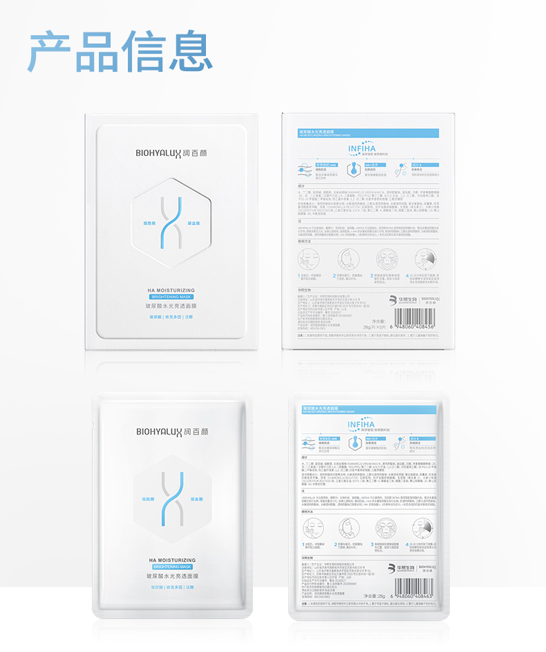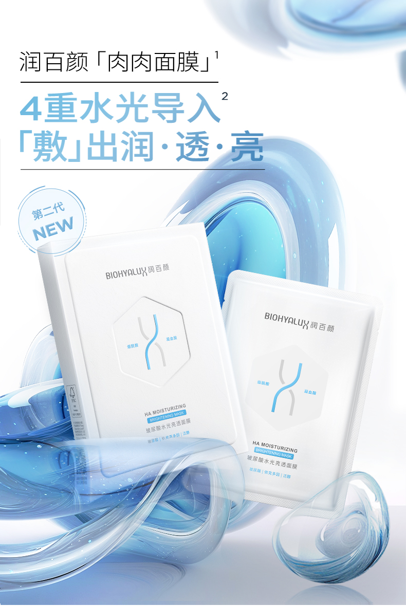 【员工专属】润百颜玻尿酸水光亮透面膜[28.00g/片,5.00片/盒 ] 补水保湿舒缓呵护肌肤 肉肉面膜2.0