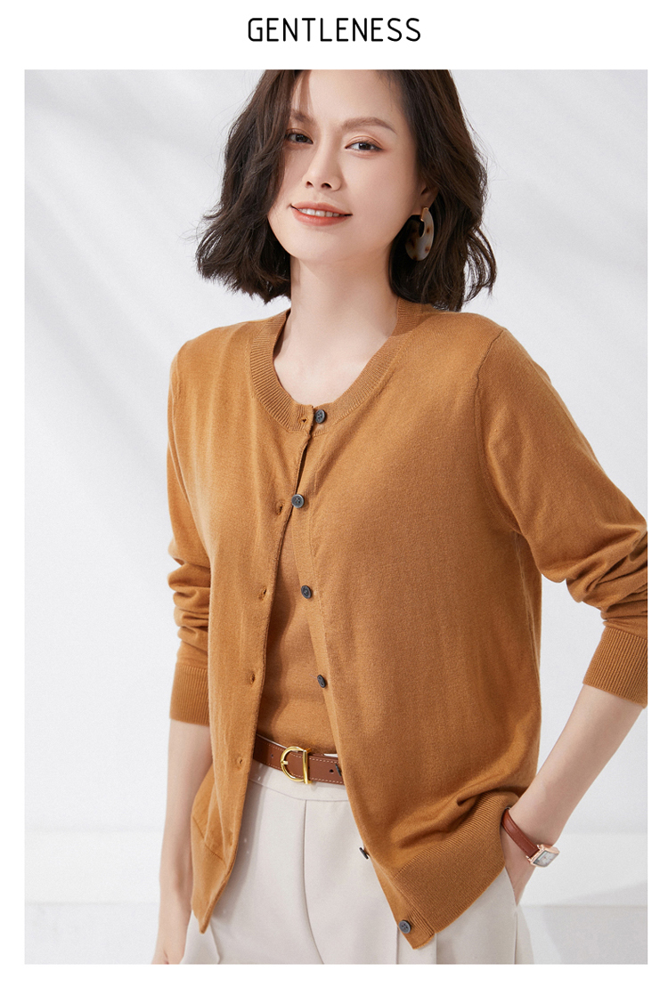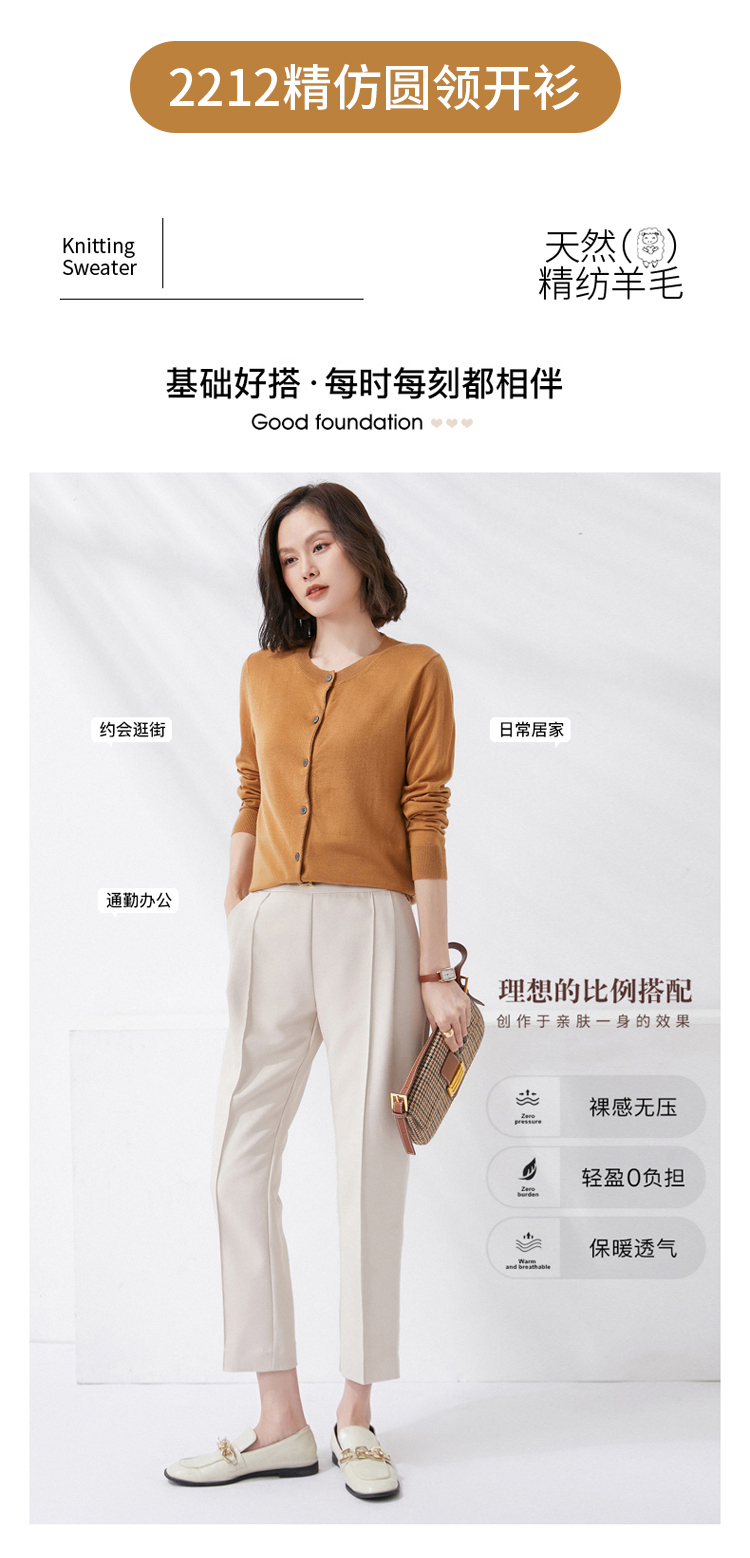 Avann阿曼衣无缝金丝平面圆领100%羊绒衫MY007-