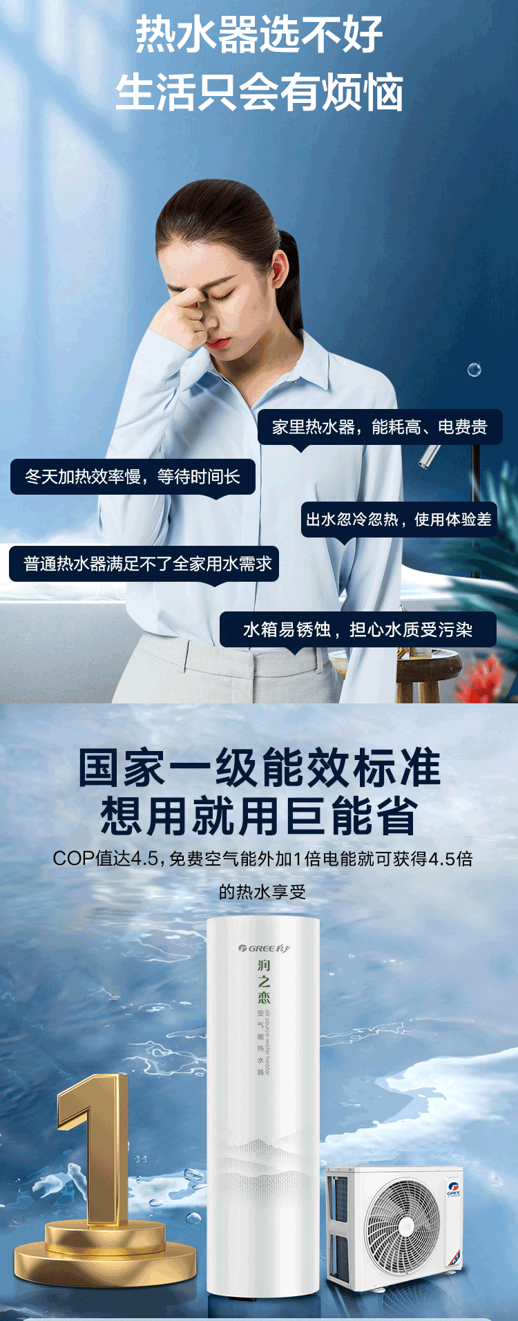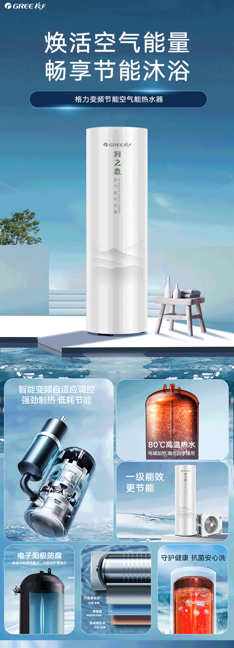 格力空气能热水器 家用 300升 润之恋SXTD300LCJW/N-1(润之恋)顶(配KFRS-5.0JPdRe/NaB-1)