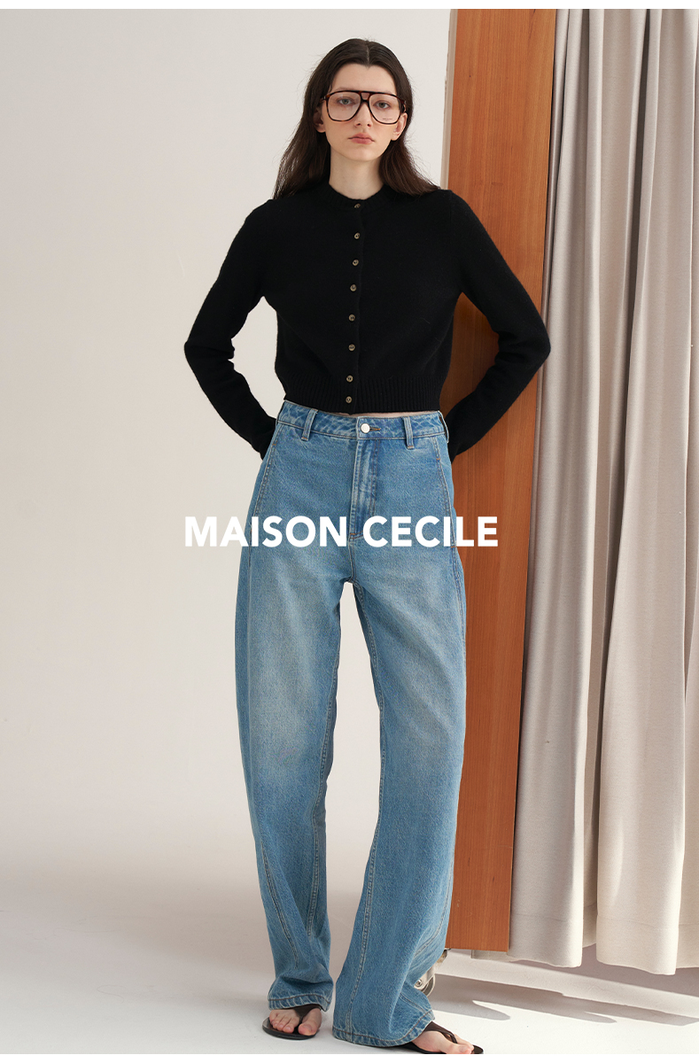 MAISON CECILE 全棉肌理感白色极简通勤分割立体松弛牛仔阔腿裤
