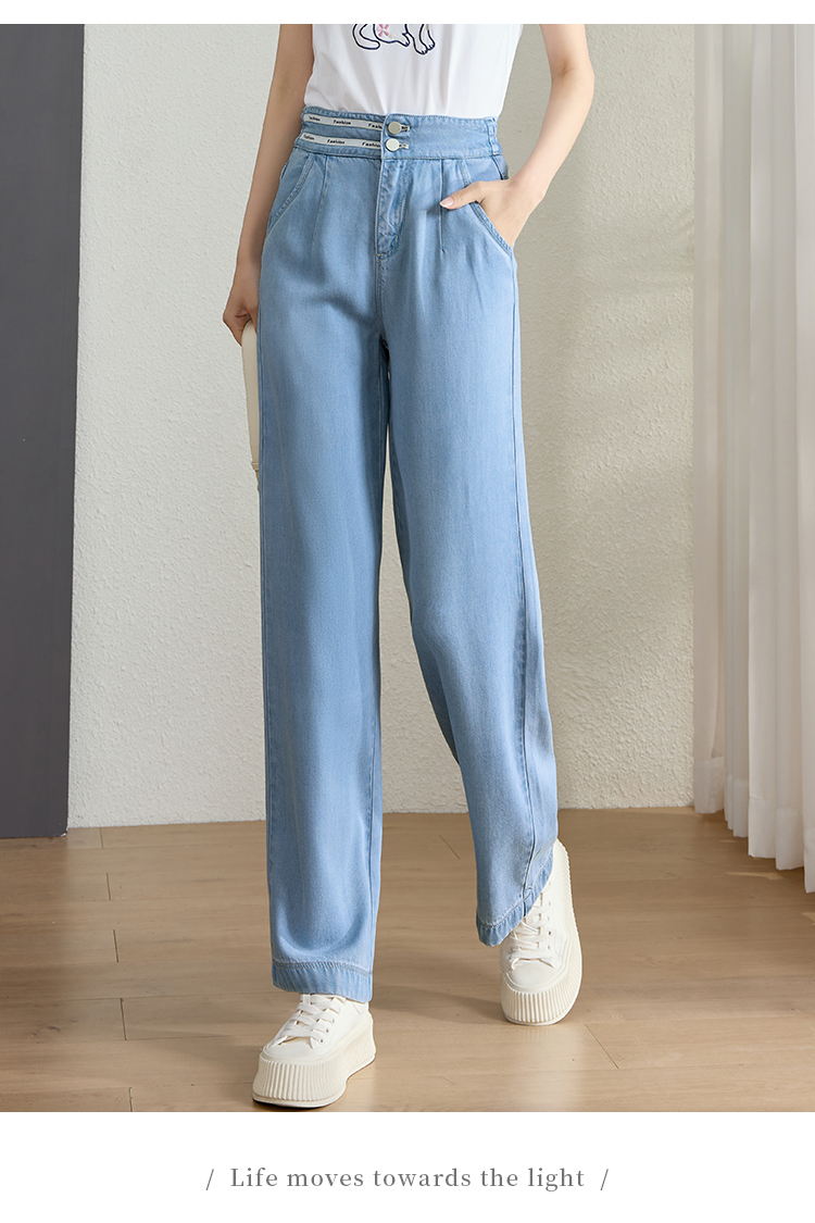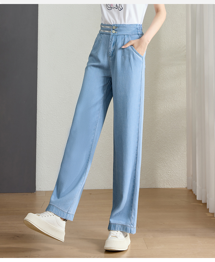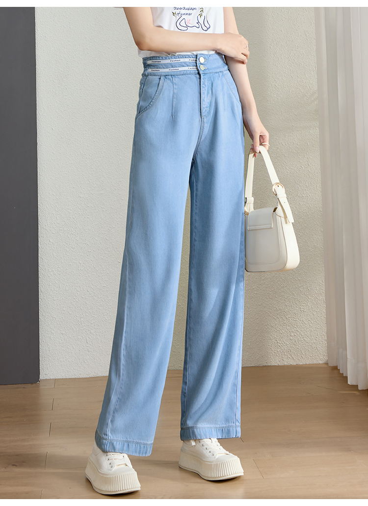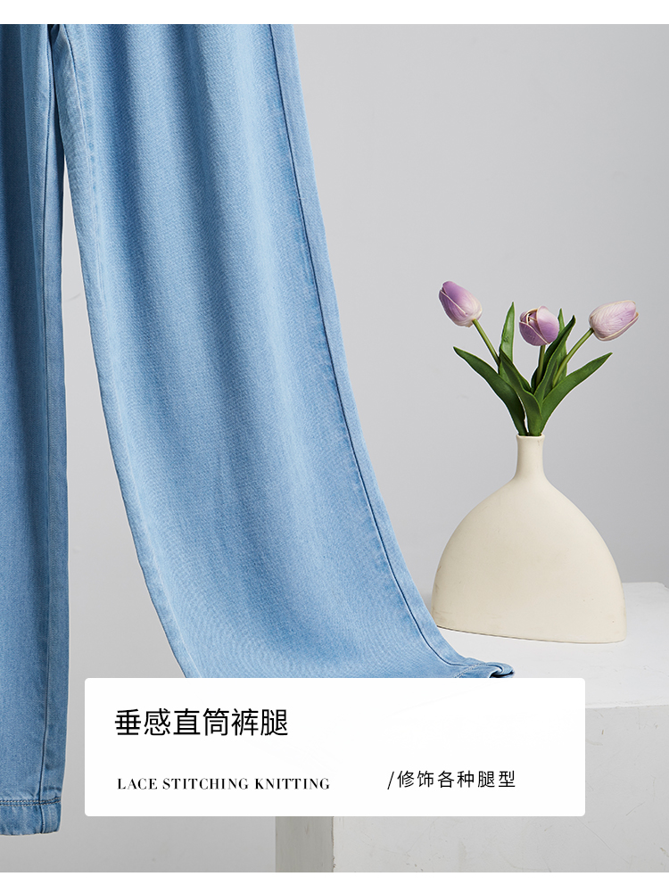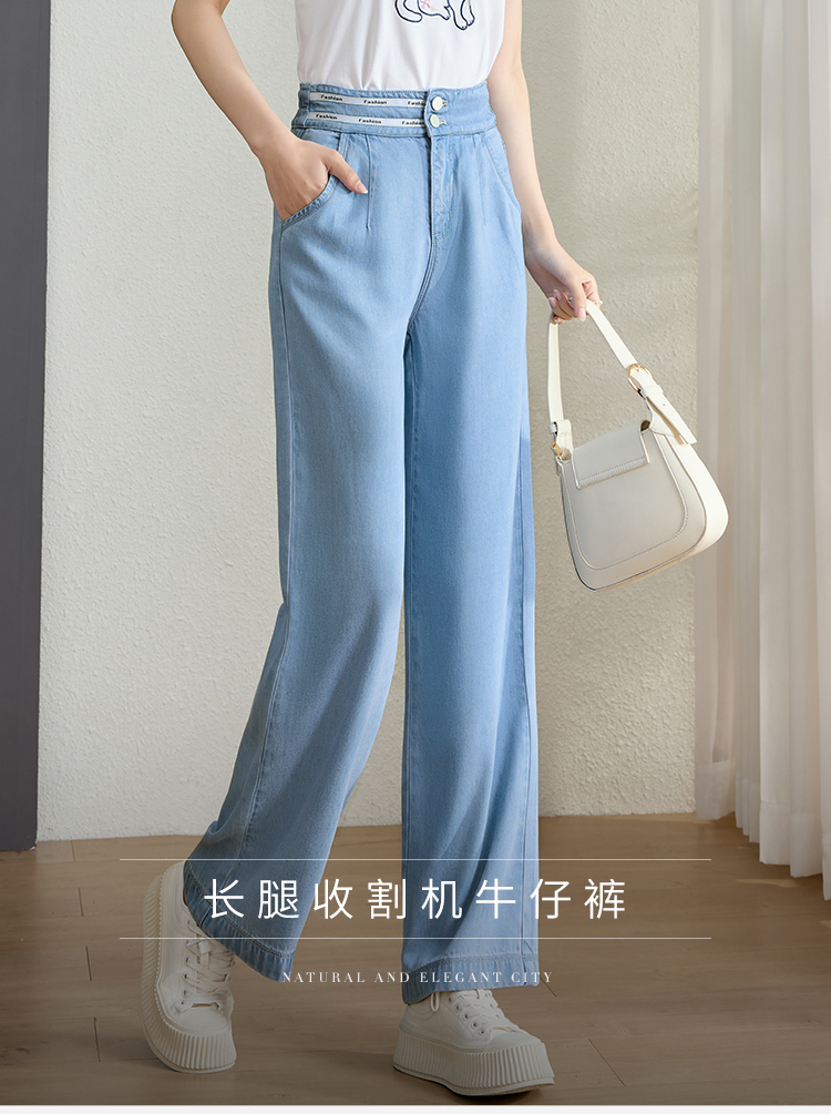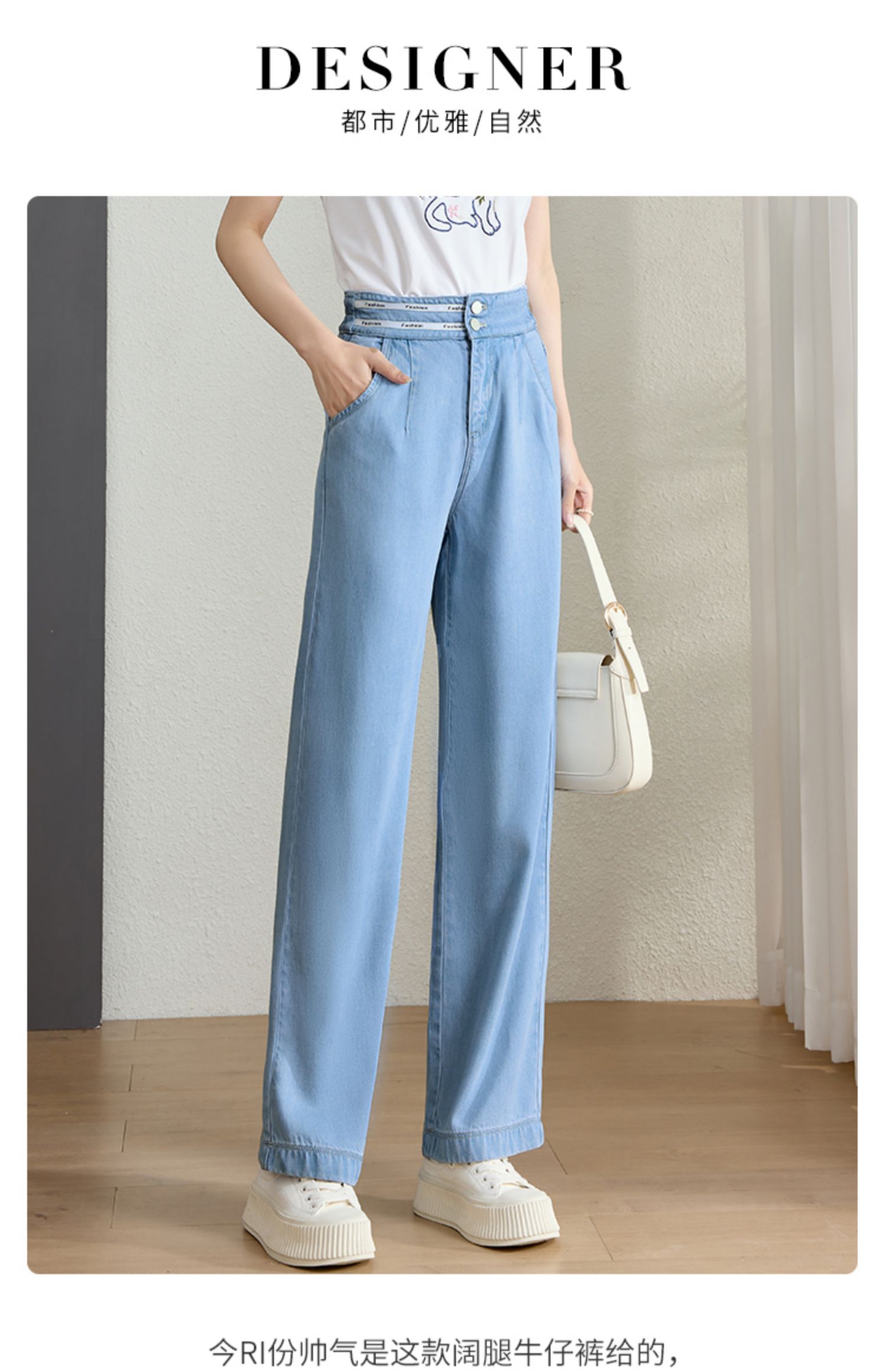 【专属特价】熙世界100天丝牛仔裤女薄2025夏季新款高腰垂感冰丝直筒阔腿裤子
