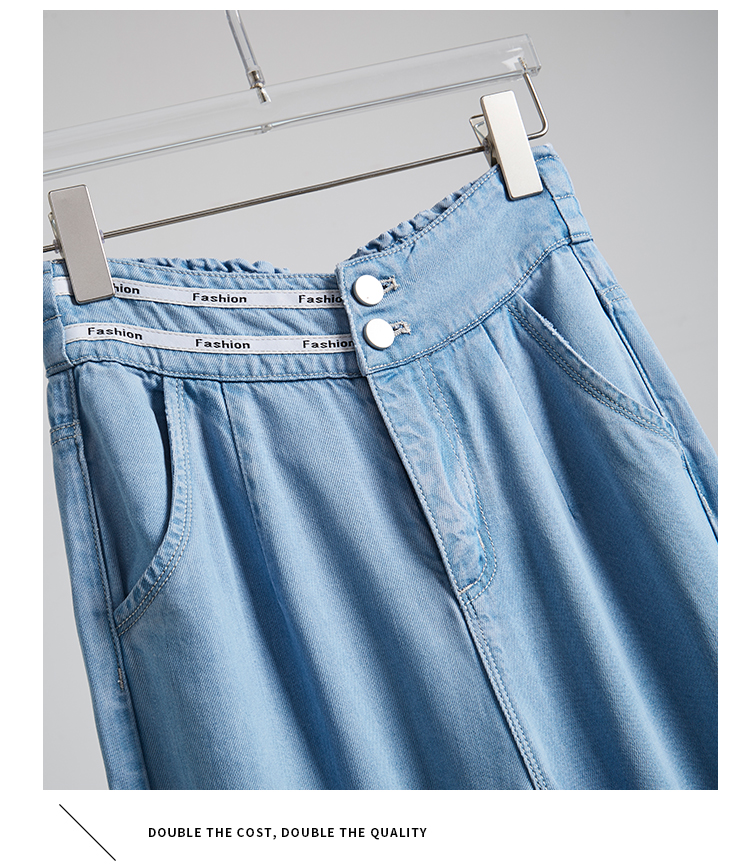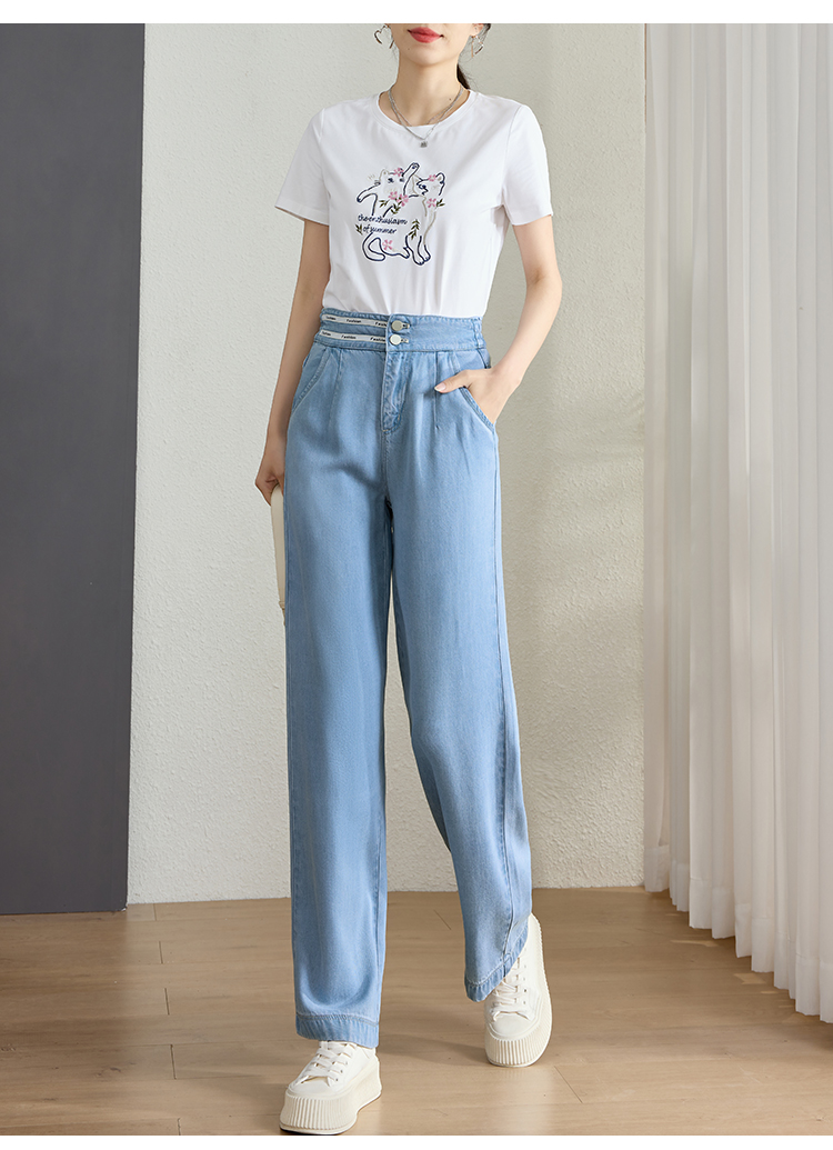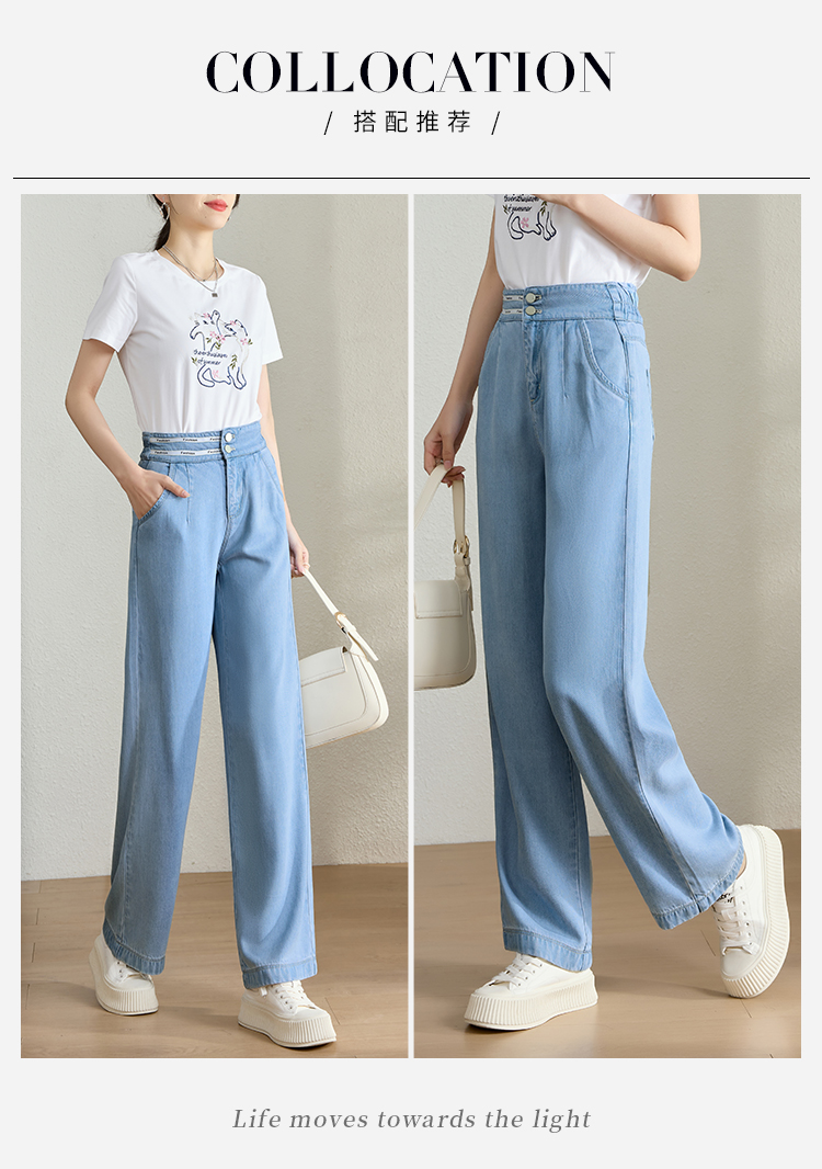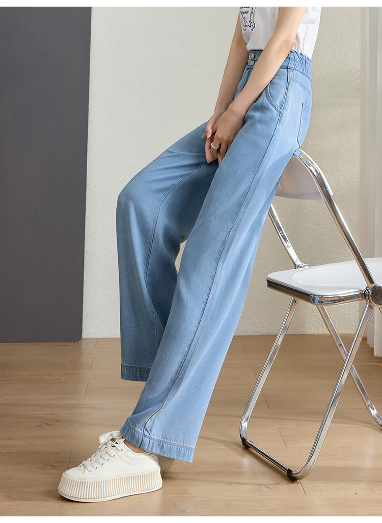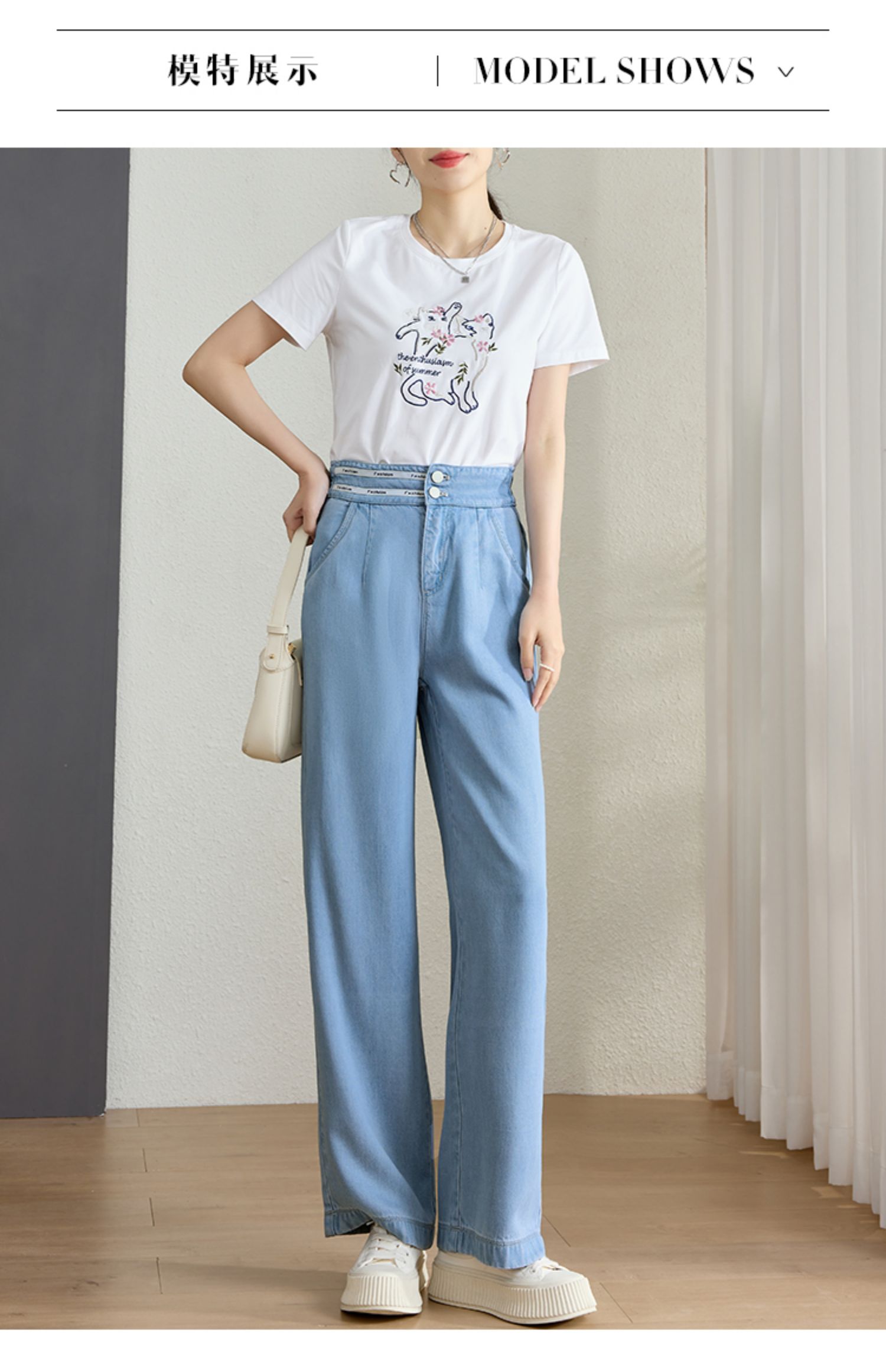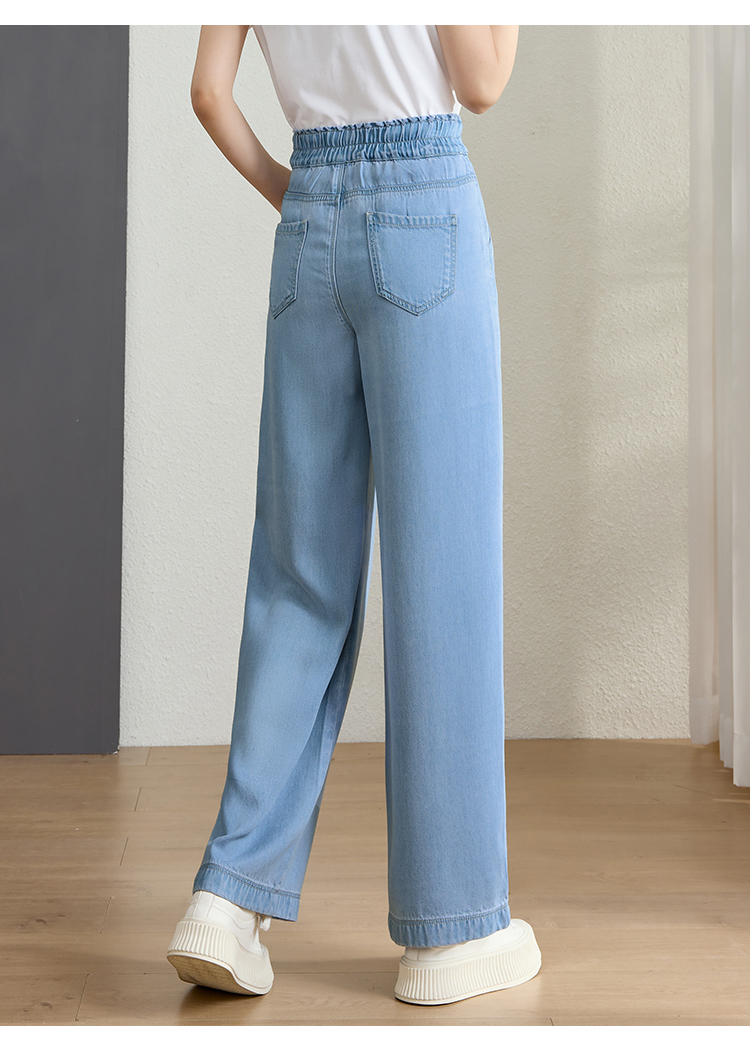 【专属特价】熙世界100天丝牛仔裤女薄2025夏季新款高腰垂感冰丝直筒阔腿裤子