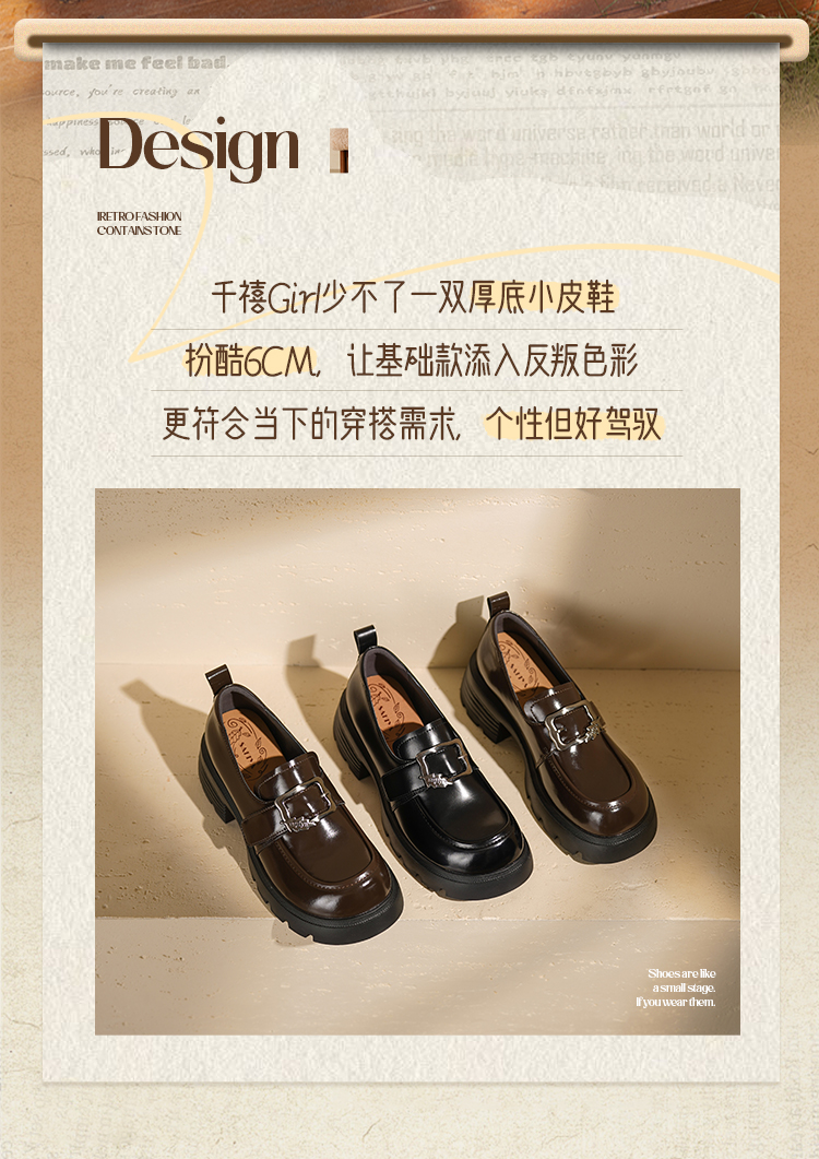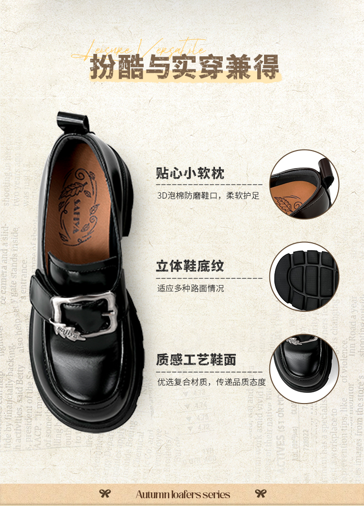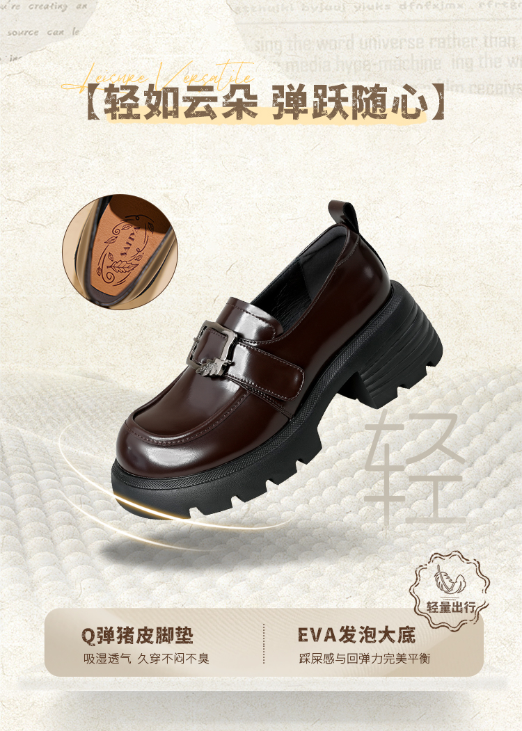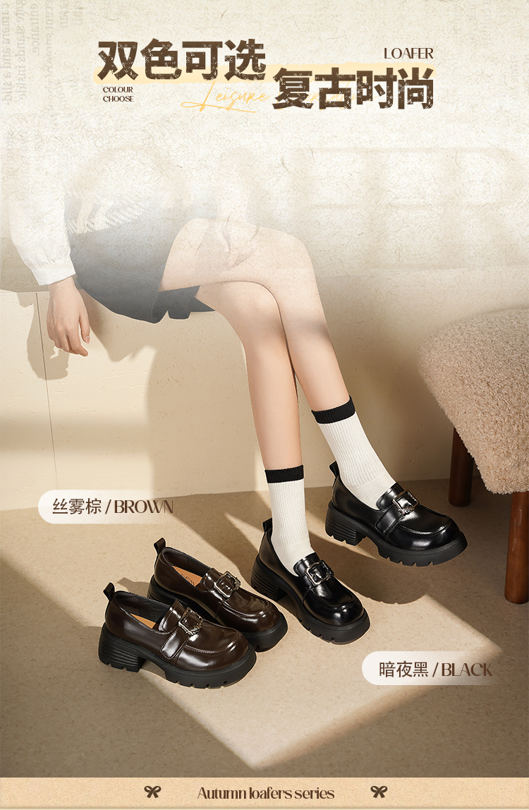 Safiya/索菲娅2025小个子增高不累脚英伦金属扣百搭厚底乐福鞋SFD3112180