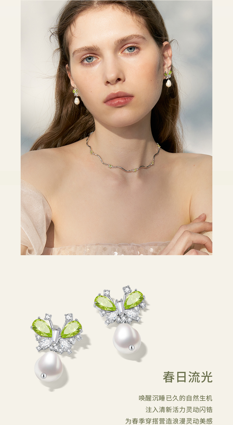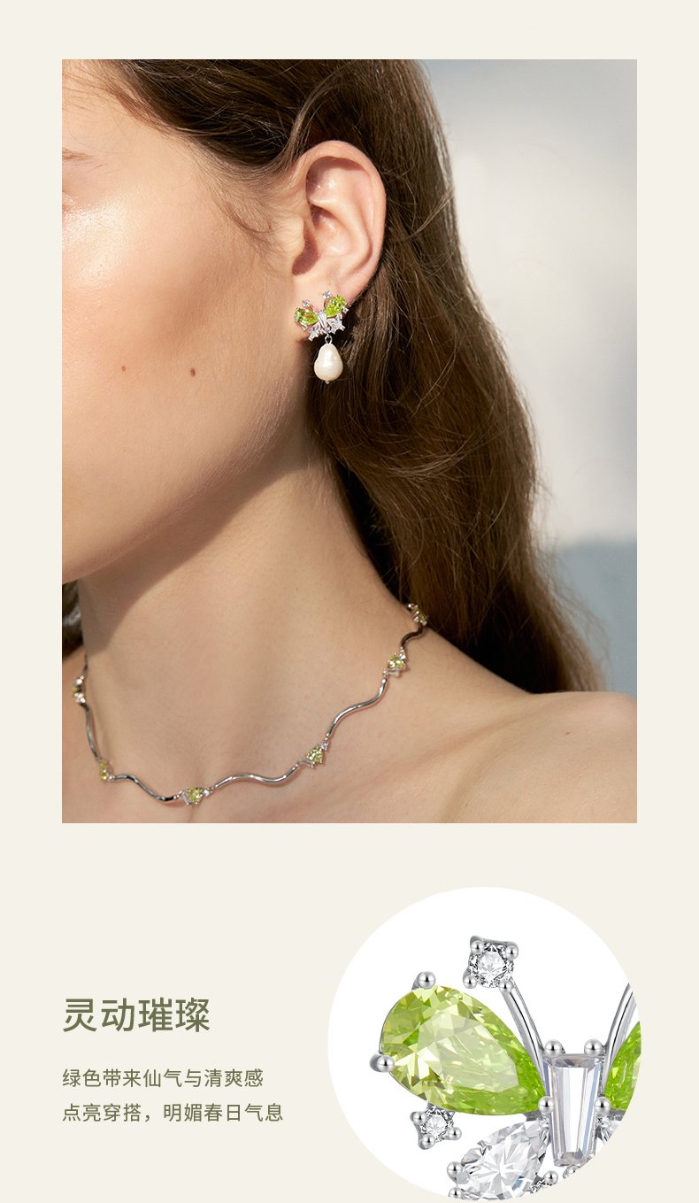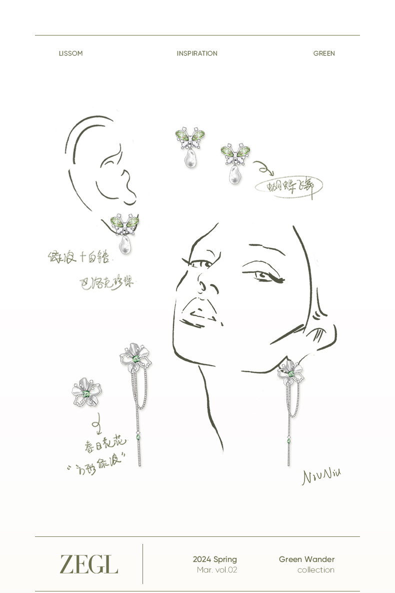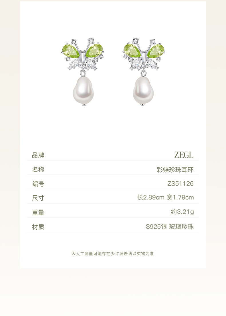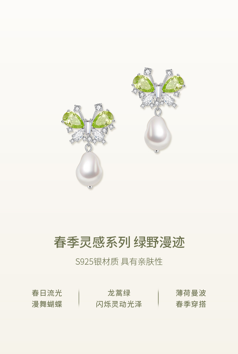 ZEGL设计师绿野漫迹系列925银人造珍珠耳环2024款耳钉蝴蝶耳饰女