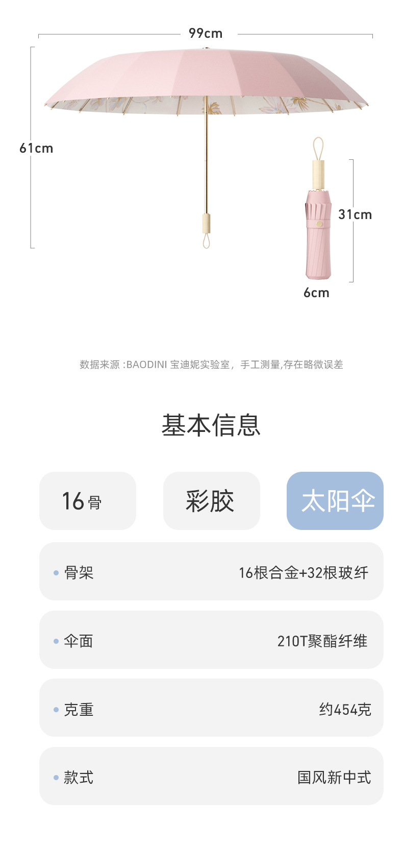 「国风高颜值!几十款可选」32骨折叠晴雨伞女晴雨两用防晒防紫外线居家日用太阳伞加大加固加厚遮阳伞
