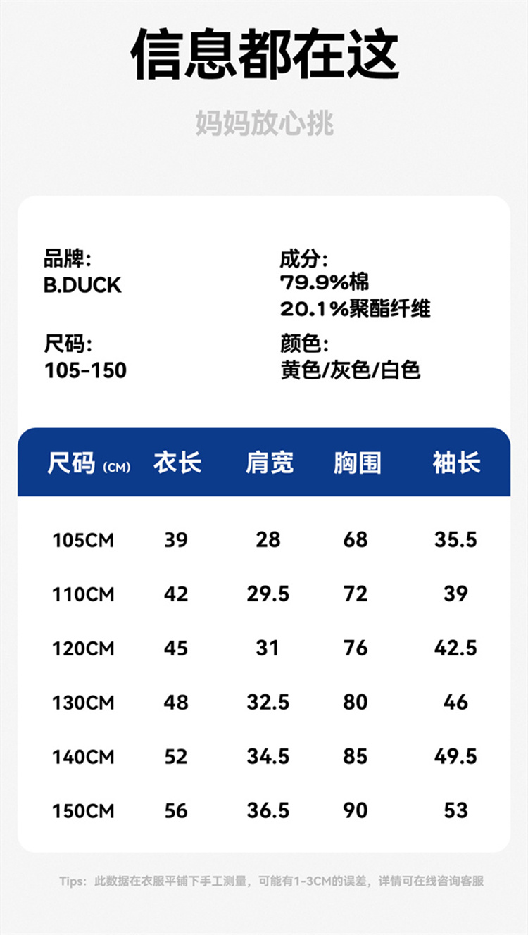 B.Duck小黄鸭童装圆领卫衣春春秋男童时尚潮酷上衣105-150 BF3508957