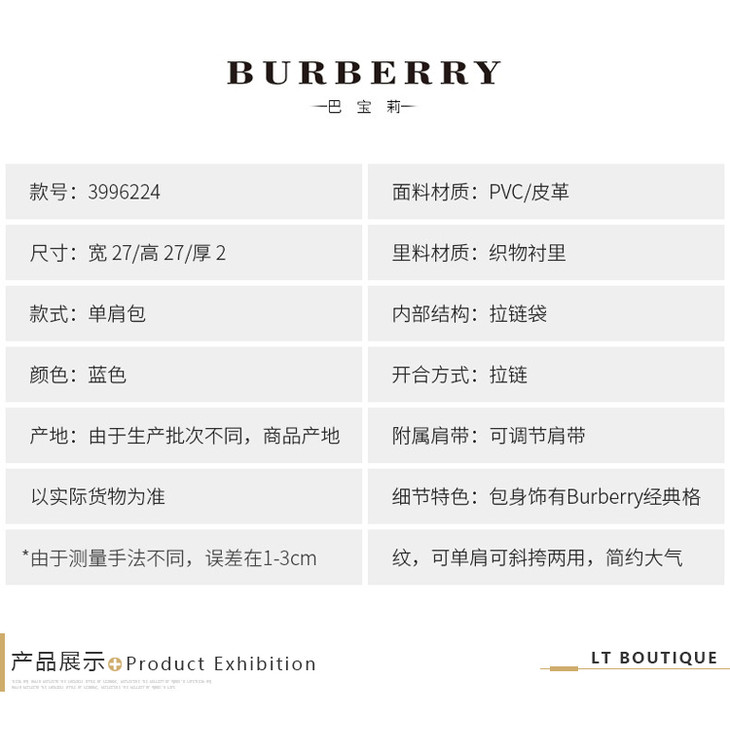 BURBERRY 巴宝莉 男包经典格纹印花单肩斜挎邮差包 3996224 4100B
