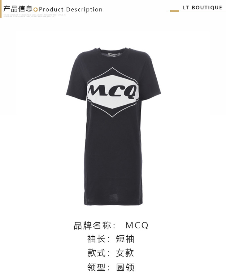 MCQ女士品牌印花短袖T恤连衣裙 492158 RMH28 1000