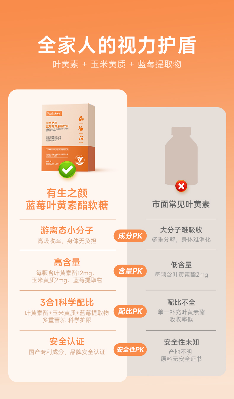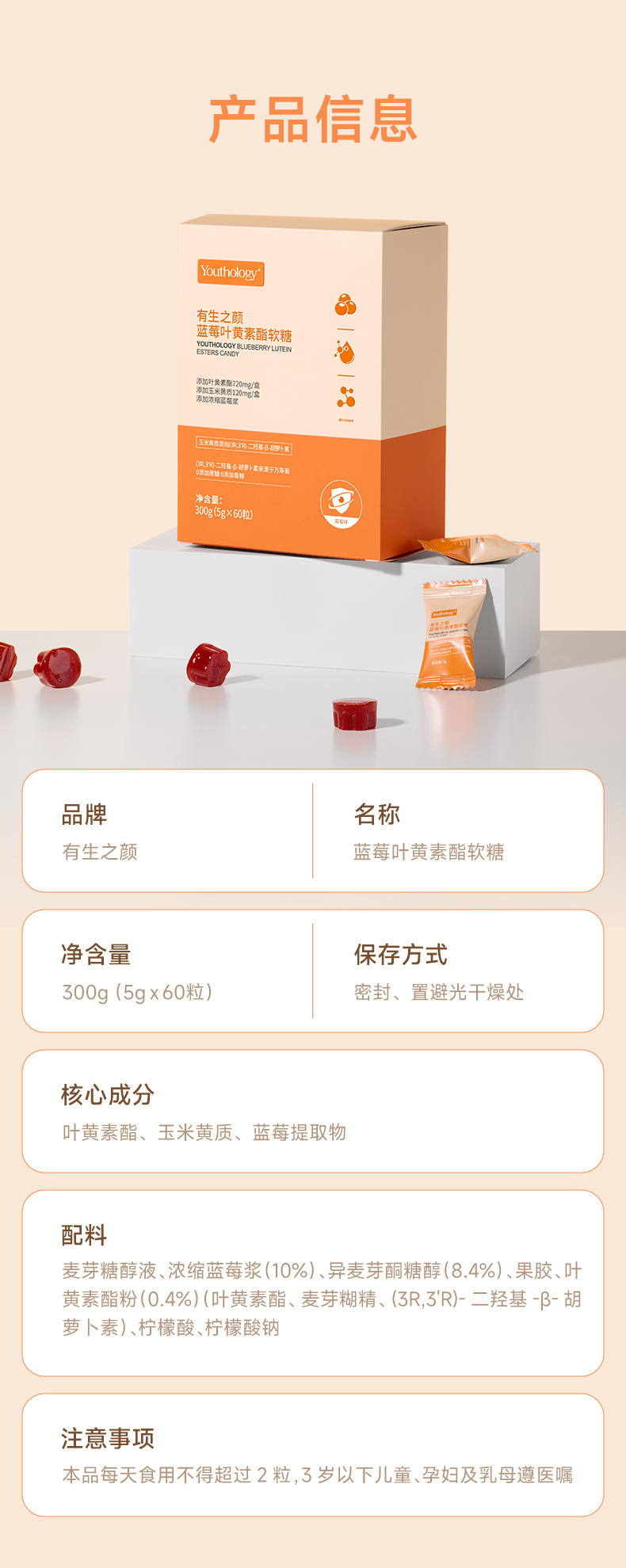 【双11】有生之颜 叶黄素酯凝胶糖果(5g×60粒)
