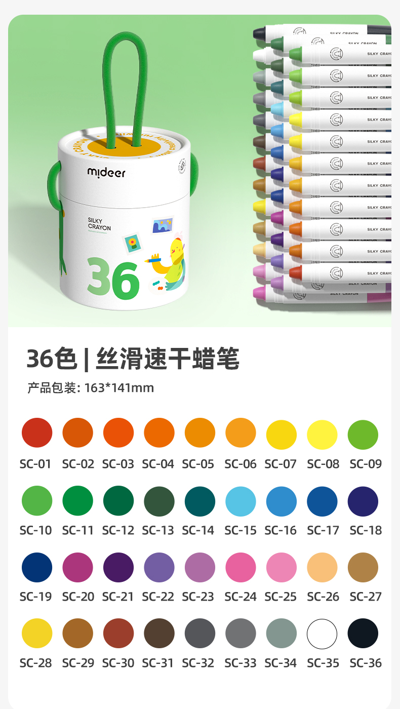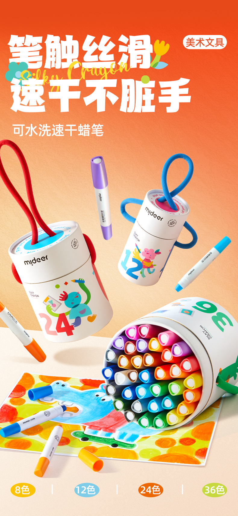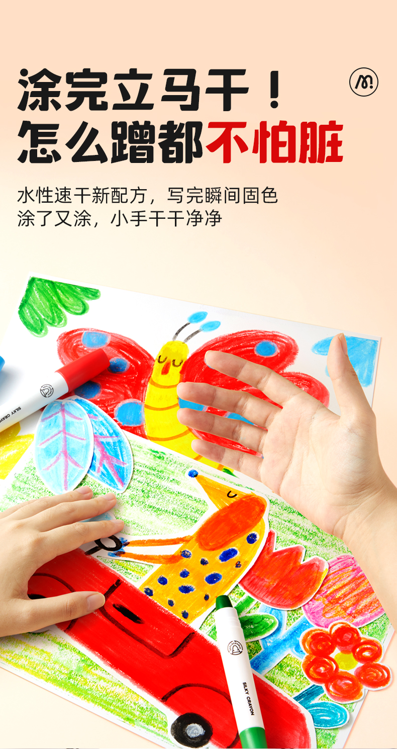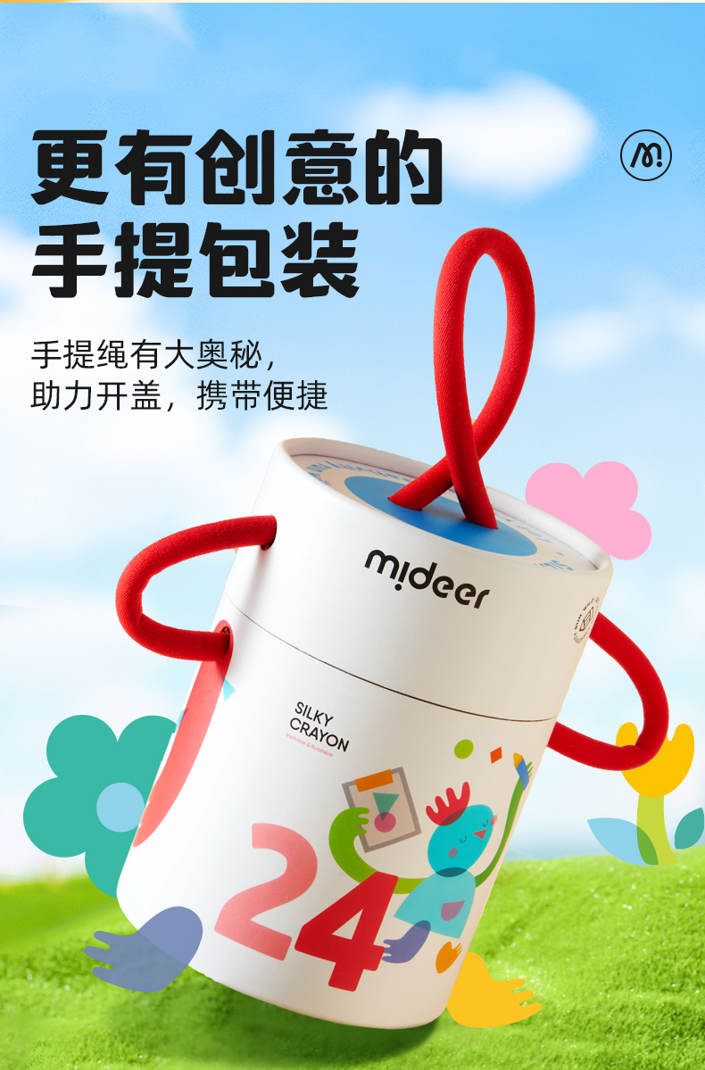 mideer弥鹿丝滑速干蜡笔油画棒旋转可水洗不脏手儿童安全水溶性画笔炫彩棒幼儿园专用彩笔宝宝画画笔缤纷桶