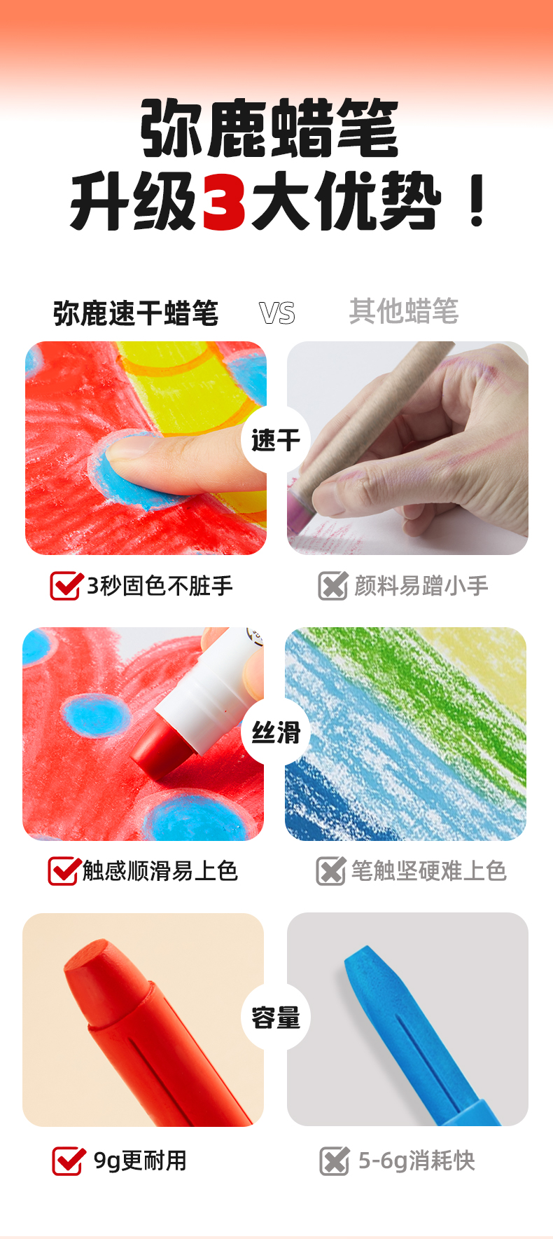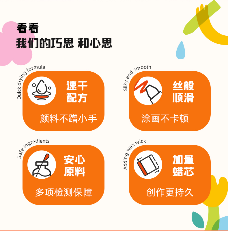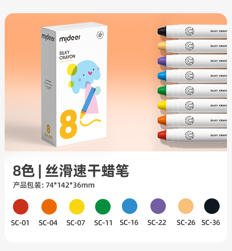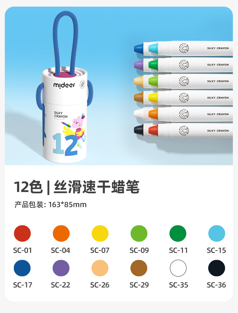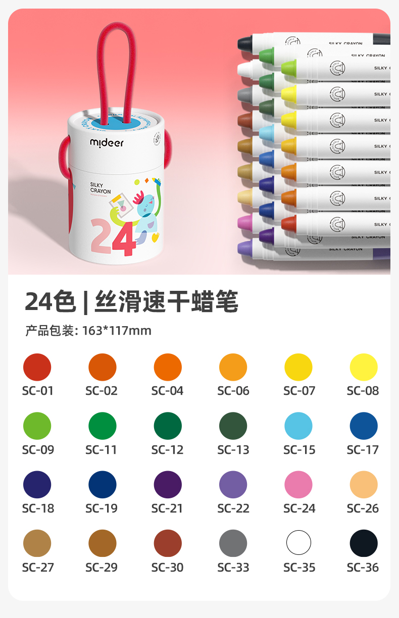 mideer弥鹿丝滑速干蜡笔油画棒旋转可水洗不脏手儿童安全水溶性画笔炫彩棒幼儿园专用彩笔宝宝画画笔缤纷桶
