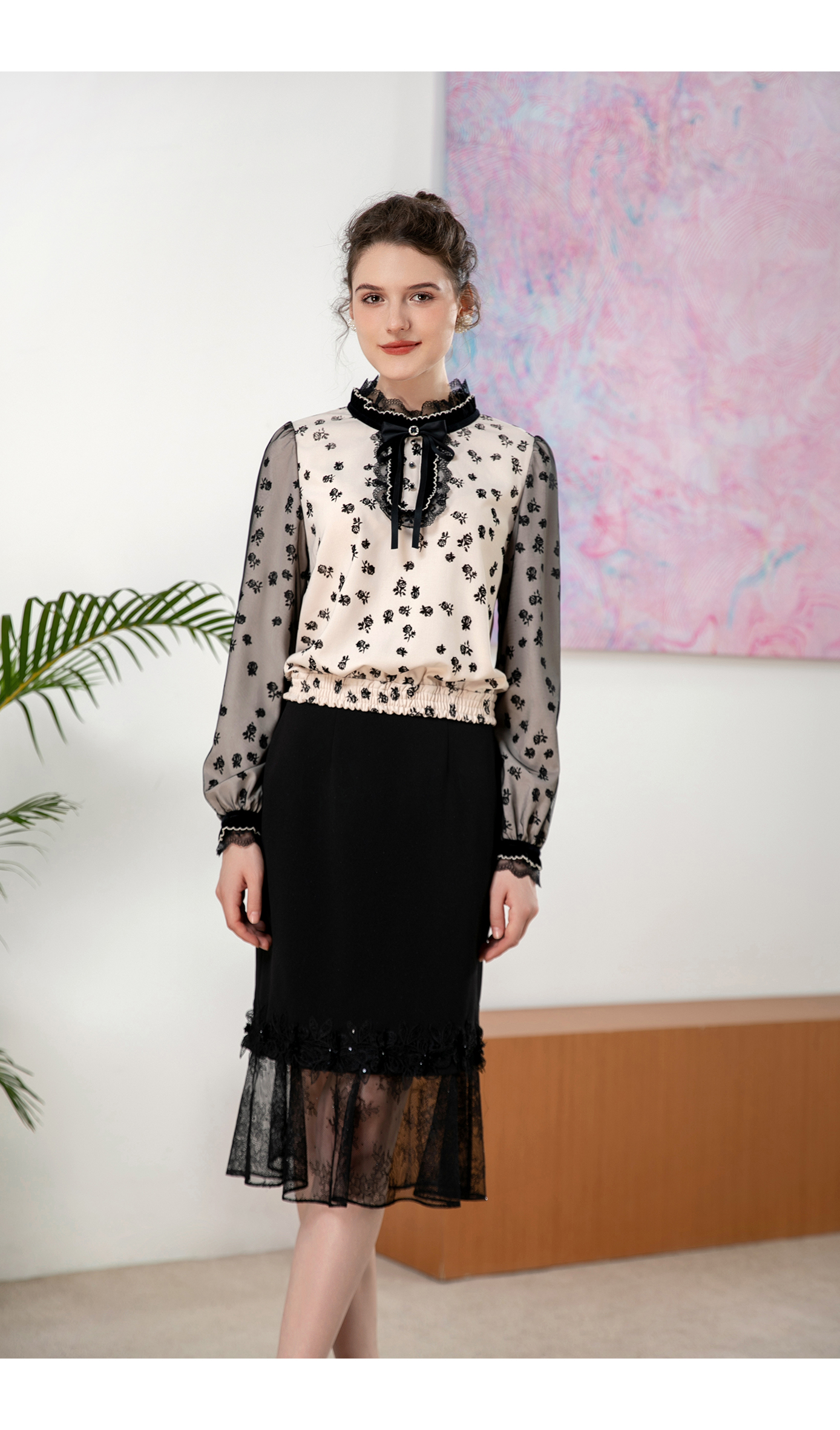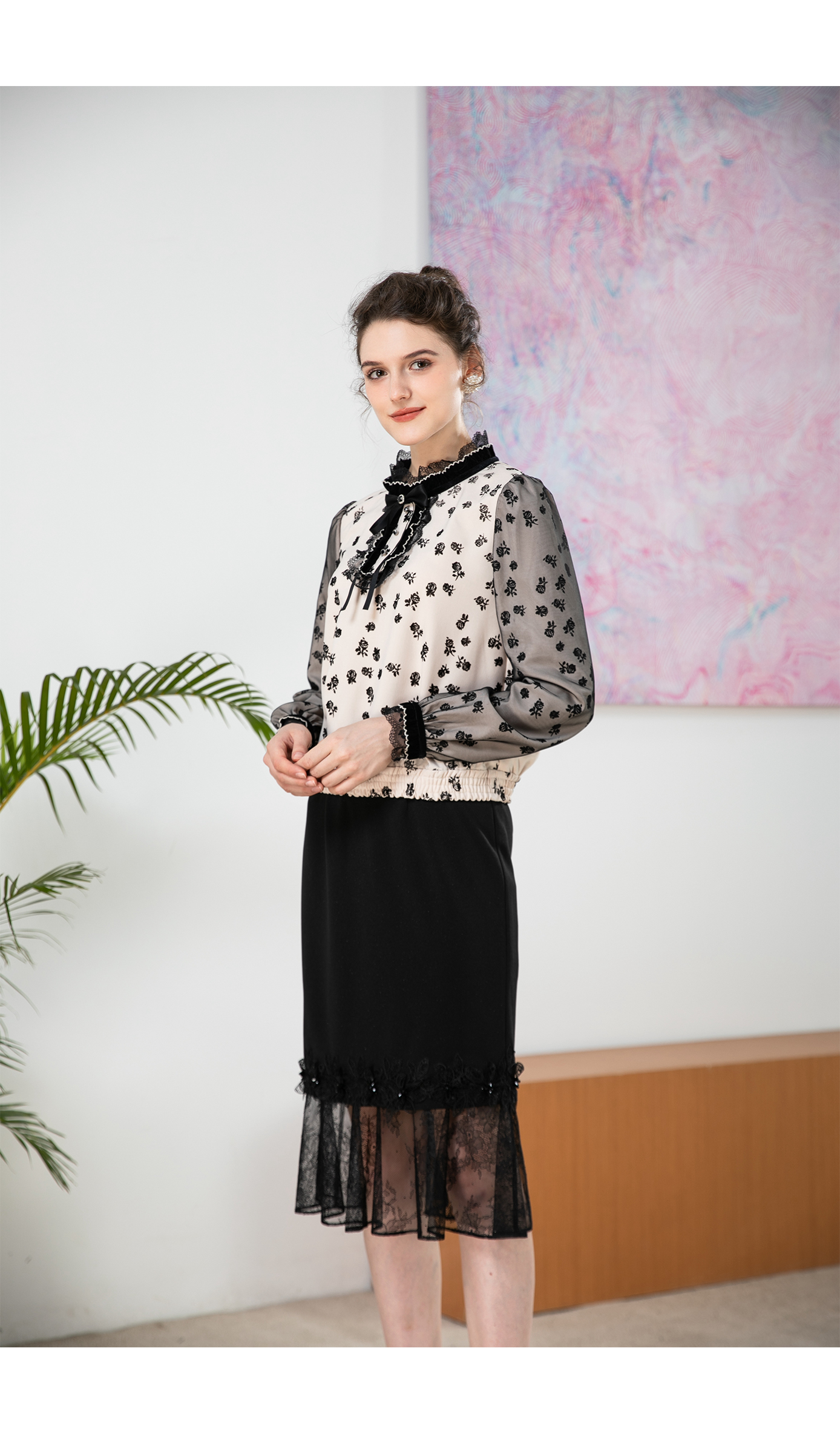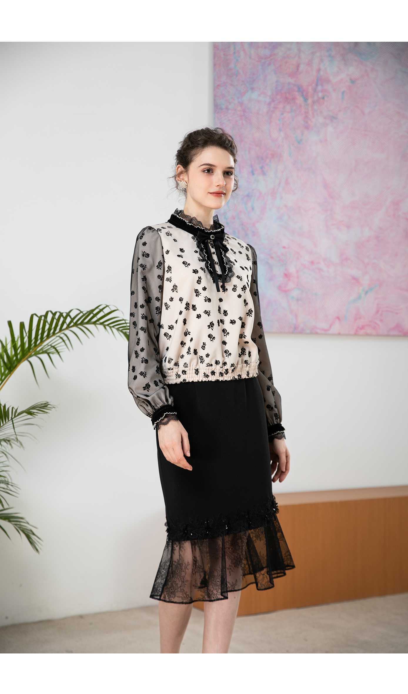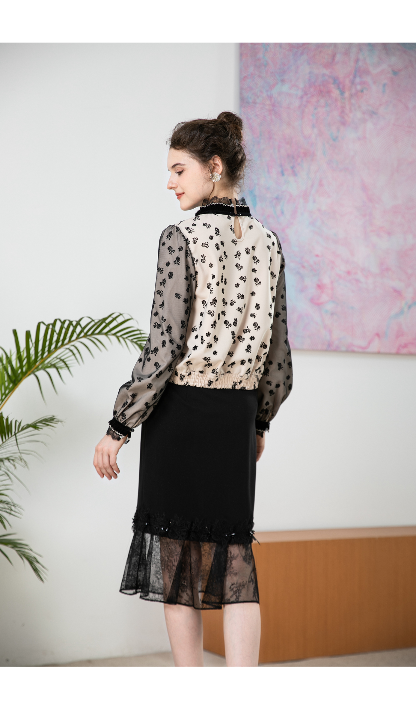 司歌植绒长袖复古上衣春秋T901270y