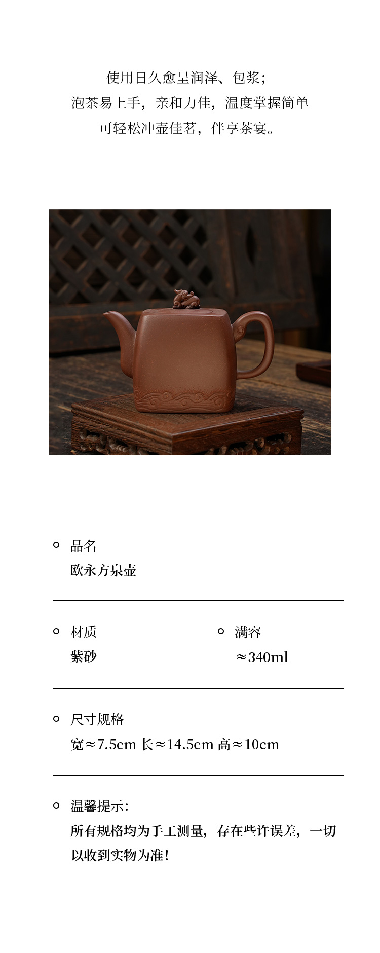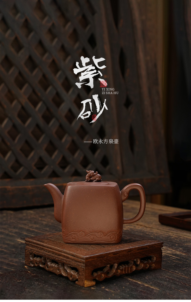 欧咏 方泉壶 宜兴紫砂原矿茶壶紫砂壶功夫茶泡茶壶茶具仿古