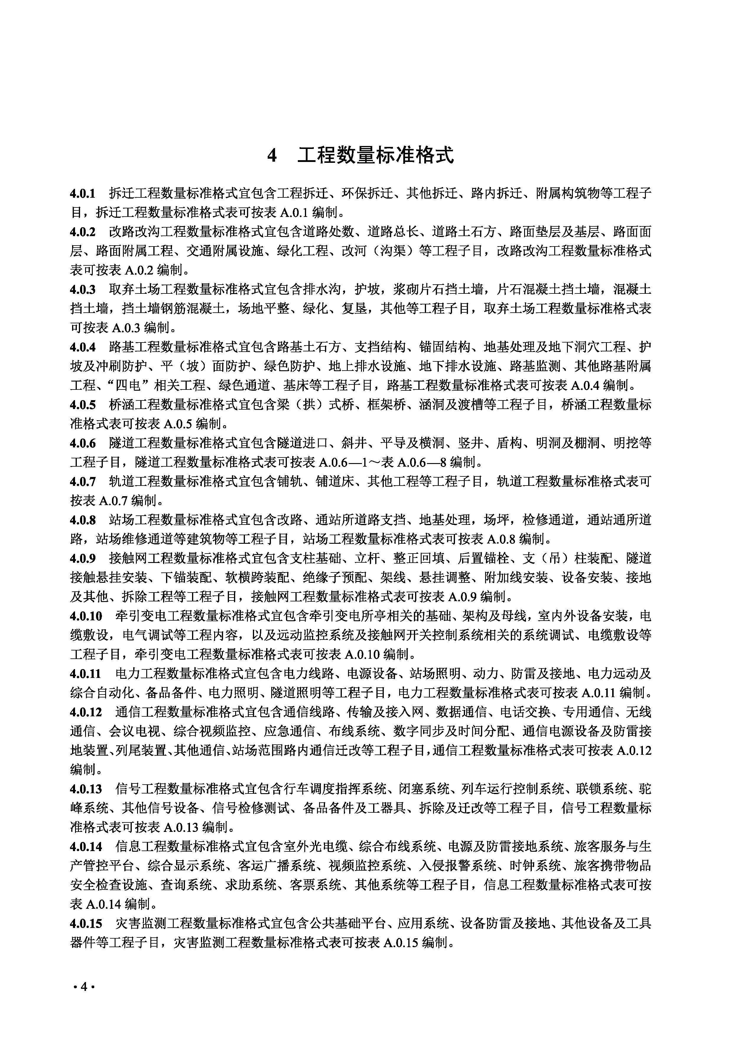 为贯彻国家关于数字中国建设整体布局规划,落实国铁集团《数字铁路规划》《“十四五”铁路网络安全和信息化规划》要求,践行全生命周期管理理念,实现中国铁路工程数字化、智能化,提升铁路工程智能建造水平,推进铁路高质量发展,在全面总结铁路工程BIM应用实践经验基础上,充分吸纳铁路工程BIM相关科研成果,借鉴国内外相关标准编制而成。BIMGIS技术作为数字铁路的核心技术之一,是铁路工程赋智赋能的重要手段。本指南按照国铁集团《关于加快推进铁路工程BIMGIS技术应用的指导意见》的要求,坚持科学合理、务实创新、技术经济的原则,规范了铁路工程数量标准格式表的组成与编制要求,明确了拆迁、改路改沟等26项工程内容的工程子目,提出了工程数量标准格式表,为实现铁路工程全生命周期信息传递共享,提升铁路工程智能建造水平提供重要支撑。本指南由4章组成,包含总则、术语、基本规定、工程数量标准格式。另有2个附录。