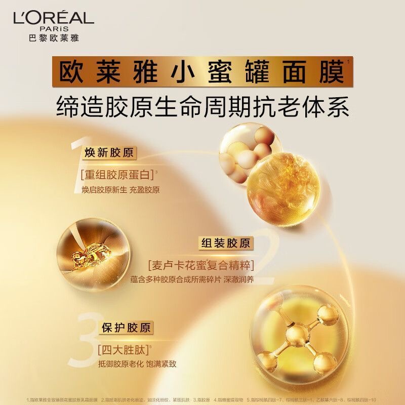 严选 | 欧莱雅花蜜胶原乳霜面膜 紧致抗皱小蜜罐 5片/盒*2盒
