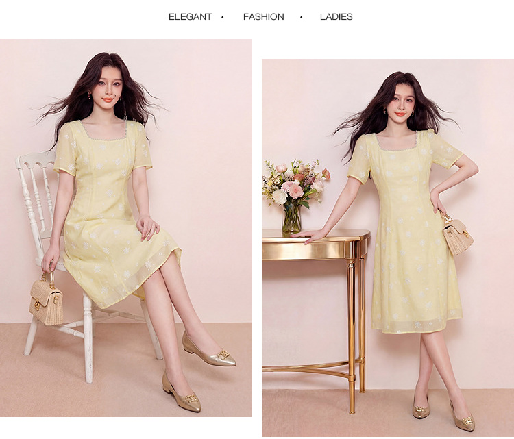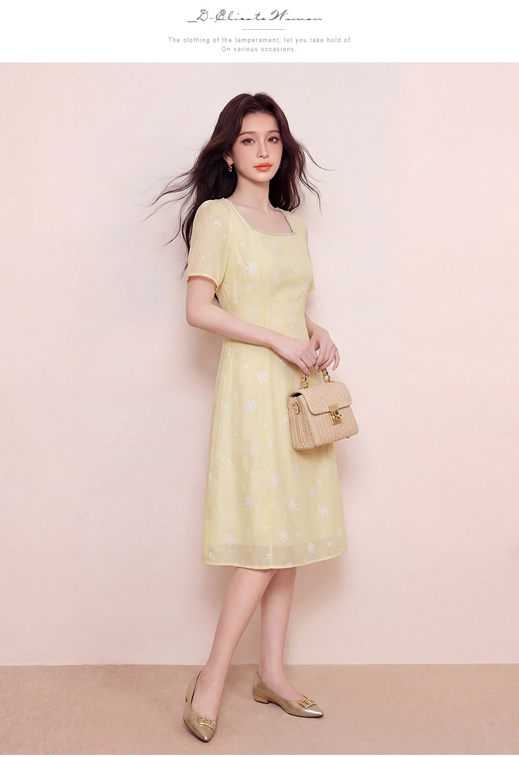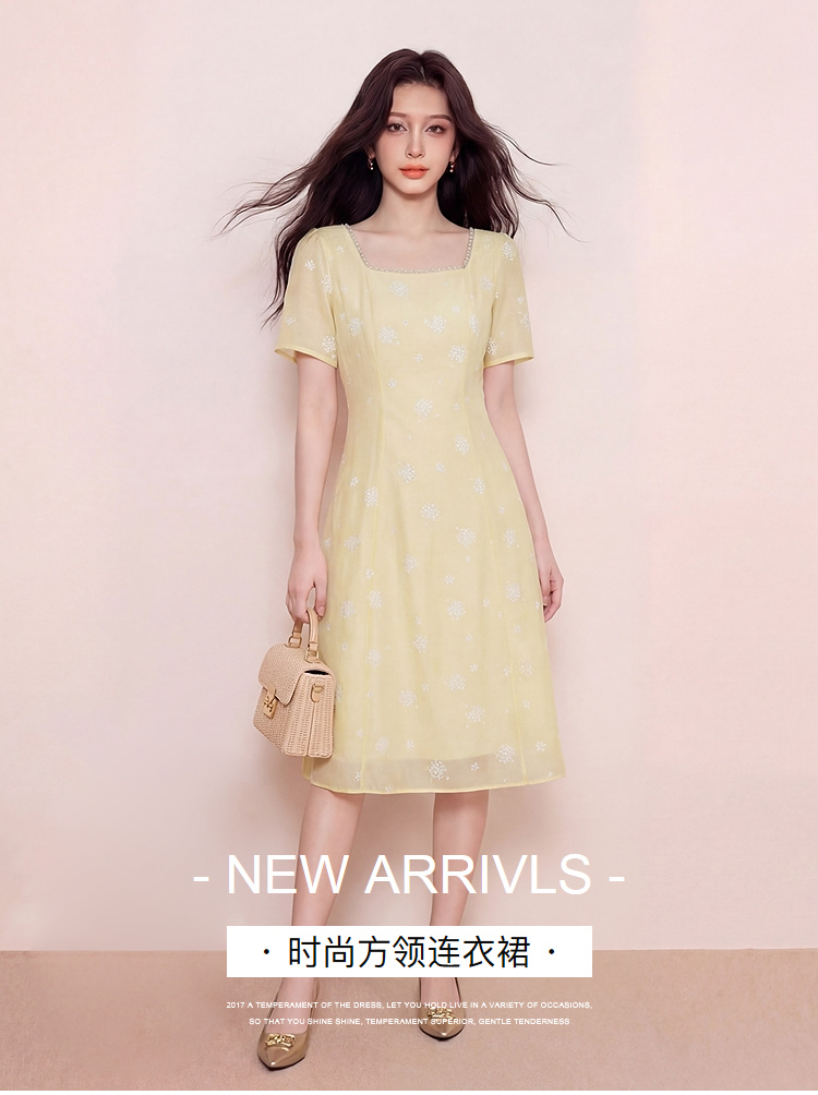 奢姿大码女装2026夏季减龄刺绣钉珠方领连衣裙胖妹妹时尚甜美裙子9962872079