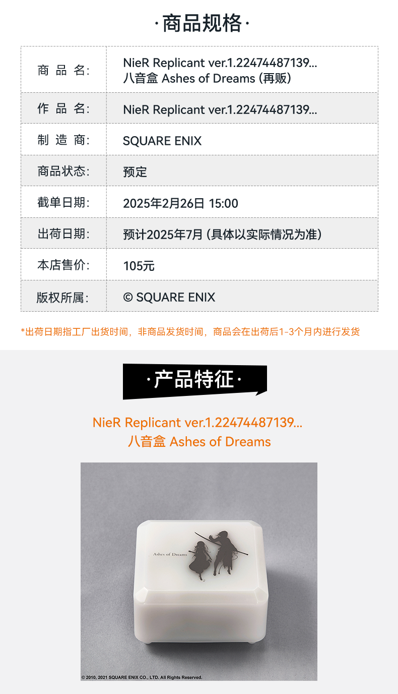 【GSC现货】NieR Replicant ver.1.22474487139... 八音盒 Ashes of Dreams