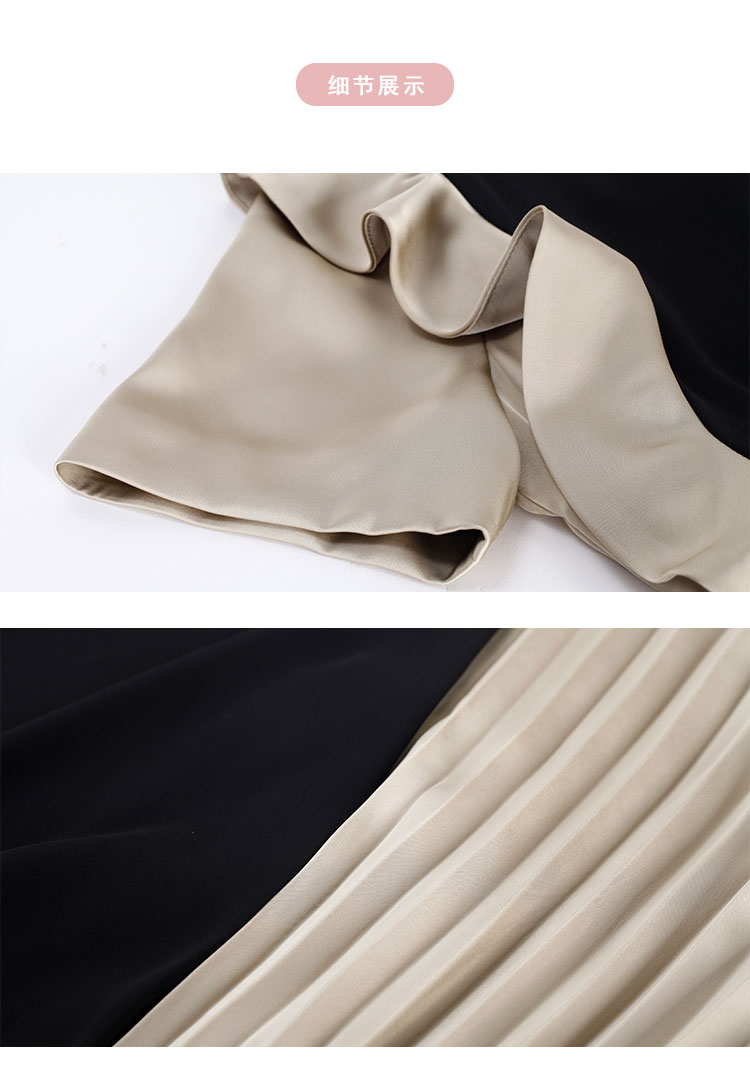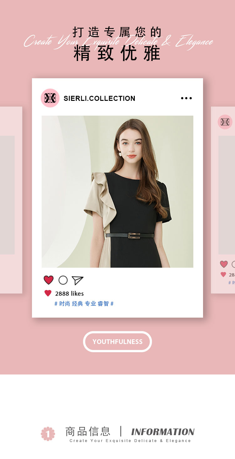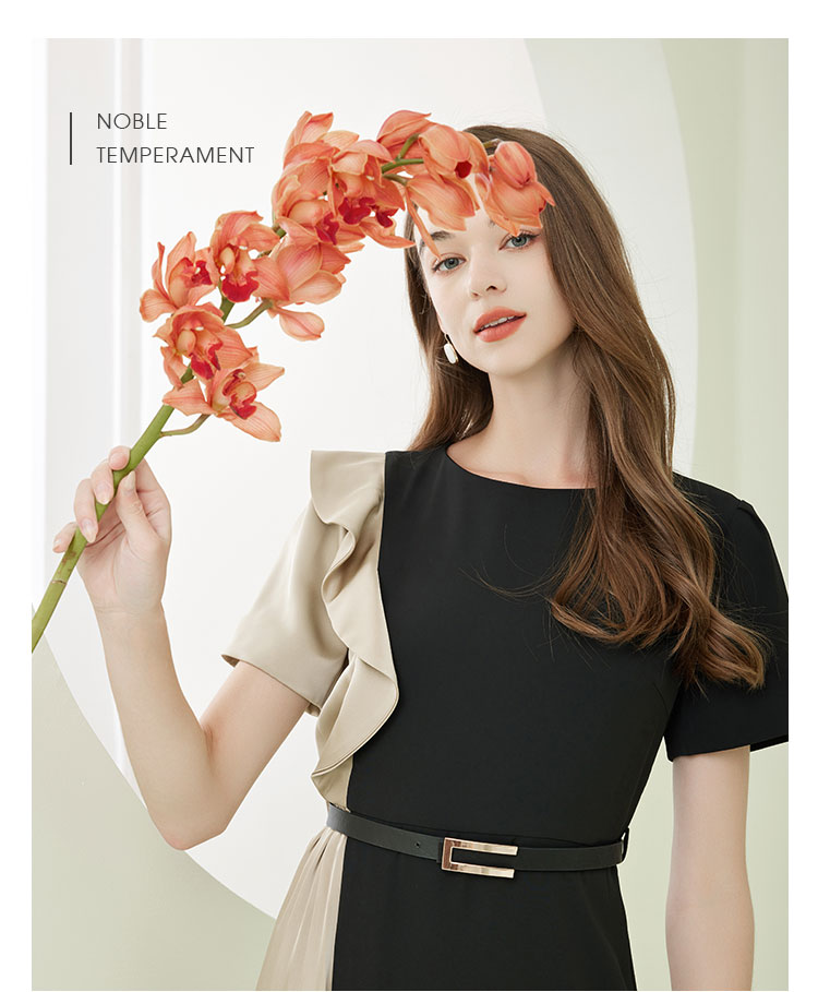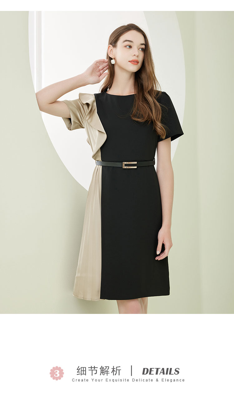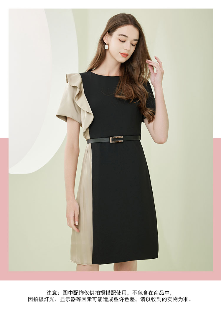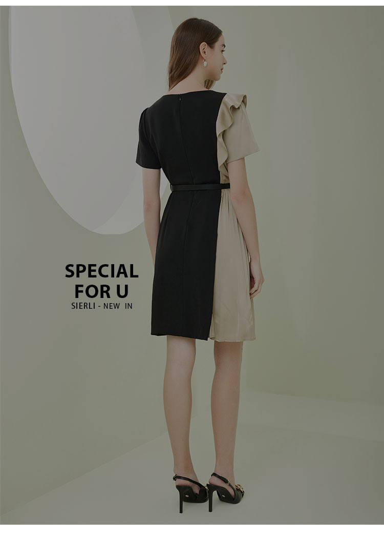 NF844斯尔丽瑟俪2023春夏新款不对称设计感荷叶边拼接优雅气质连衣裙
