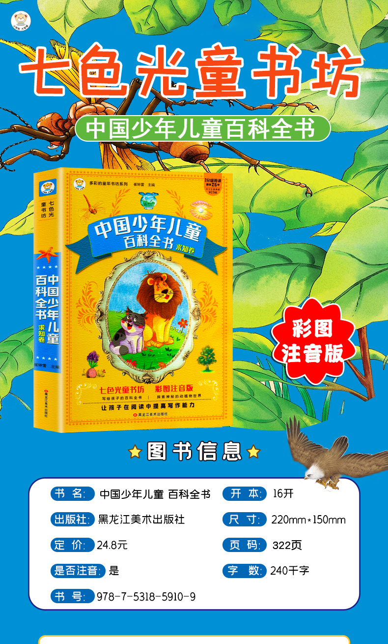 中国少年儿童百科全书322页彩图注音版动物世界植物天地海洋生物一二三年级课外阅读书籍科普读物绘本写给孩子的百科全书