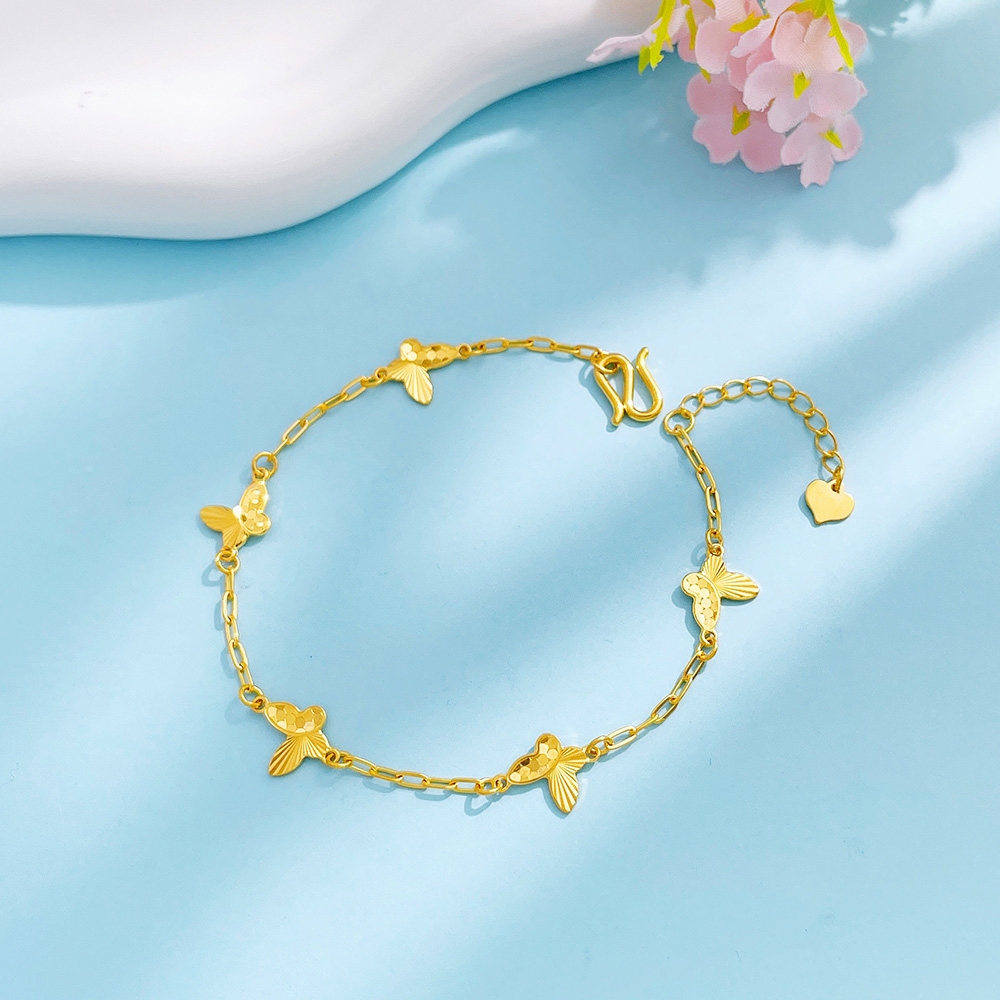 【限时克减150元】足金999.9 #九紫离火 万足实心双面五蝴蝶时尚可调节手链(AWWSL00220)(预售产品下单后不退款不退货不换货不补差价)