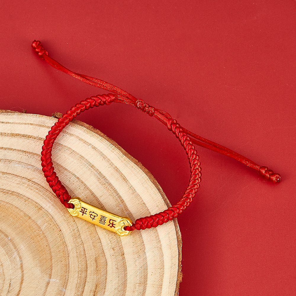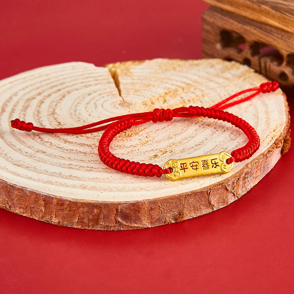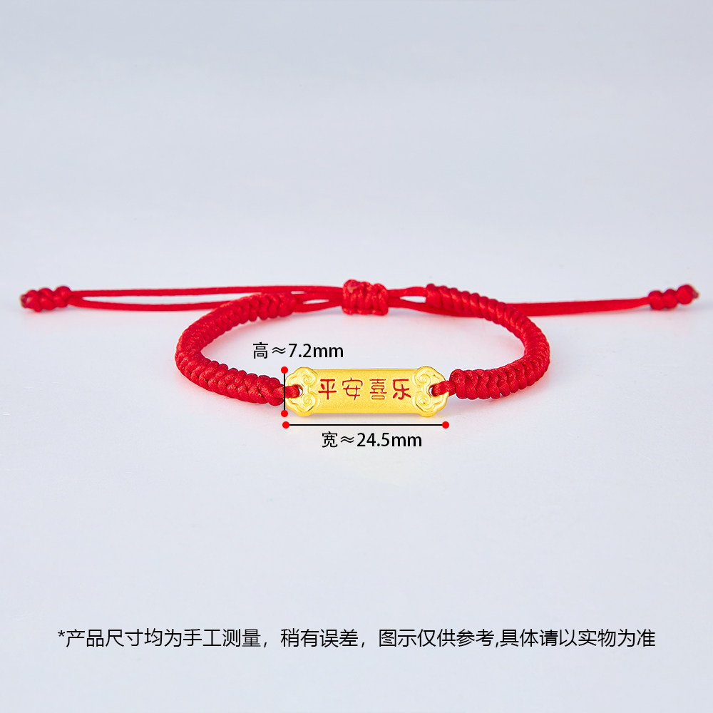 【限时7.5折】【定价黄金】足金 #儿童/宝宝 3D硬金红烤漆平安喜乐如意牌调节金刚结红绳成品手串(宝宝款)(AA3DSC00045)(预售产品下单后不退款不退货不换货不补差价)