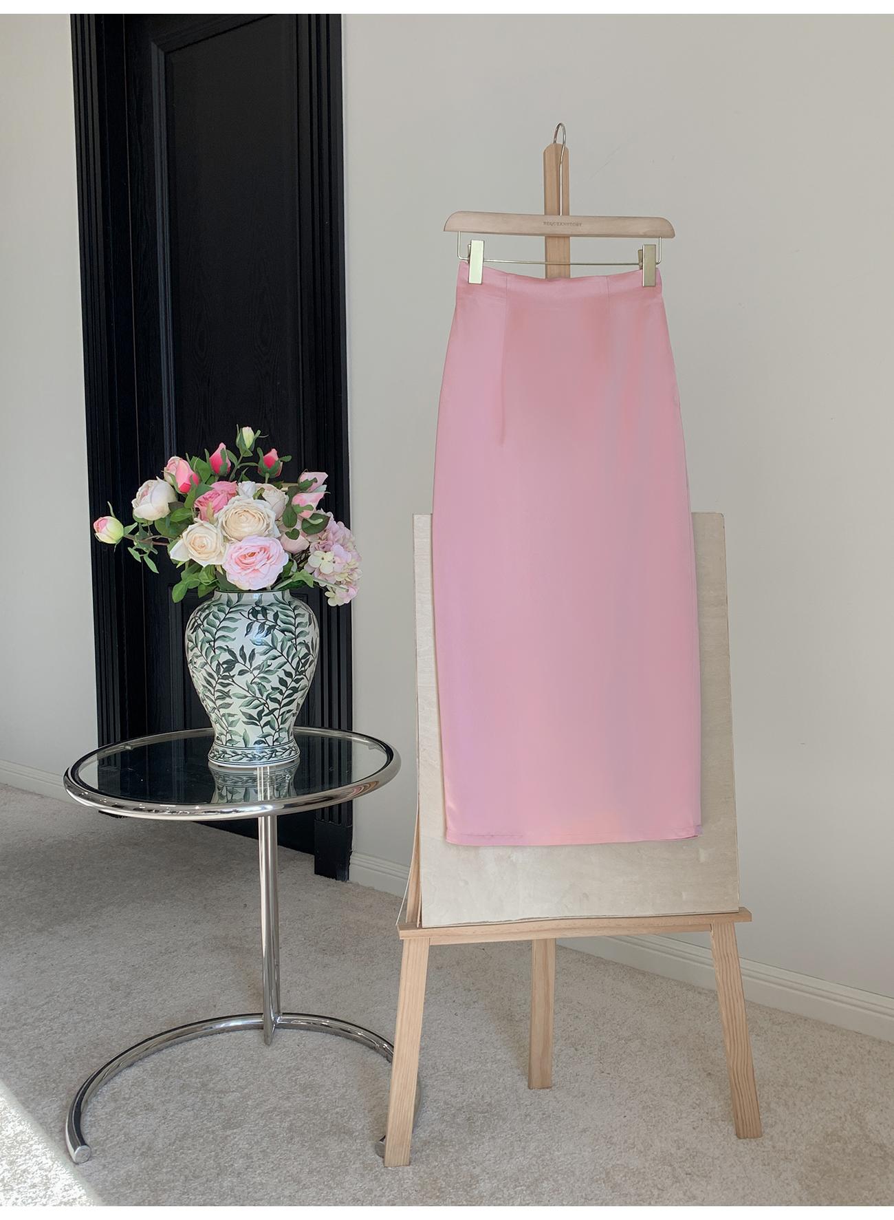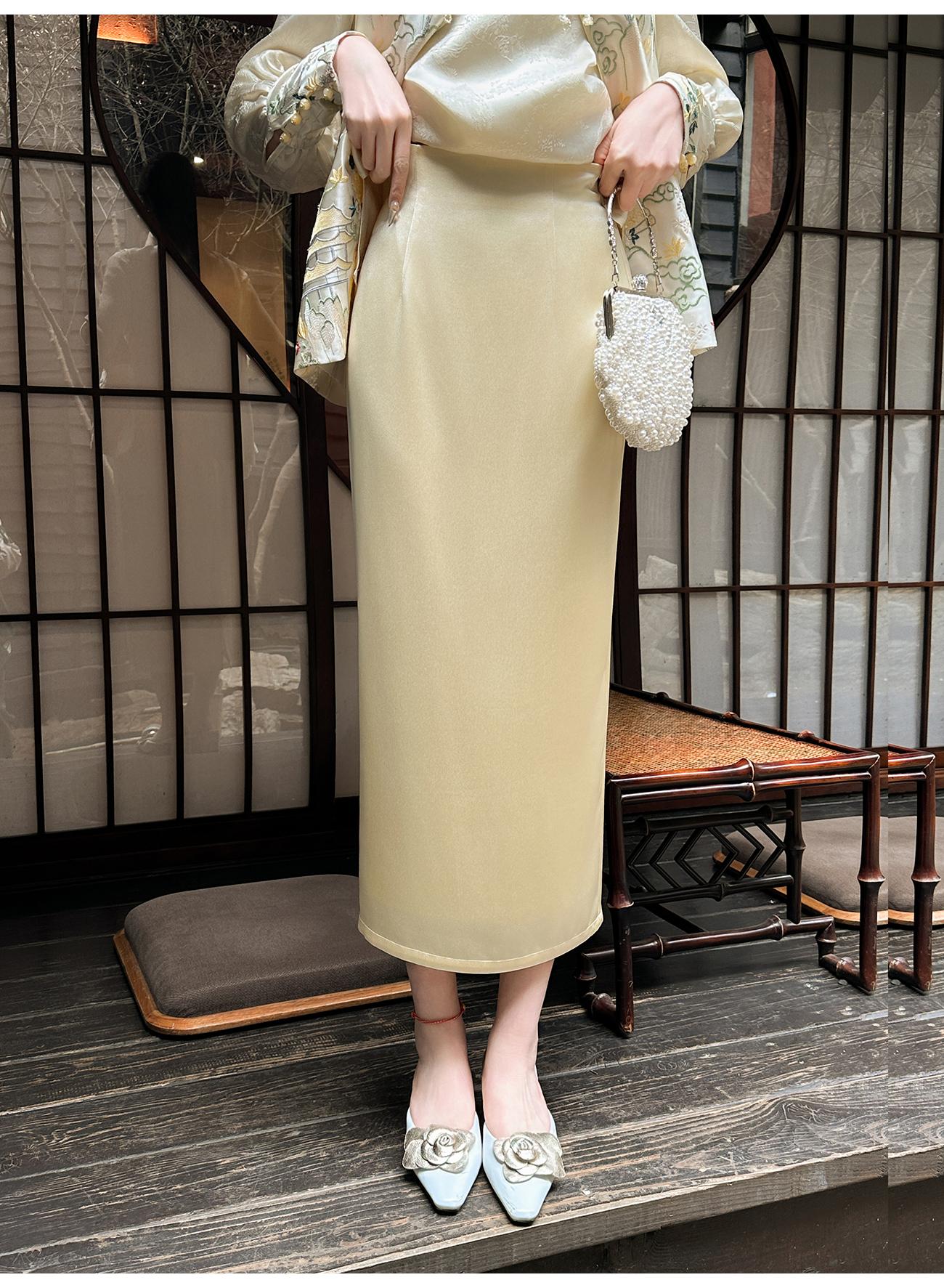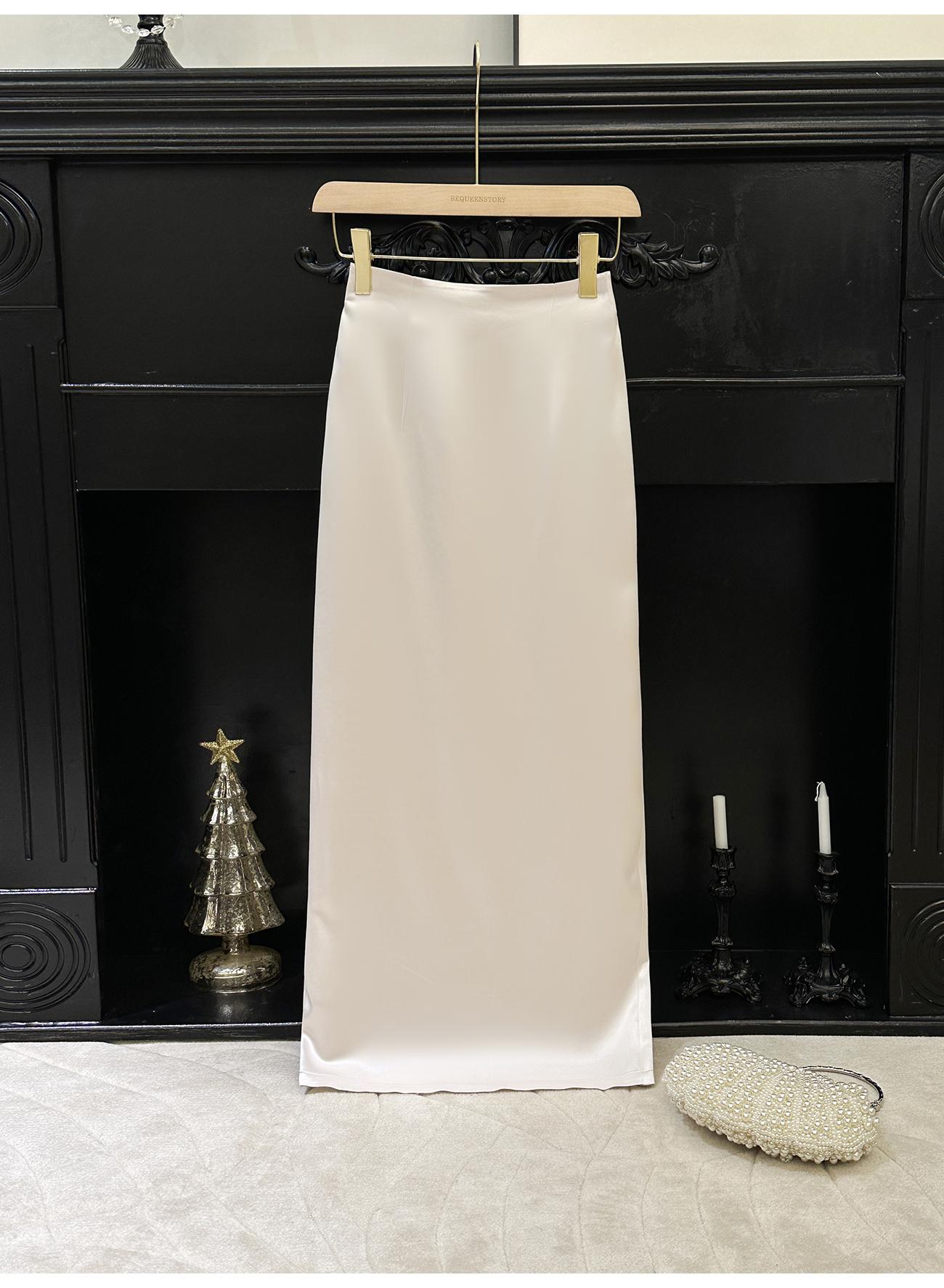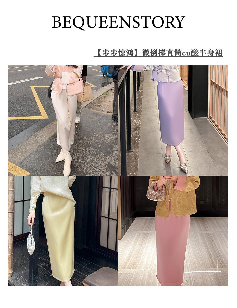 BeQueenStory【步步惊鸿】优雅时尚后开叉微倒梯直筒醋酸半身裙