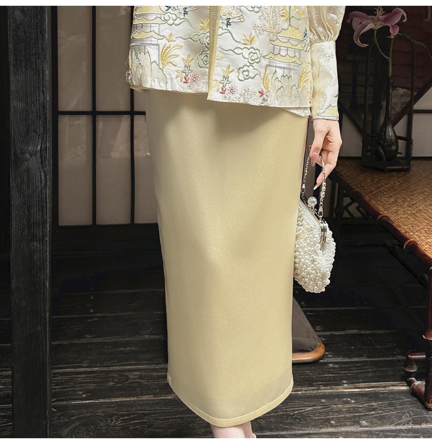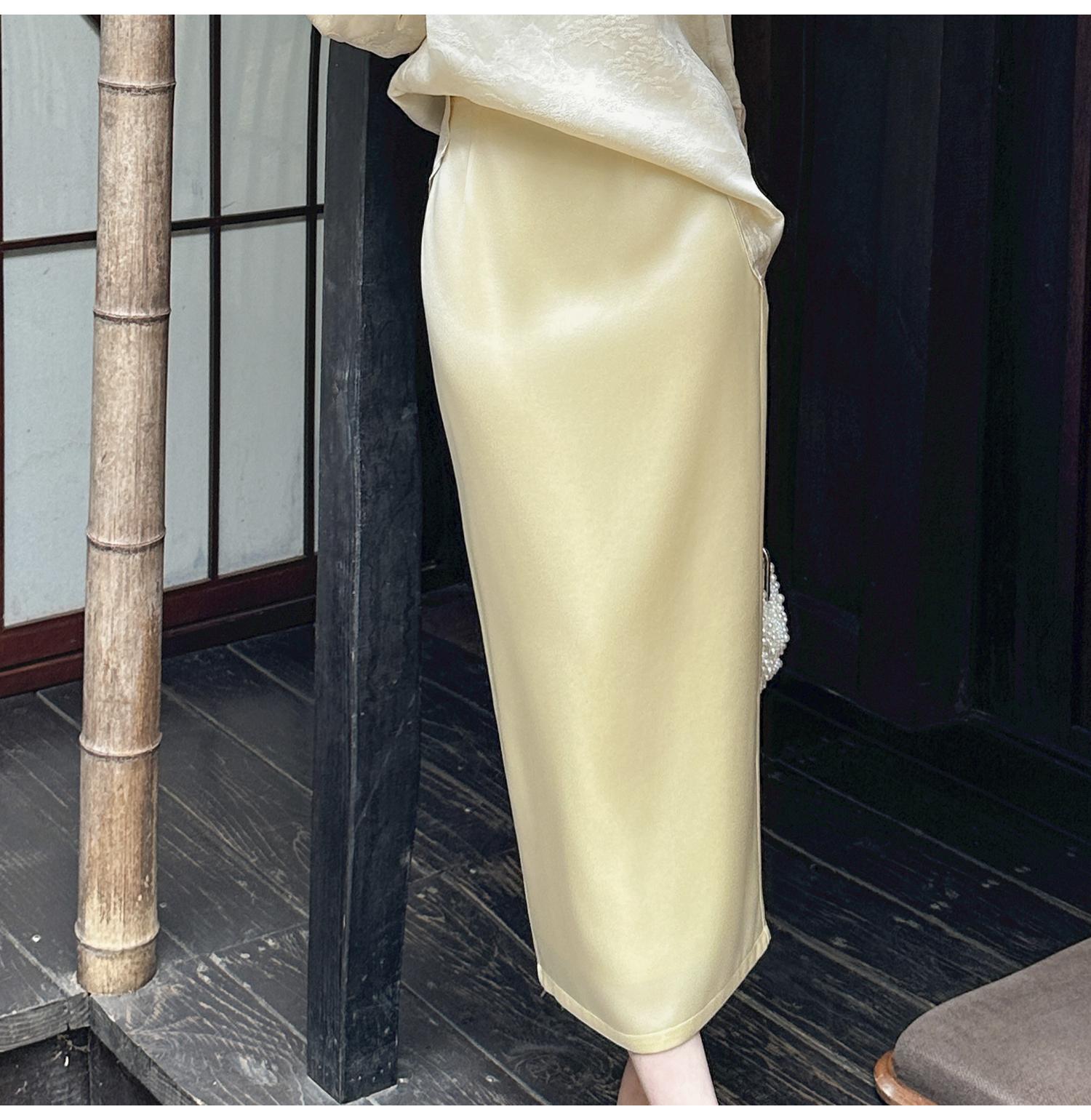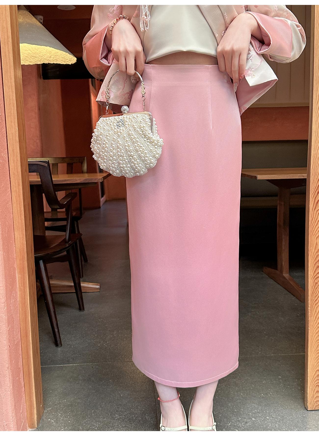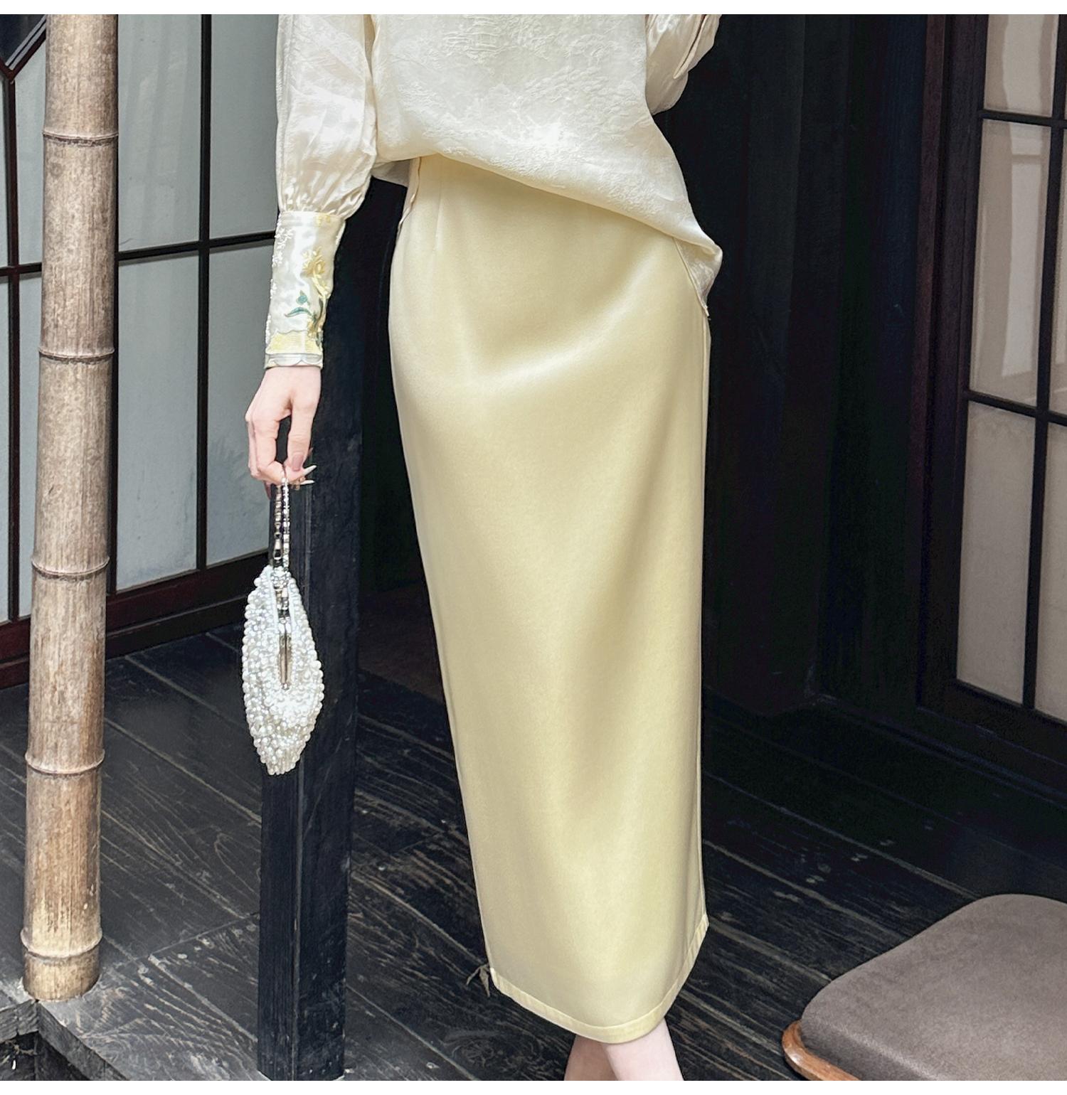 BeQueenStory【步步惊鸿】优雅时尚后开叉微倒梯直筒醋酸半身裙