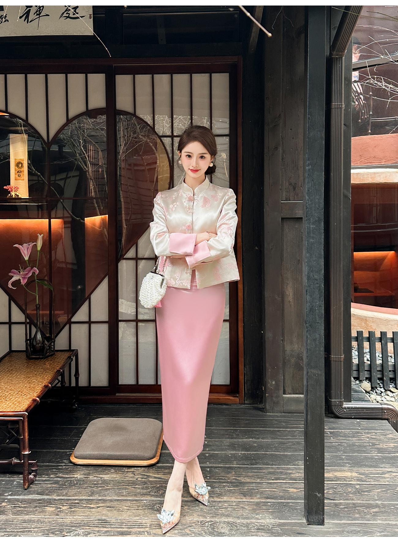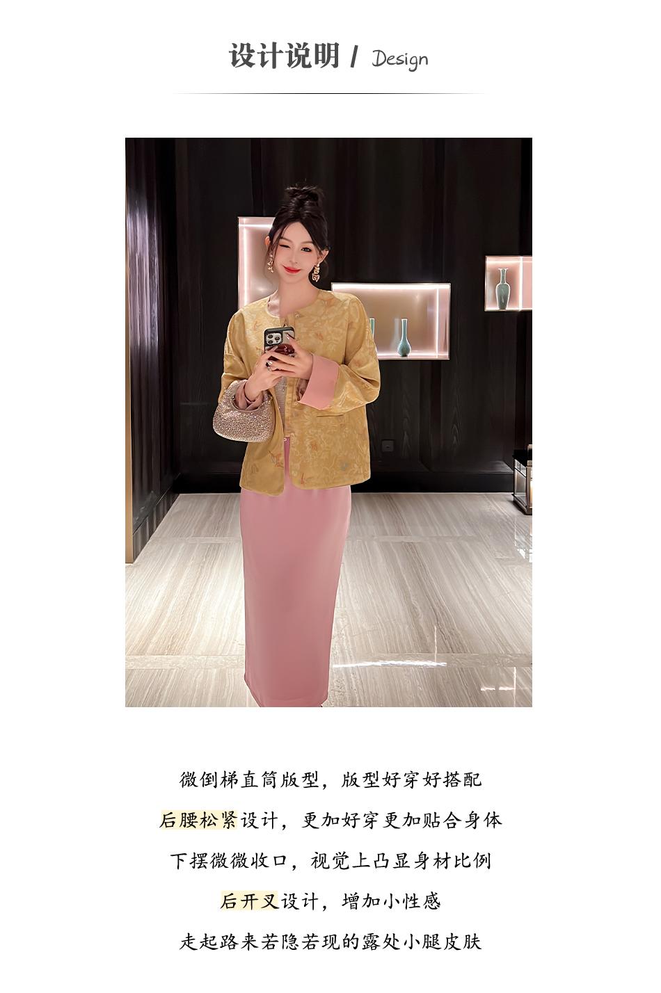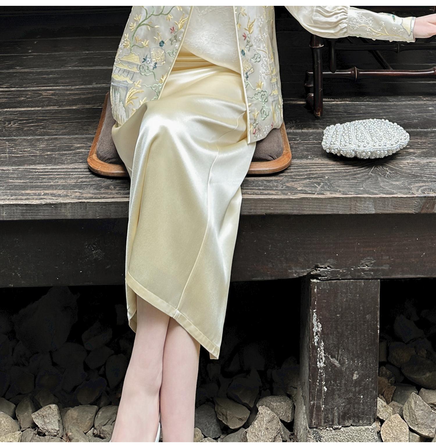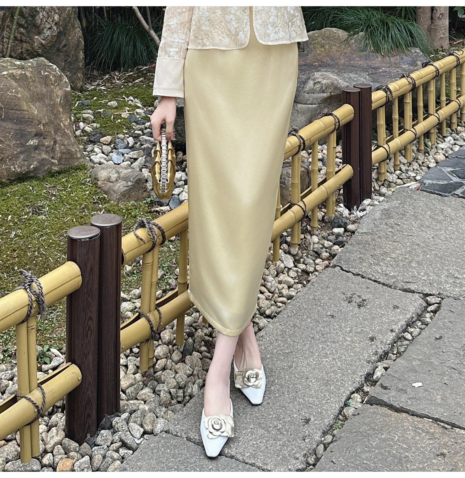 BeQueenStory【步步惊鸿】优雅时尚后开叉微倒梯直筒醋酸半身裙