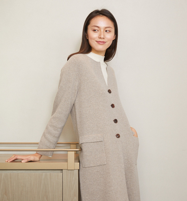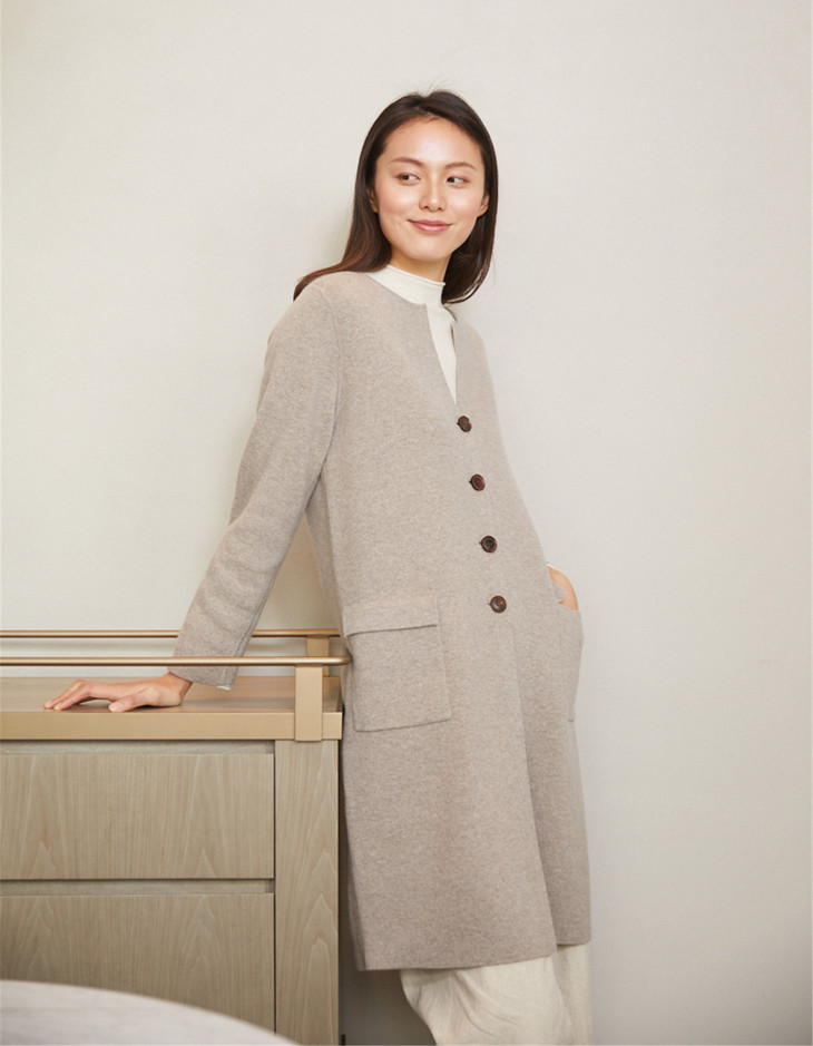垂直利落的线条,简约大气的设计,为这款精致的大衣赋予神奇的魔力,仿佛一穿上它就能拥有天然的女王气场。