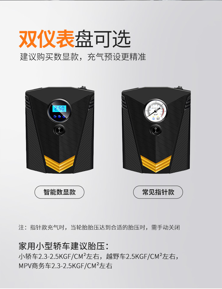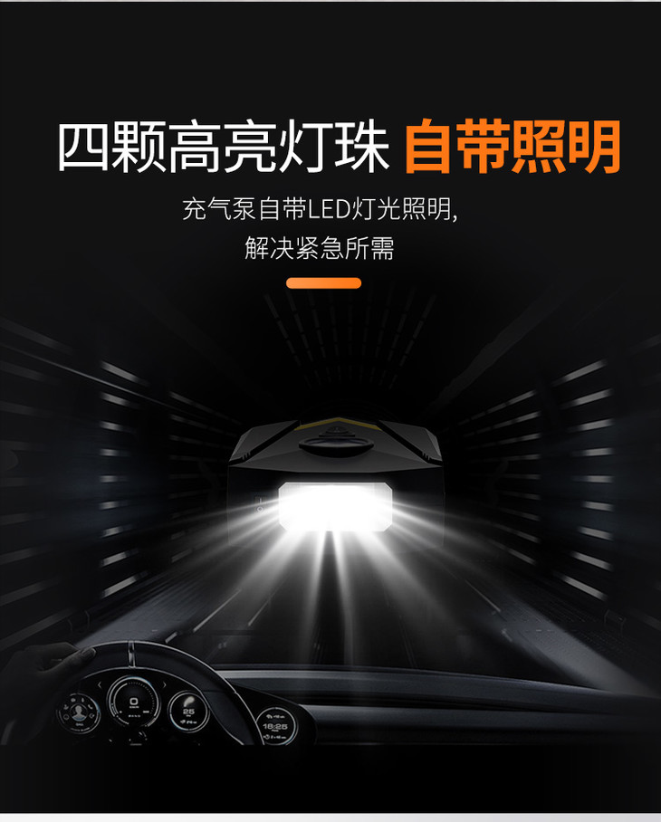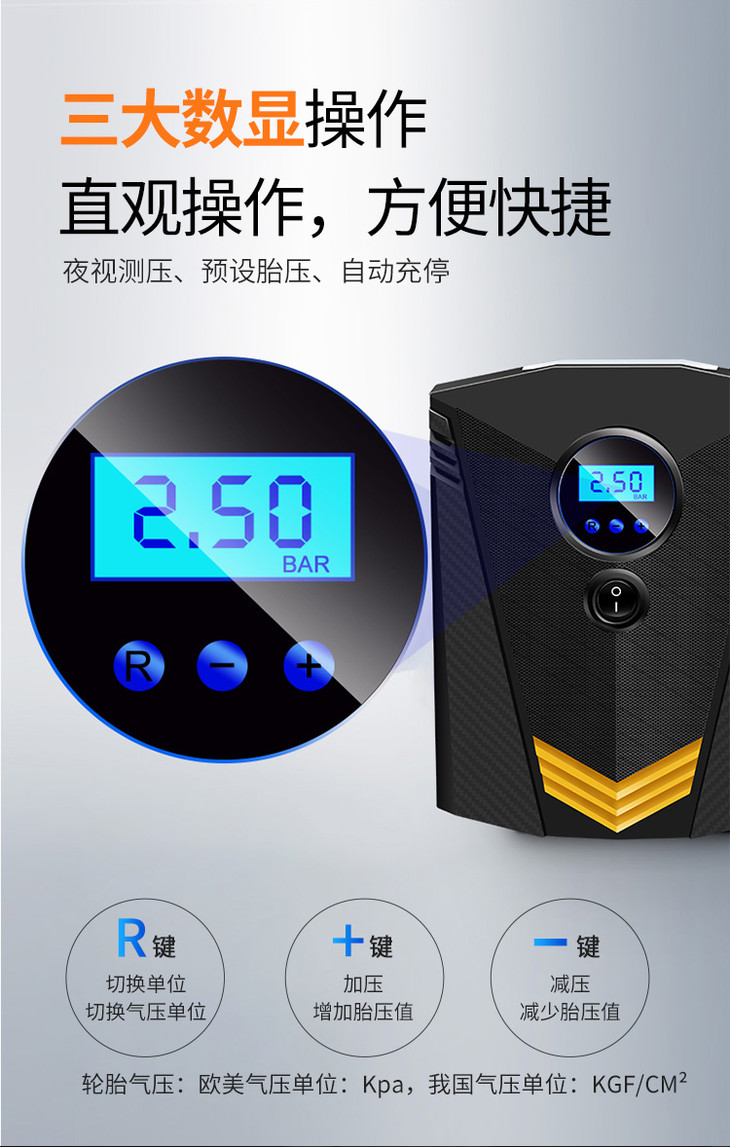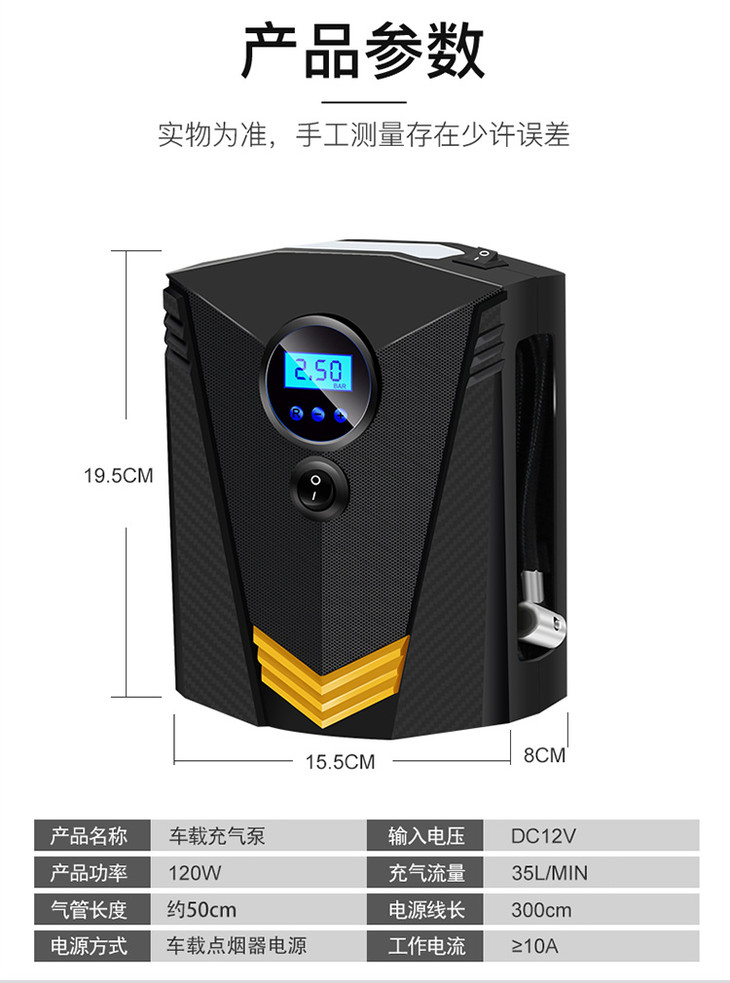 升级款车载充气泵60秒快速补气 预设胎压自动充停 自带收纳小巧便携