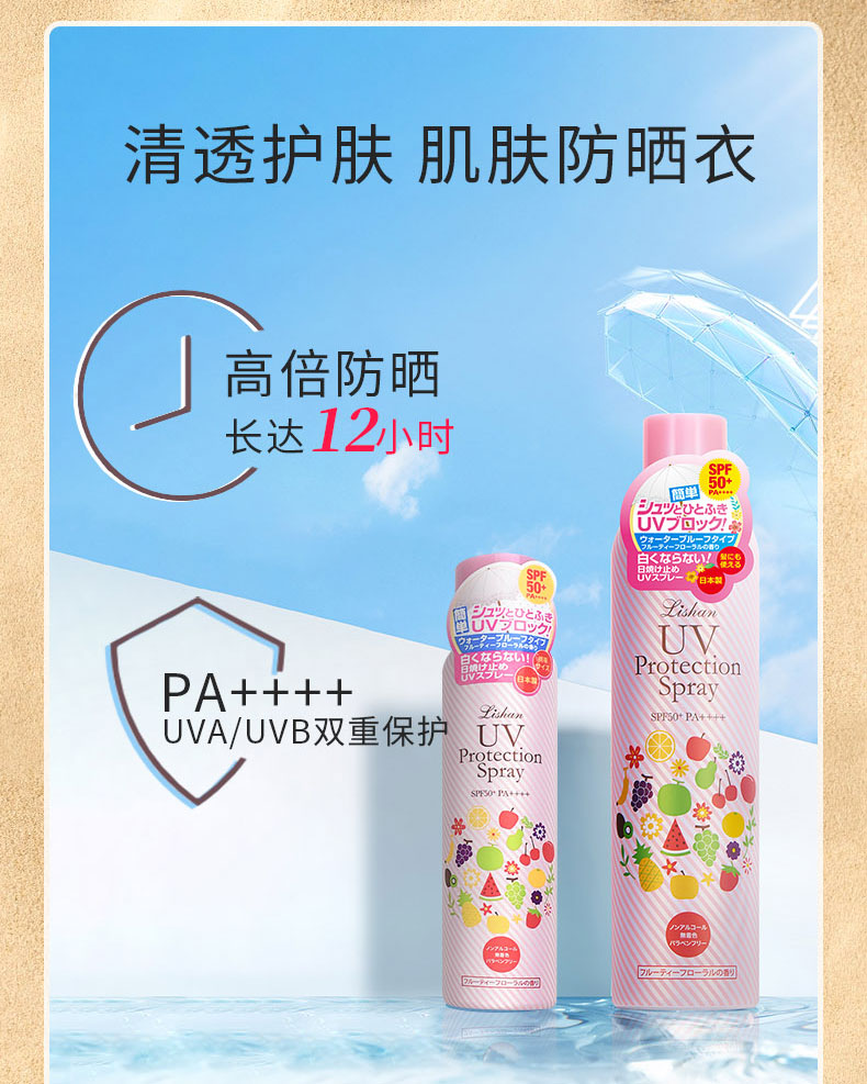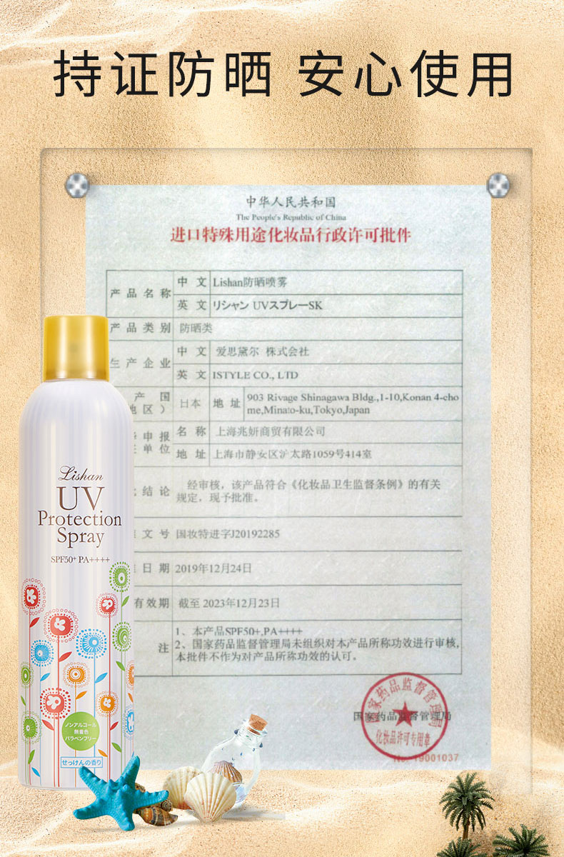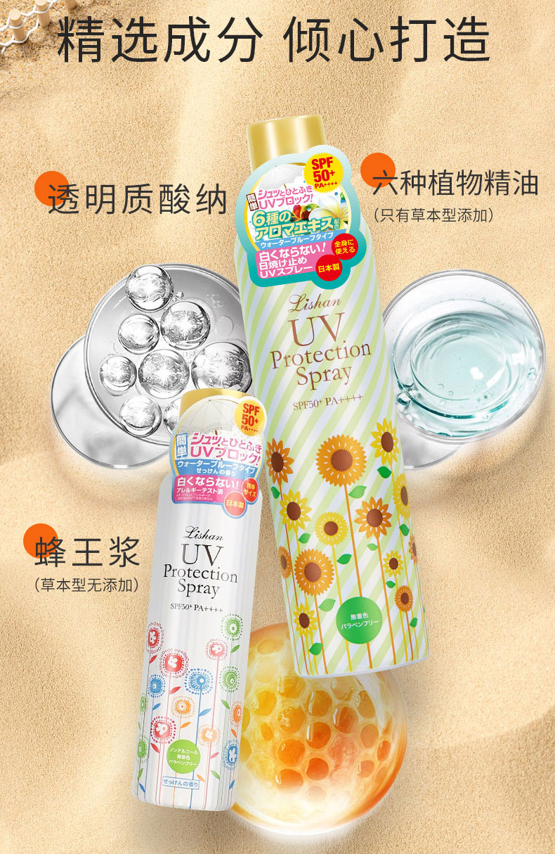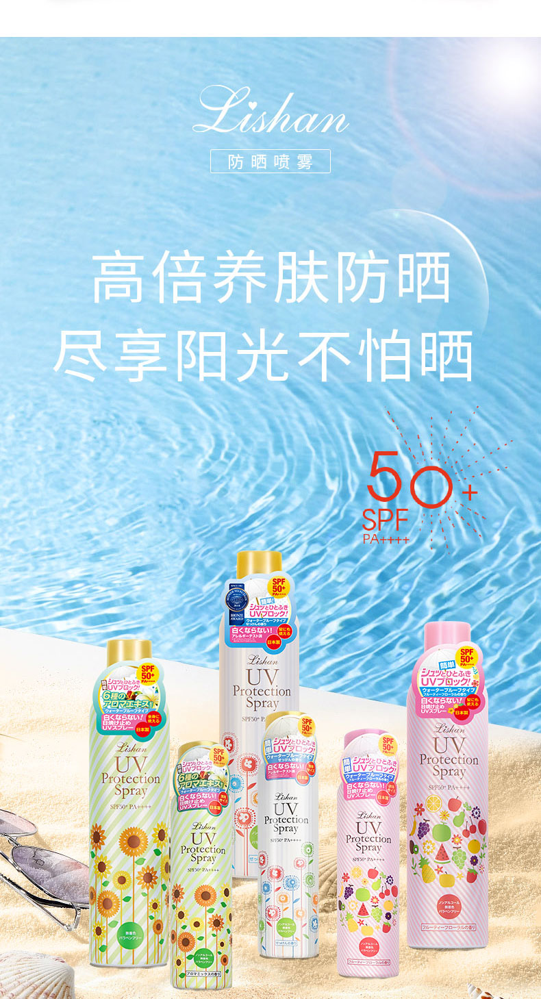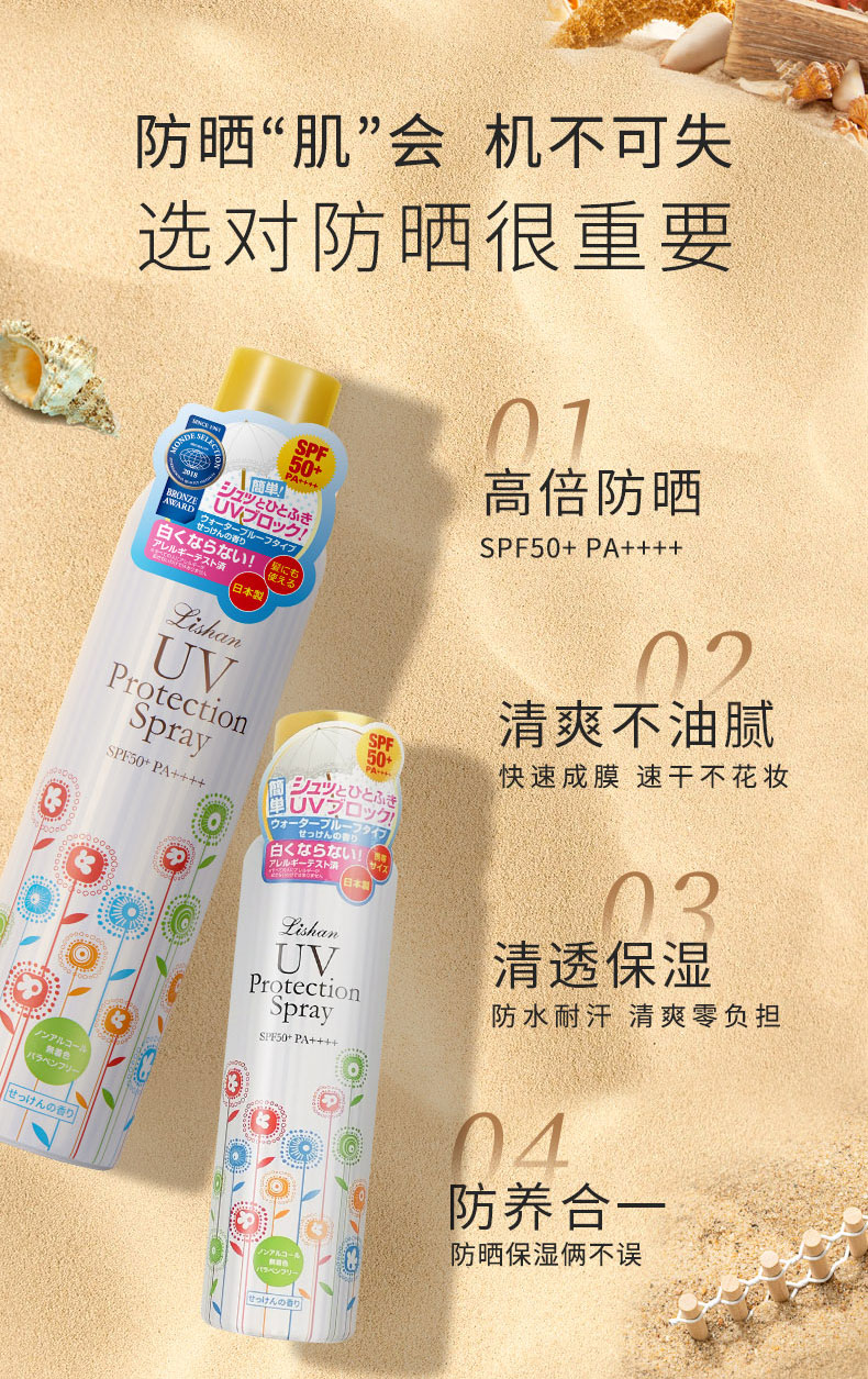 lishan防晒喷雾,高倍防晒、轻透清爽、温和不刺激