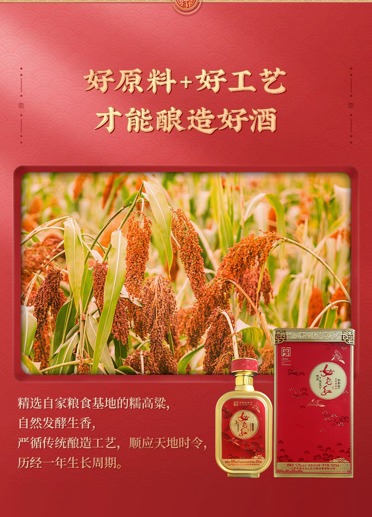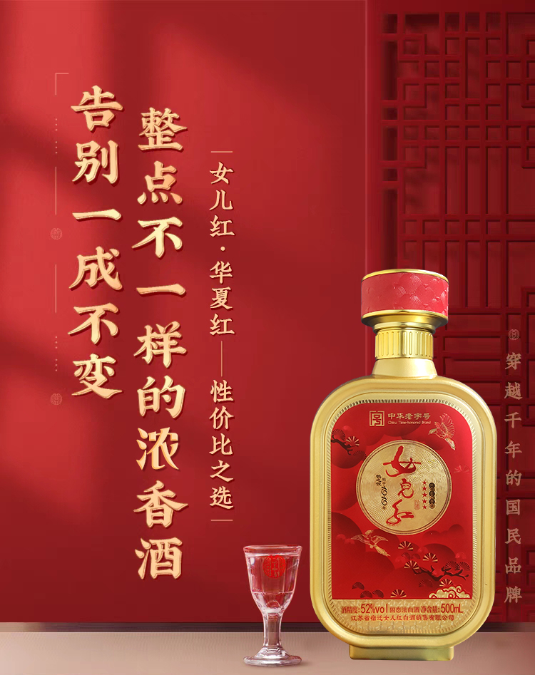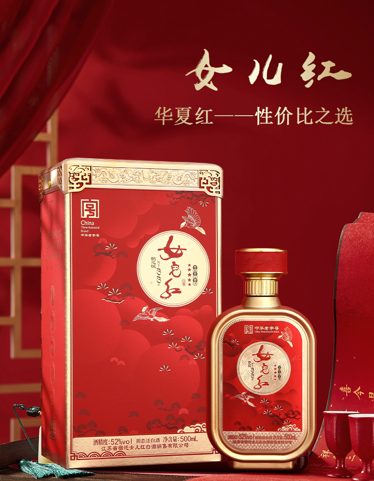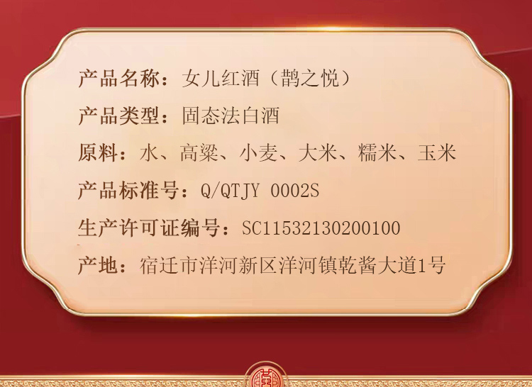心选丨女儿红 鹊之悦固态法白酒52度 500ml*4瓶