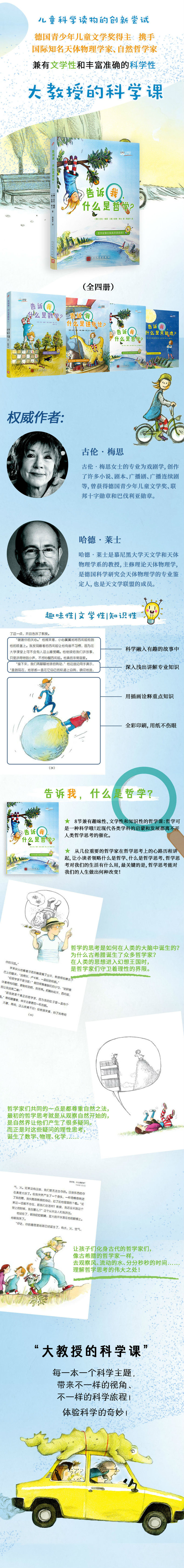 本书以一位教授和五个孩子的对话展开的科普小说,用科学研究的方式,解答了哲学是什么。小说中的大教授其实就是本书作者之一的哈德•莱士,他为5个小孩上了8节兼有趣味性、文学性和知识性的哲学课。著作者由专业作家和权威天科学家共同担当,是科学小说创作的一种全新尝试,所涉及的哲学知识从两千多年前希腊人开启的哲学思考开始,到什么是哲学、哲学到底是为了解决什么问题而存在、哲学与自然科学有什么关系等,知识点的讲述随着孩子们的这次哲学野营慢慢展开。