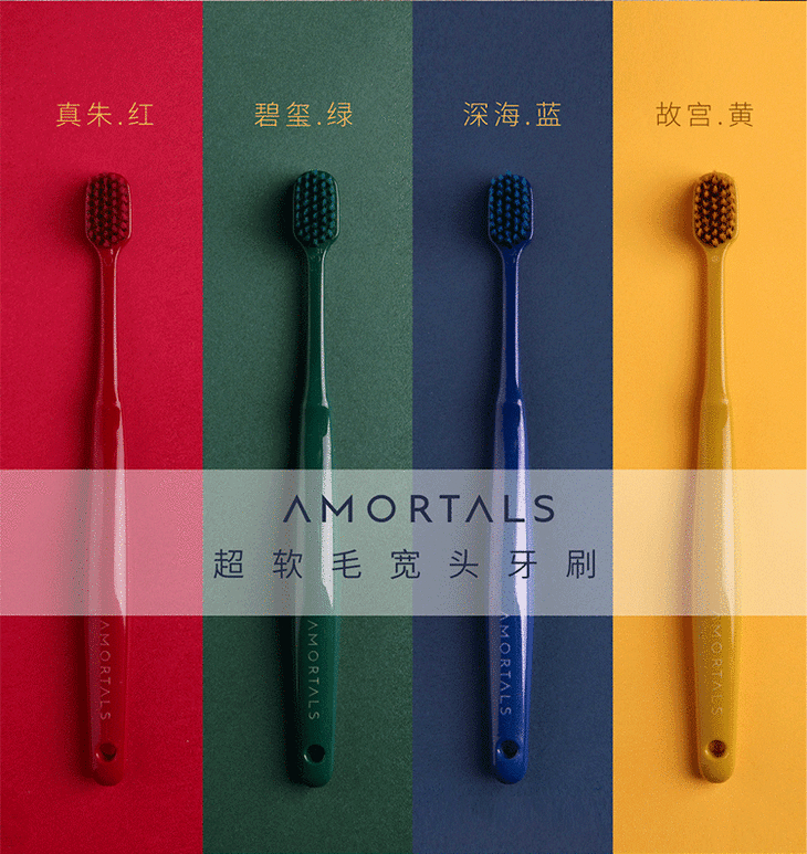【一般贸易】韩国AMORTALS尔木萄牙刷超软毛宽头成人家用两只装情侣装竹炭纤维 深海·蓝 + 故宫·黄+碧玺.绿+真朱.红 4只装