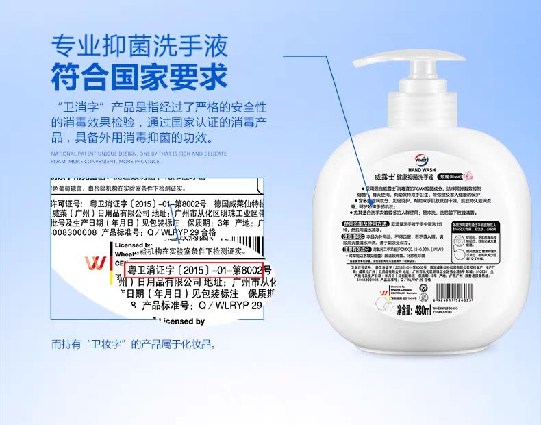 华西20251119-威露士健康抑菌洗手液倍护滋润480ml(玫瑰)/一瓶