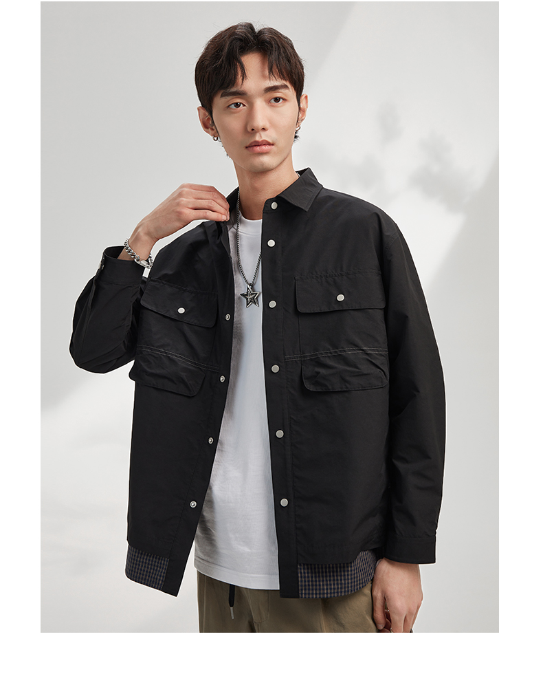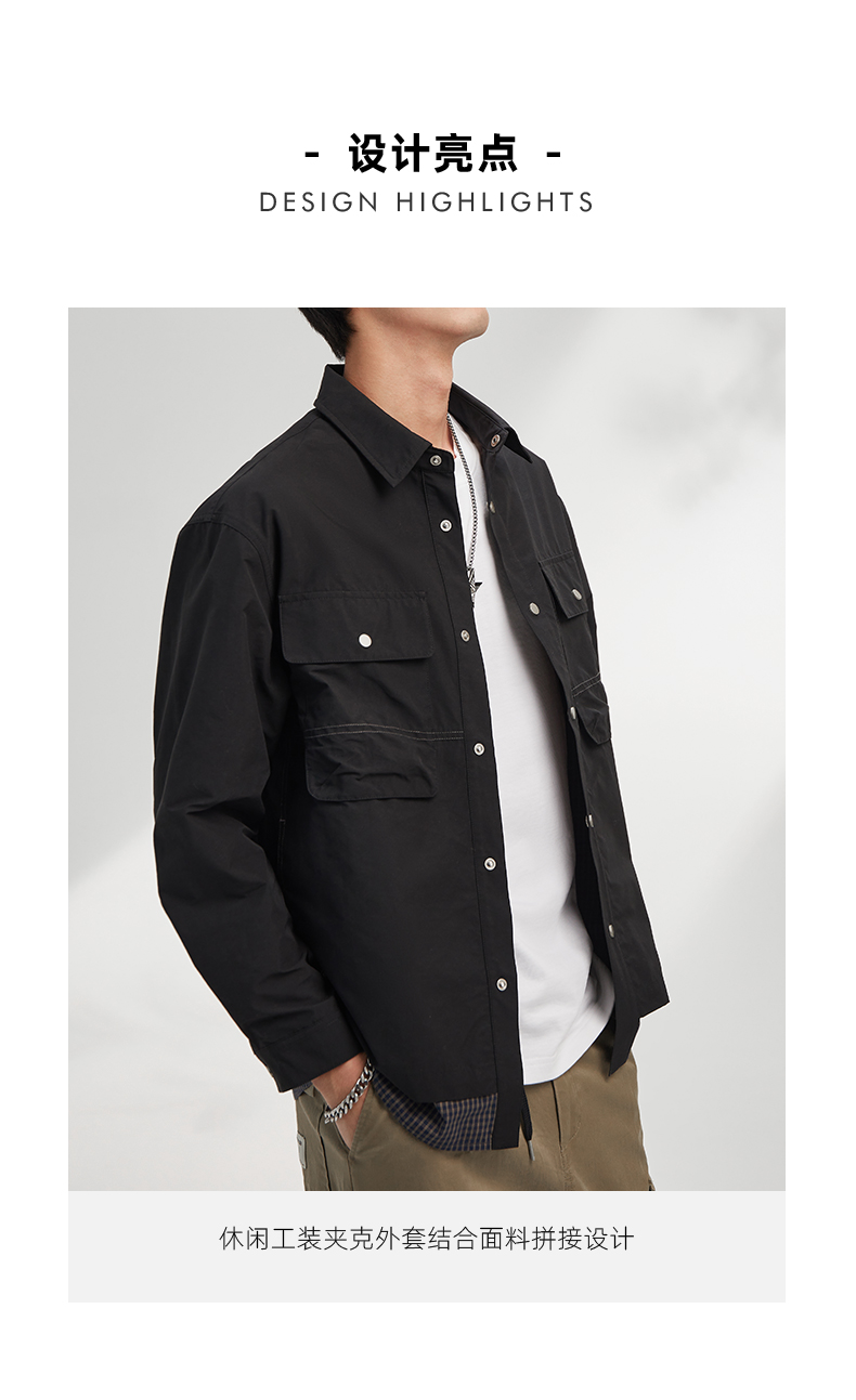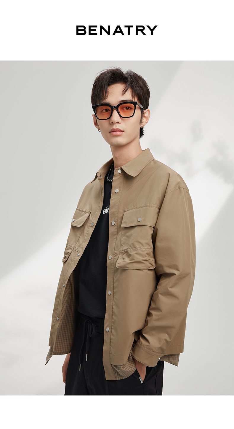 贝纳川时尚通勤翻领贴袋夹克外套ECK100006402