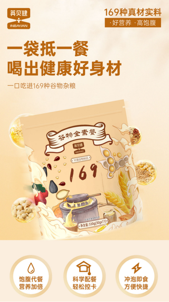 【英贝健169谷物全素餐】 全球严选169种好食材🌍 “一站式营养补充”💫替代传统碳水化合物 改善饮食结构,造成摄入量<消耗量的缺口‼ 吃这个169代餐真能!!不挨饿、不节食 还不容易反弹!