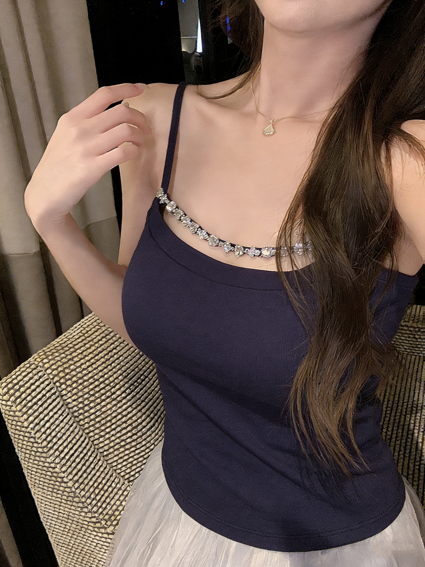 张心子【温柔可露丽】立体花温柔挂脖打底衫上衣 U2512017