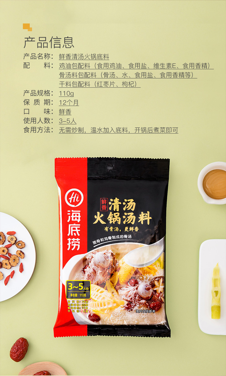 海底捞火锅鲜香清汤火锅底料骨汤调味料火锅料110g