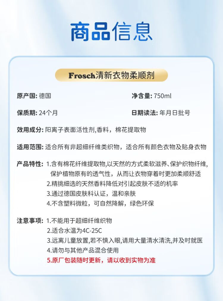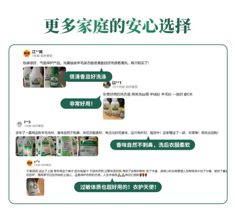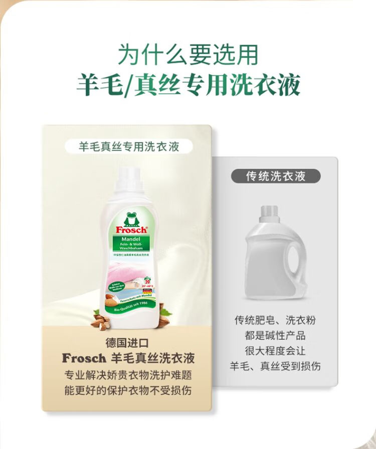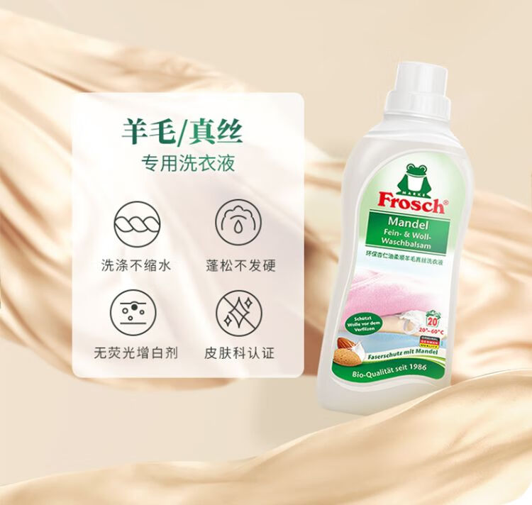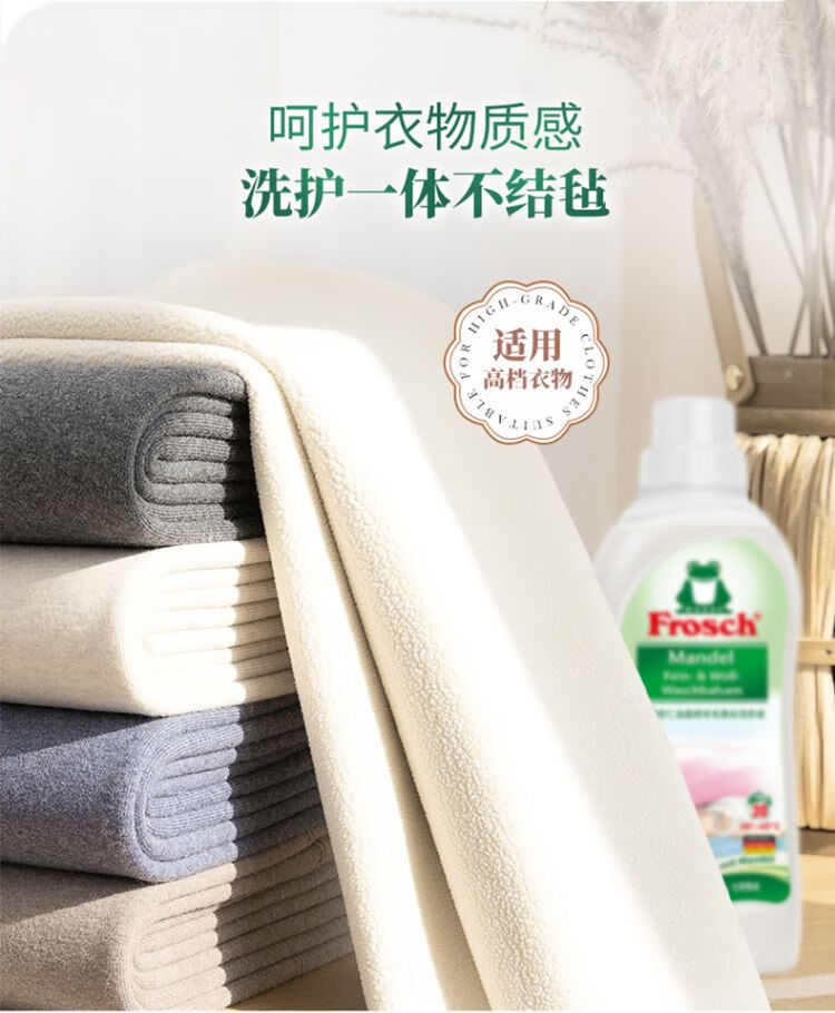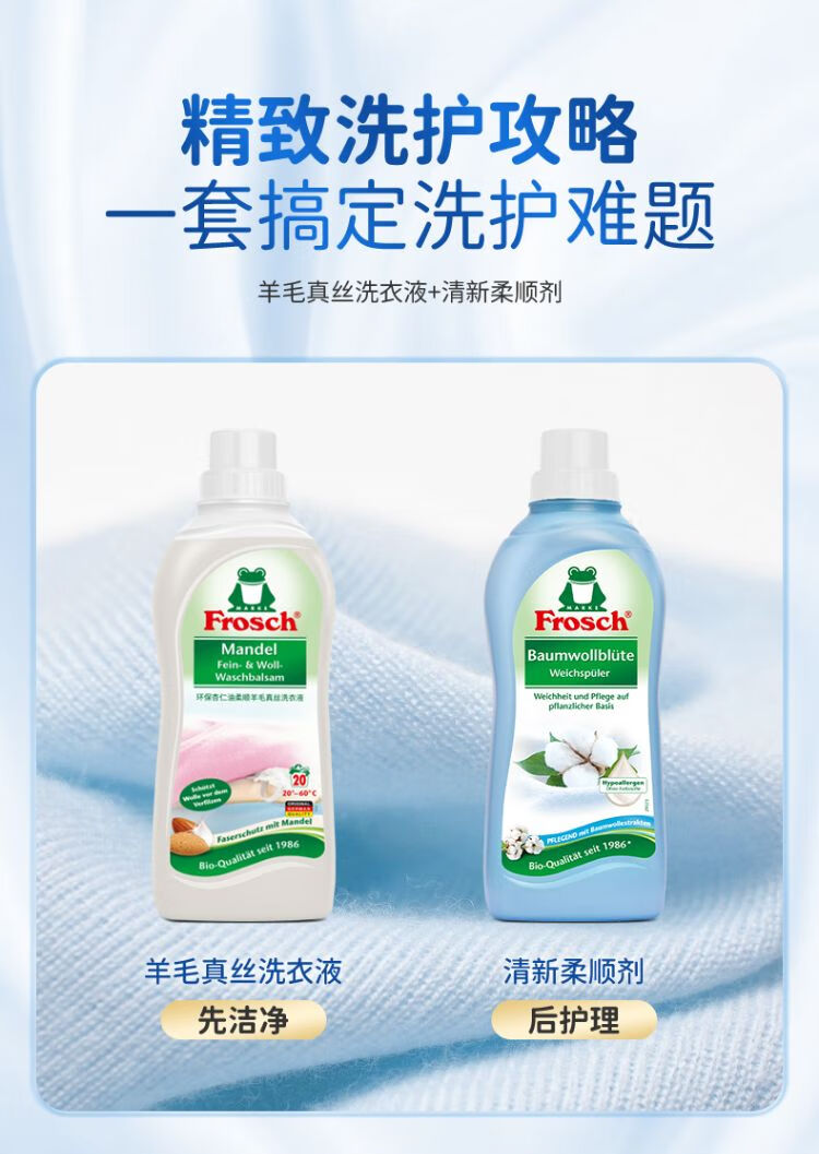 Frosch福纳丝清新衣物柔顺剂750ml+Frosch羊毛真丝专用洗衣液750ml/组