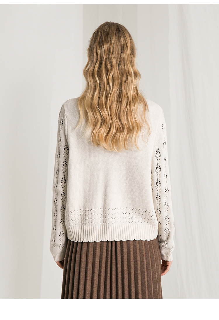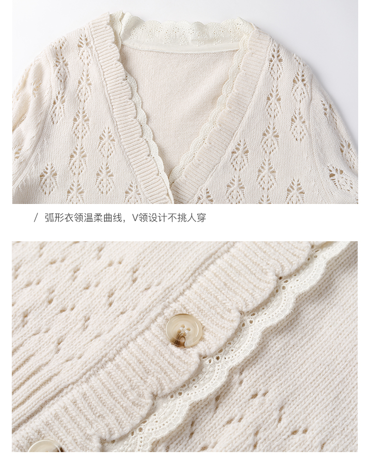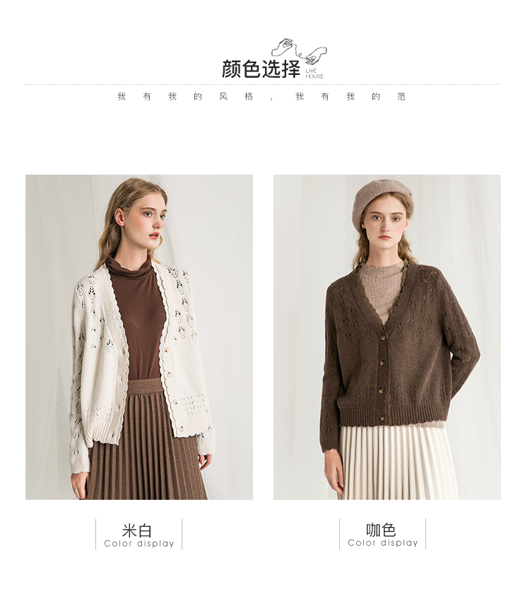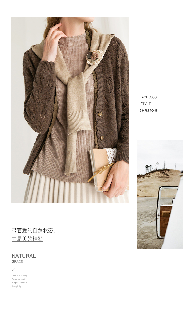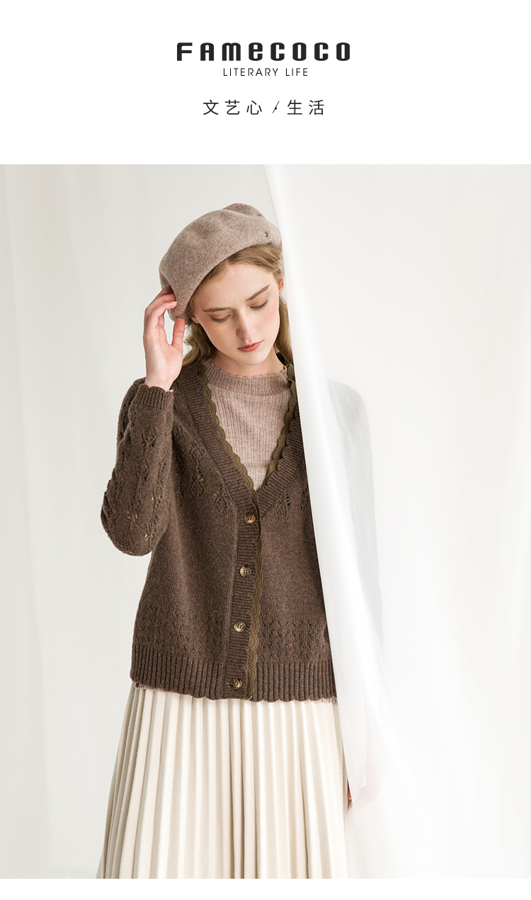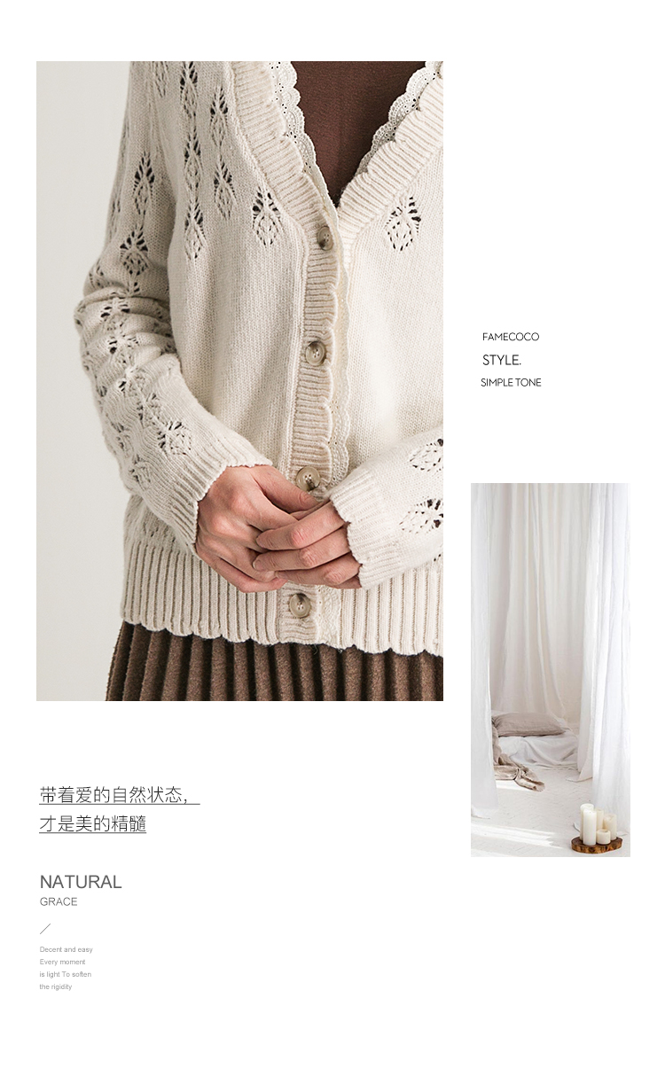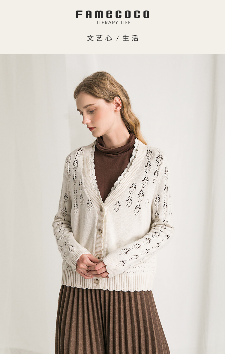 famecoco范可儿短毛衣外套开衫女秋冬镂空针织上衣F218DE001