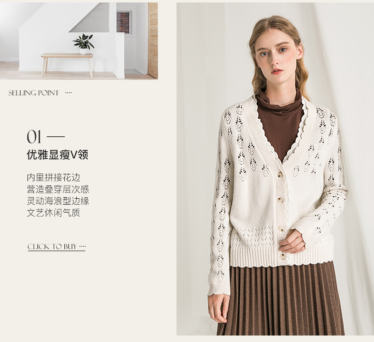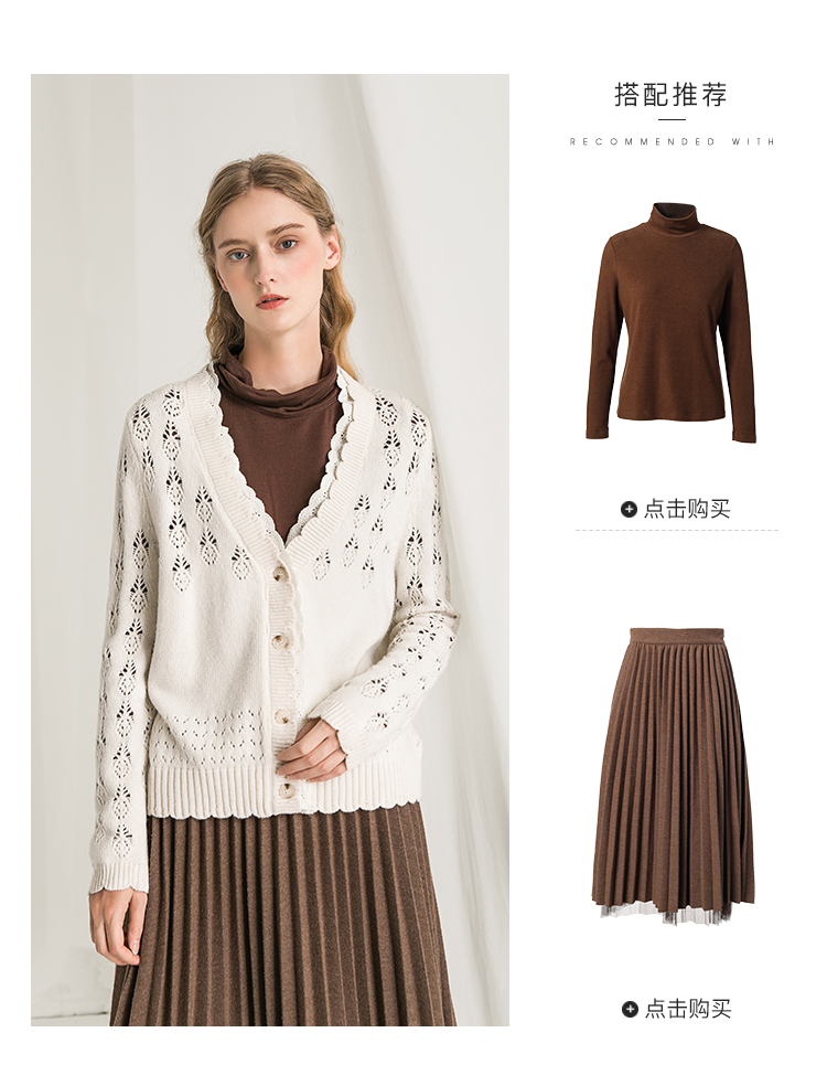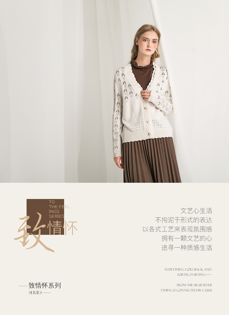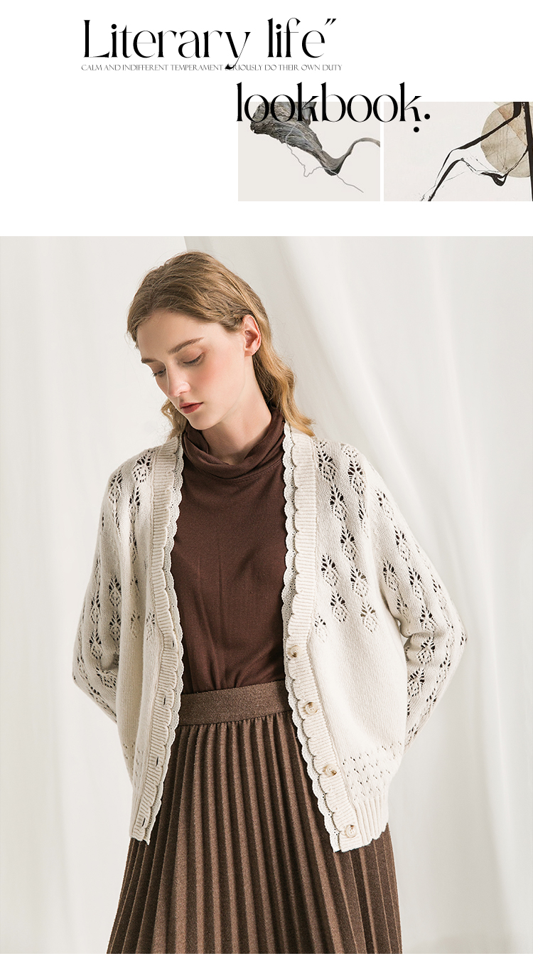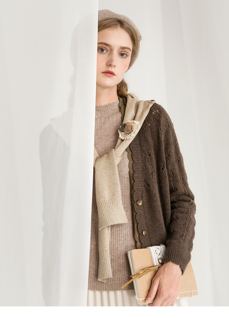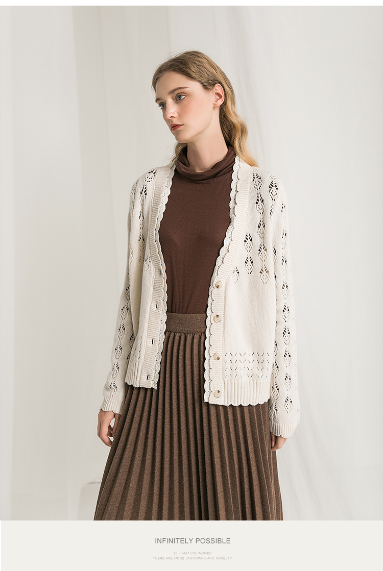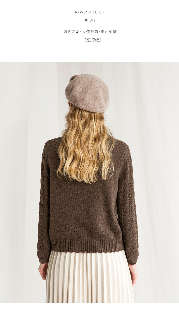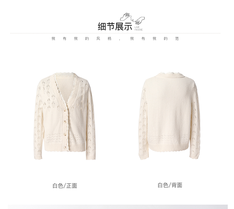 famecoco范可儿短毛衣外套开衫女秋冬镂空针织上衣F218DE001