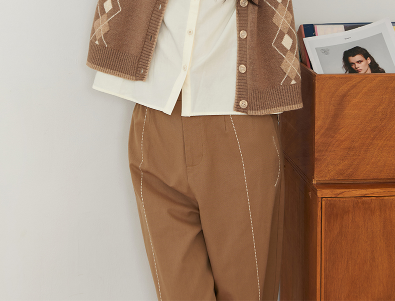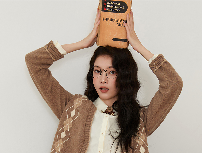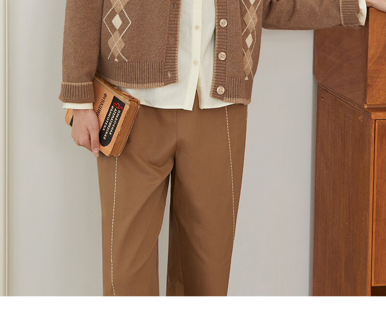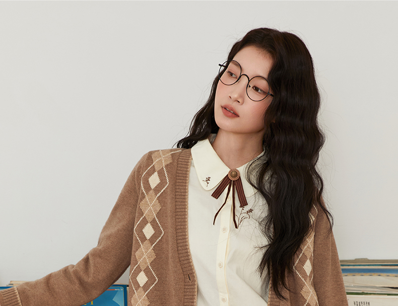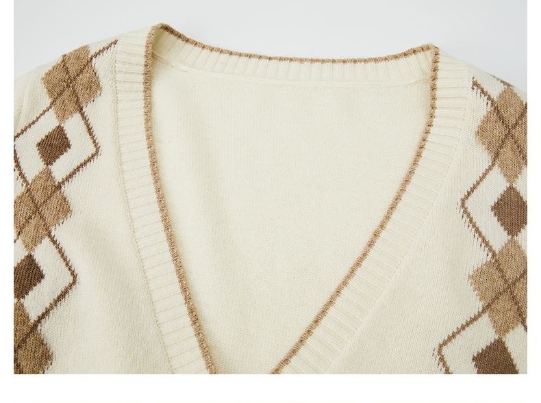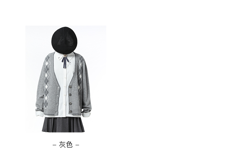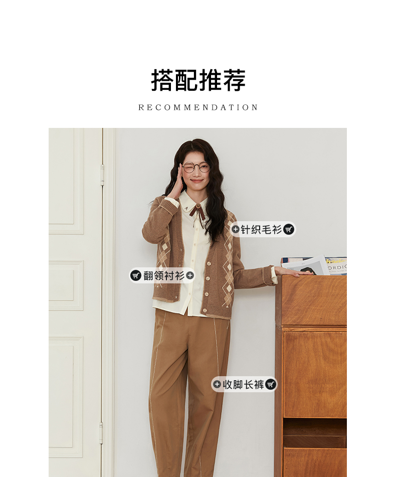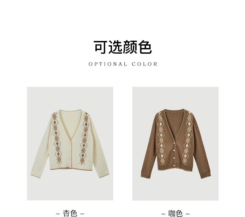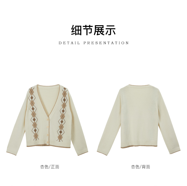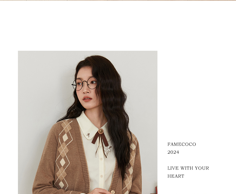 Famecoco范可儿开针织开衫复古羊毛V字领刺绣外穿FAB6DE020