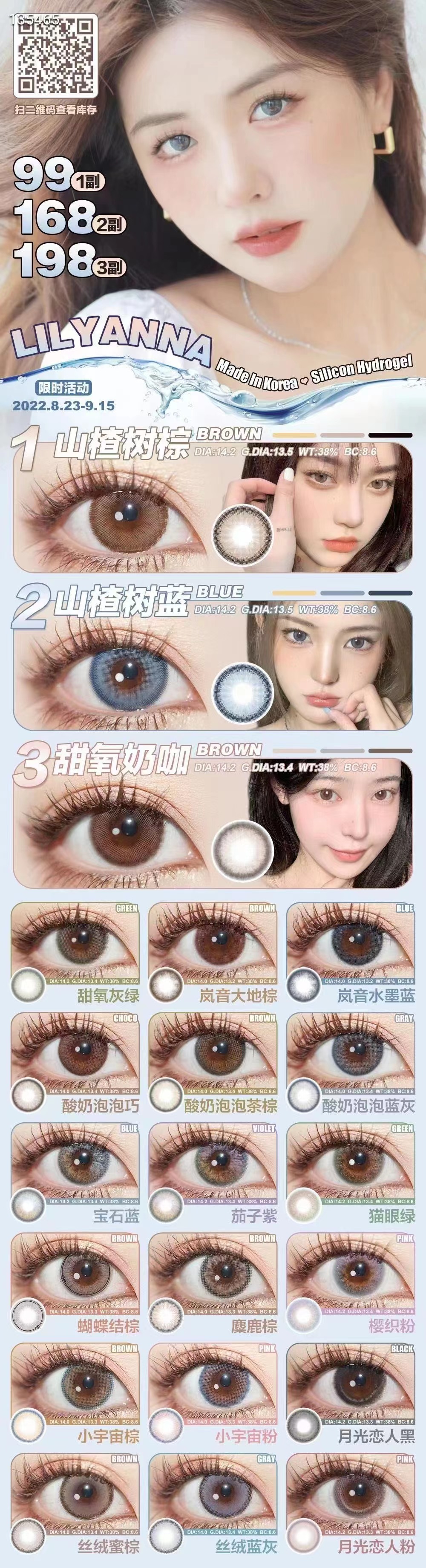 活动合集链接(请点击蓝色字体):半年抛lilyanna 活动合集 0-800度 无525.575度 宝宝打开链接下拉到详情页看到色板 色板上选好款式然后选择好规格(要几幅)就可以哦! (youzan.com)
