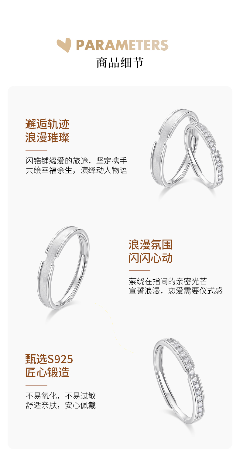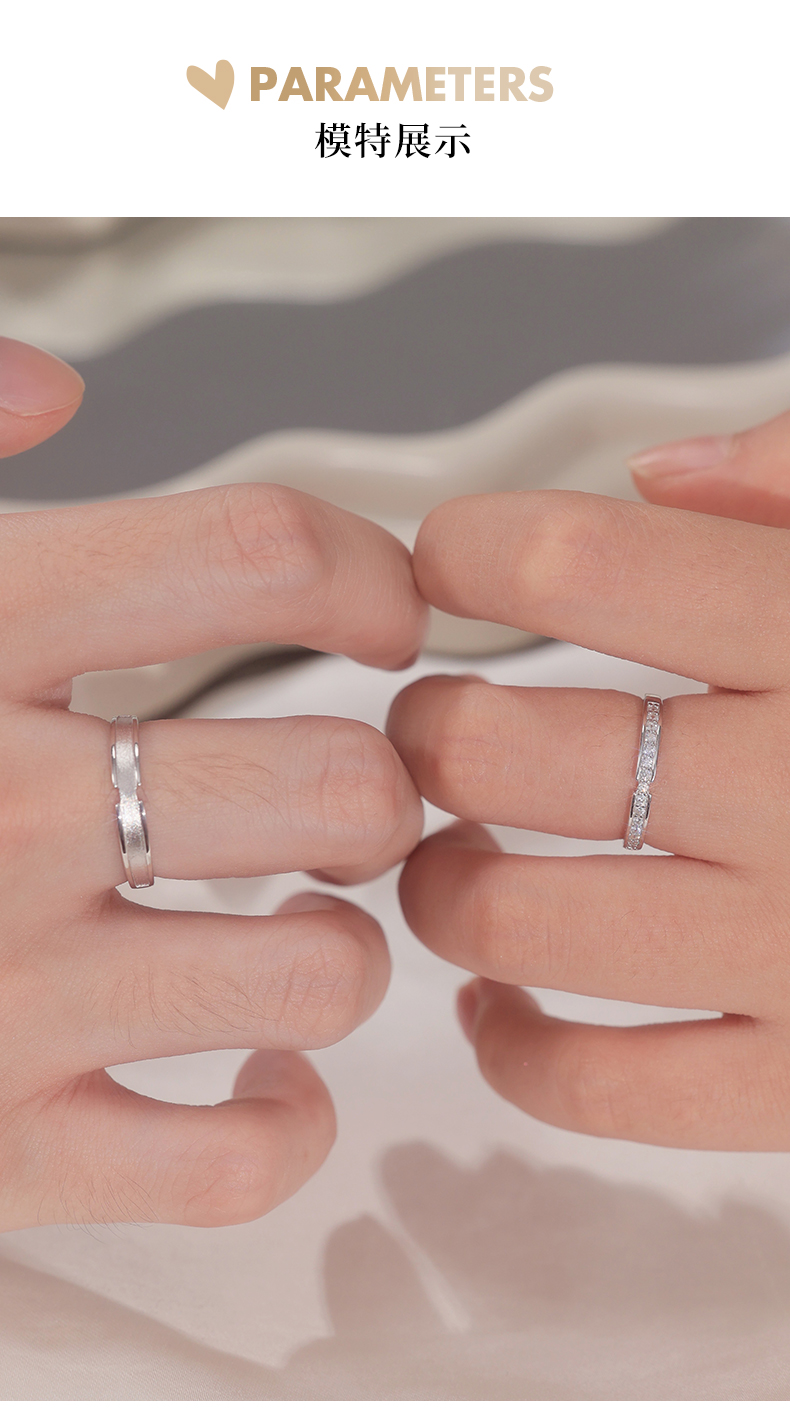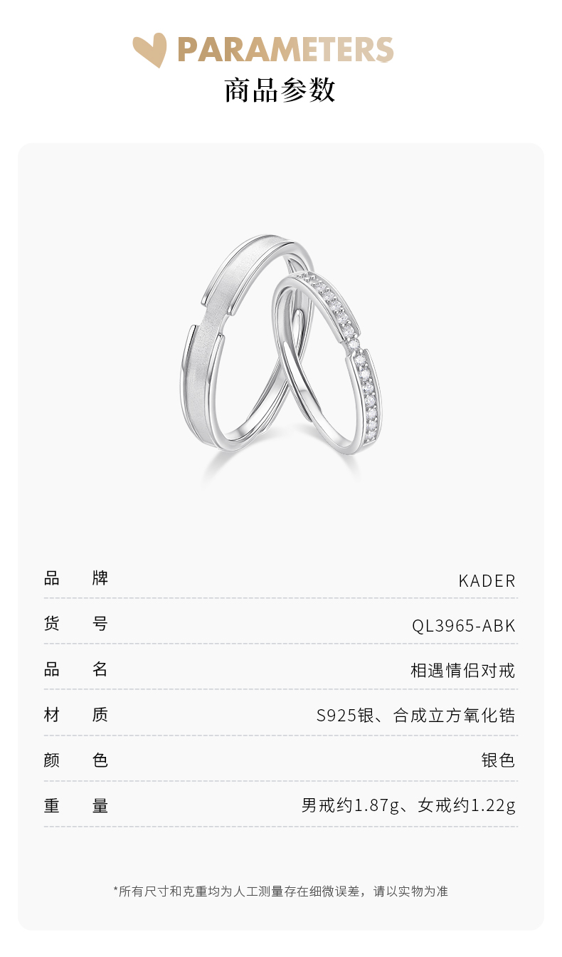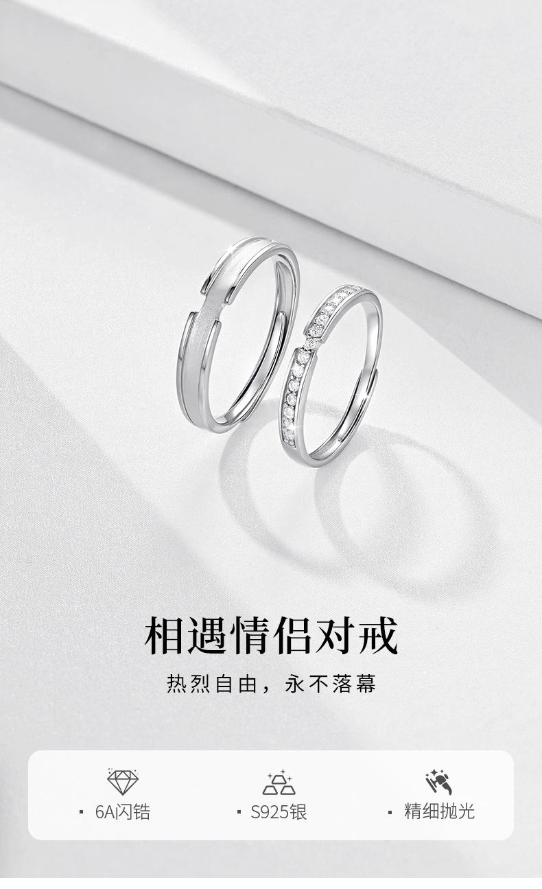 卡蒂罗KADER 相遇情侣对戒 925银满铺璀璨圆锆设计怦然心动邂逅甜美爱恋简约大气可调节素圈一对 甜美浪漫恋爱频率